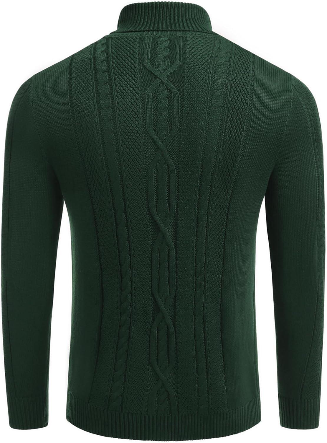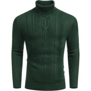 COOFANDY Men’s Slim Fit Turtleneck Sweaters Casual Cable Knitted Soft Pullover Sweaters(Dark Green)