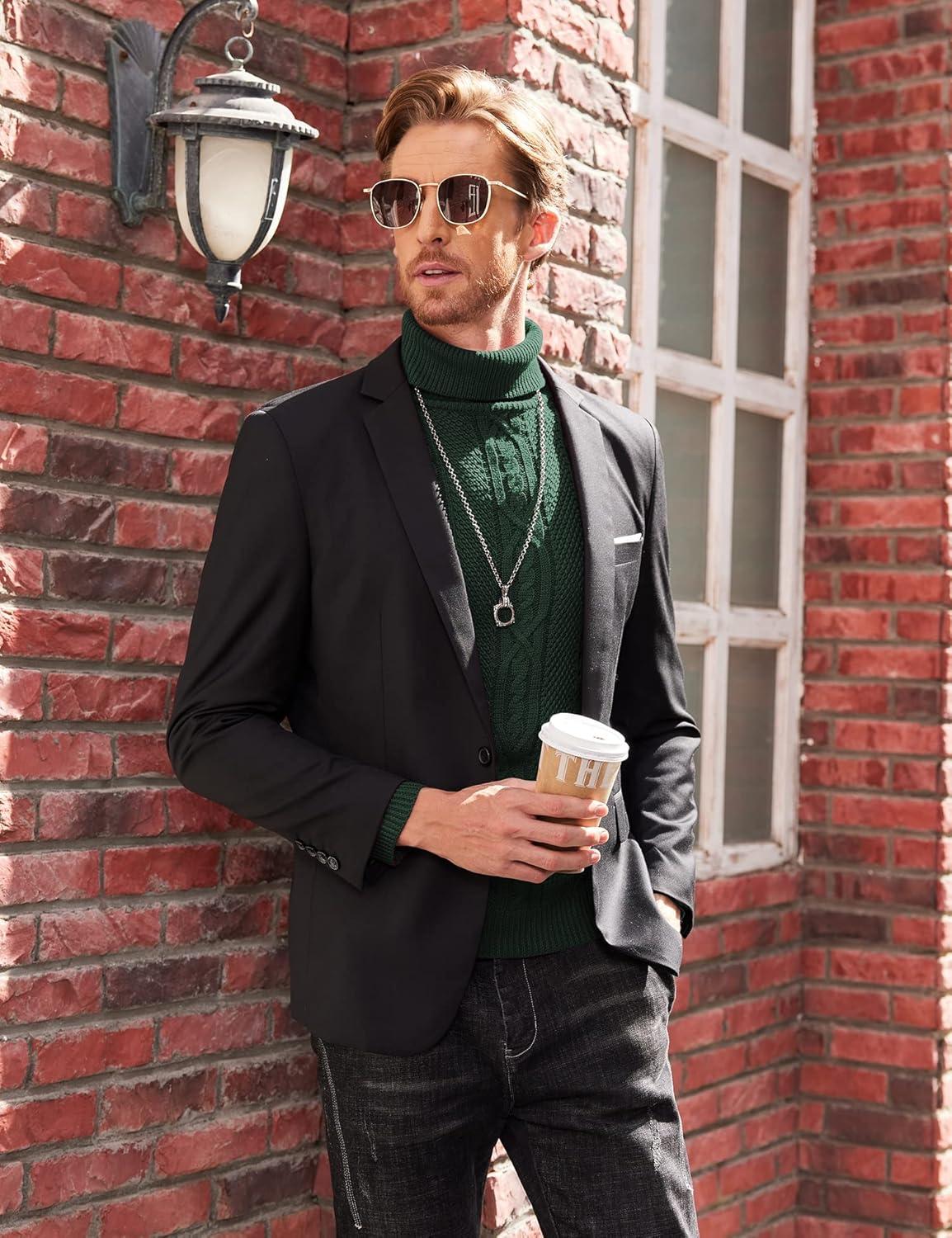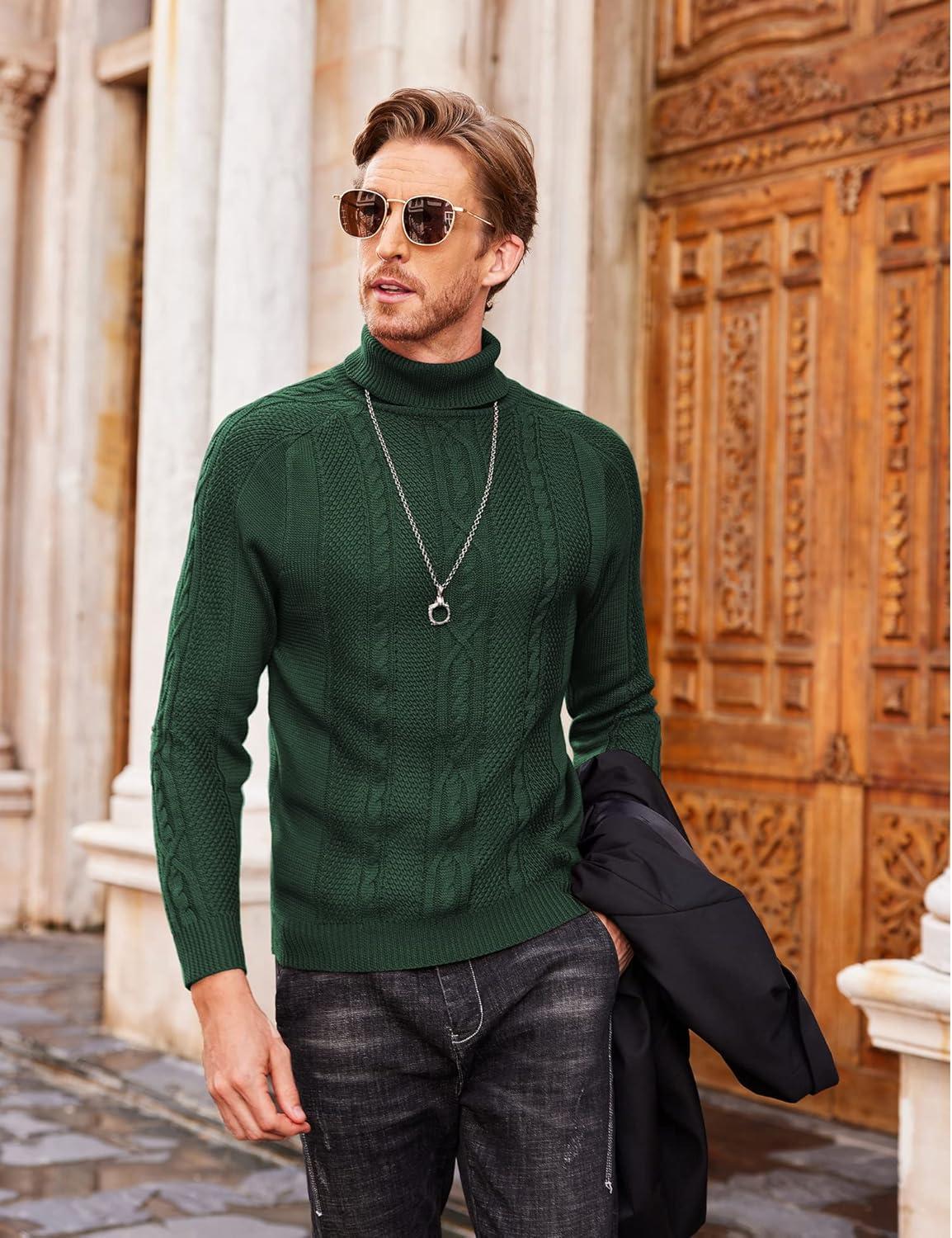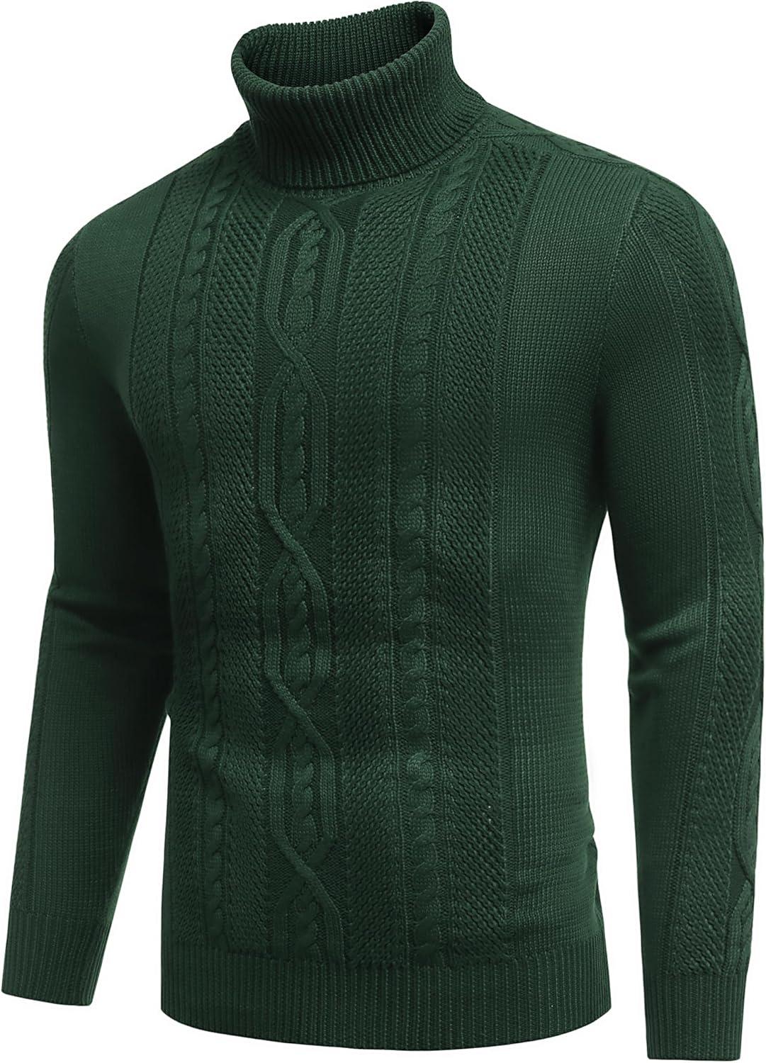 COOFANDY Men’s Slim Fit Turtleneck Sweaters Casual Cable Knitted Soft Pullover Sweaters(Green)
