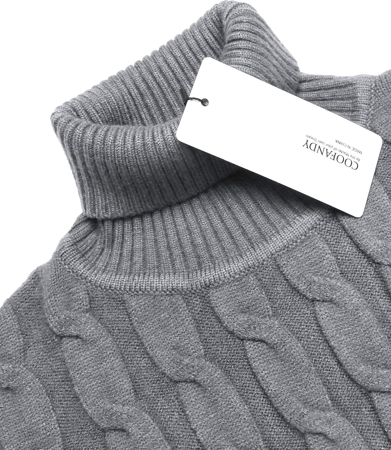 COOFANDY Men’s Slim Fit Turtleneck Sweaters Casual Cable Knitted Soft Pullover Sweaters(Gray)