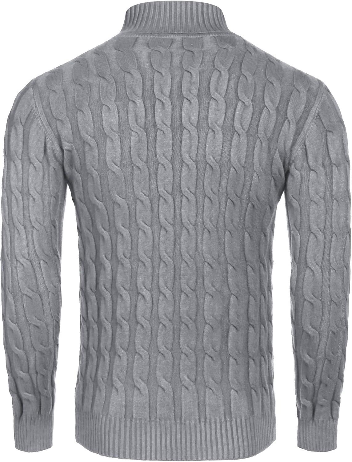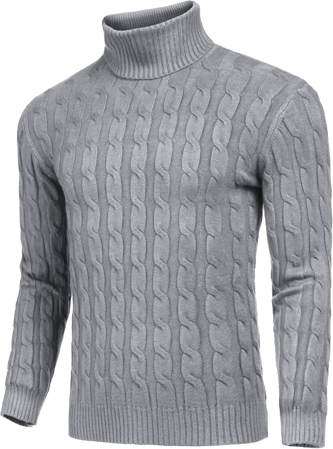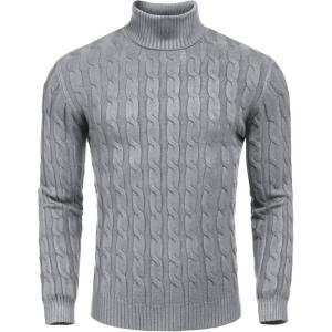 COOFANDY Men’s Slim Fit Turtleneck Sweaters Casual Cable Knitted Soft Pullover Sweaters(Grey)