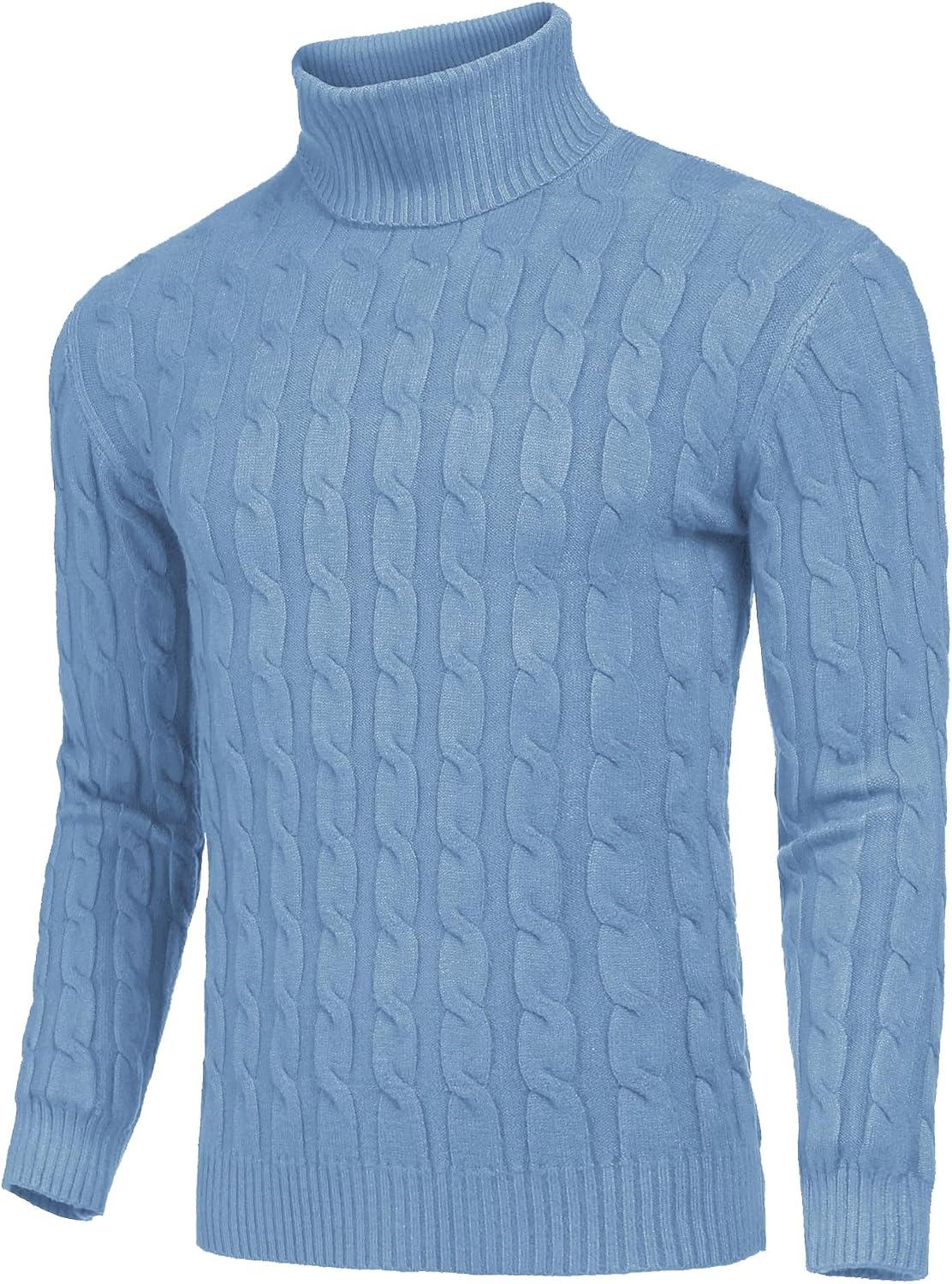 COOFANDY Men’s Slim Fit Turtleneck Sweaters Casual Cable Knitted Soft Pullover Sweaters(Light Blue)
