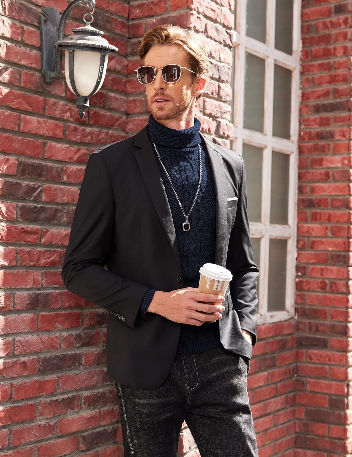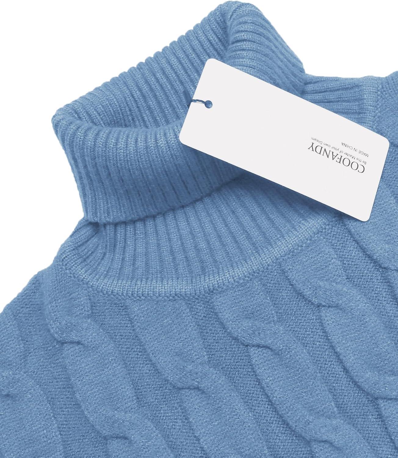 COOFANDY Men’s Slim Fit Turtleneck Sweaters Casual Cable Knitted Soft Pullover Sweaters(Colorful Blue)