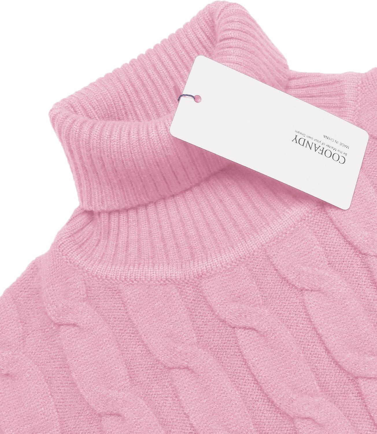 COOFANDY Men’s Slim Fit Turtleneck Sweaters Casual Cable Knitted Soft Pullover Sweaters(Light Pink)