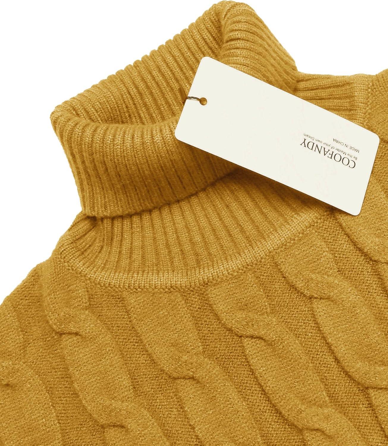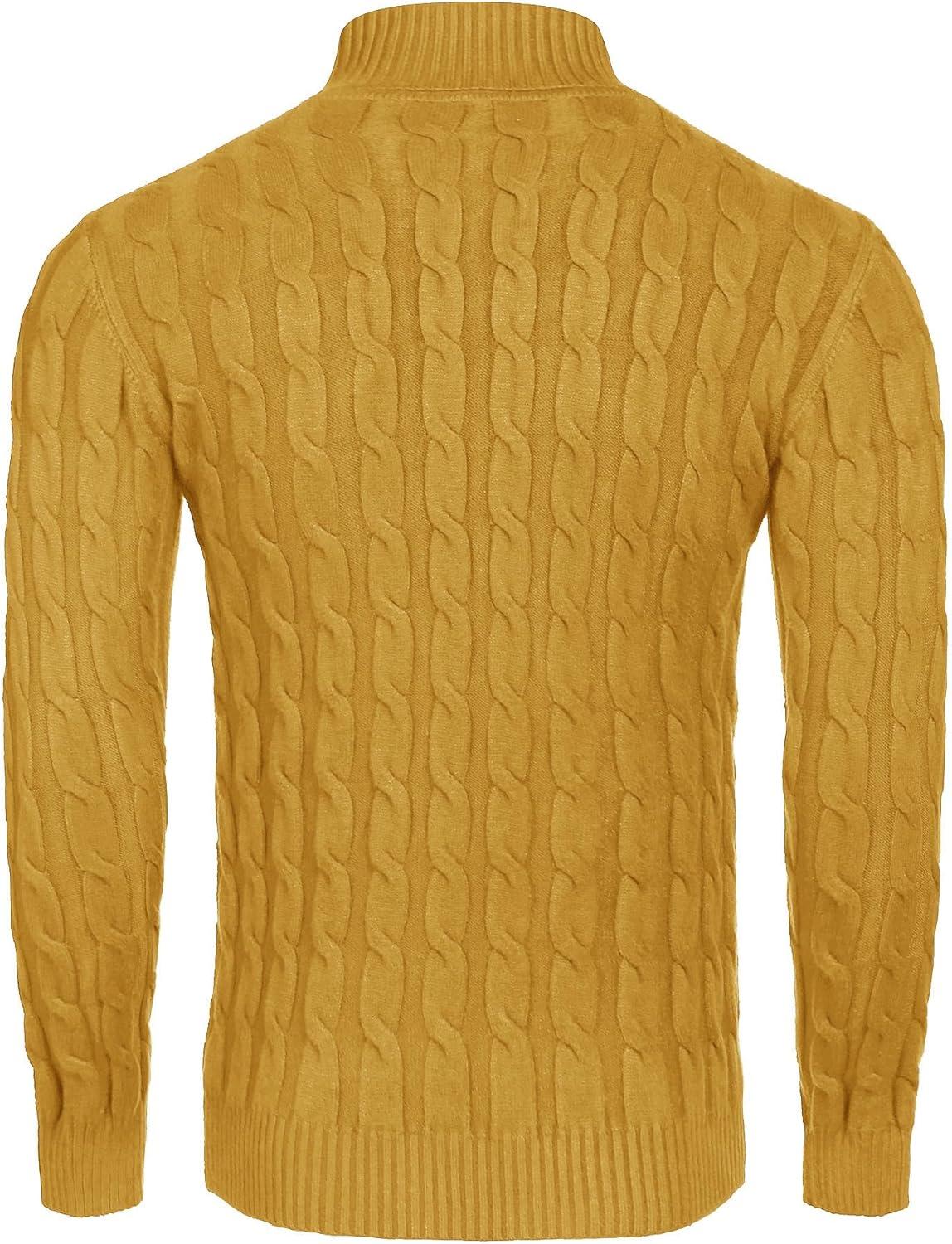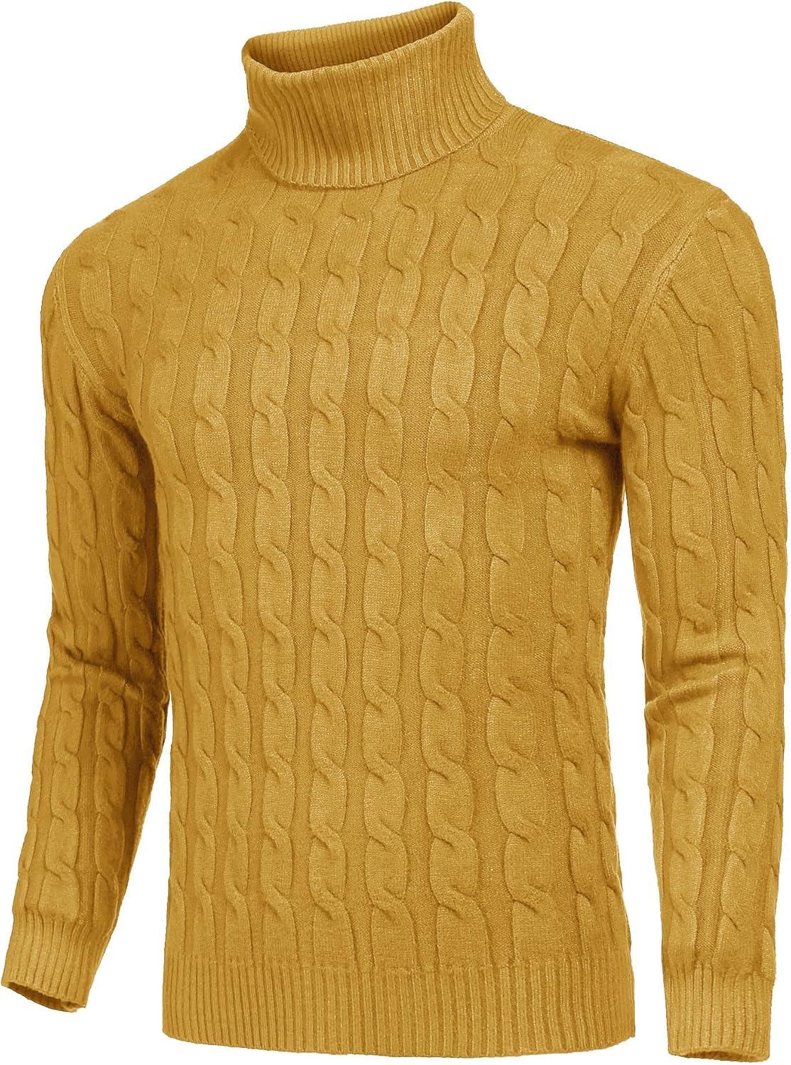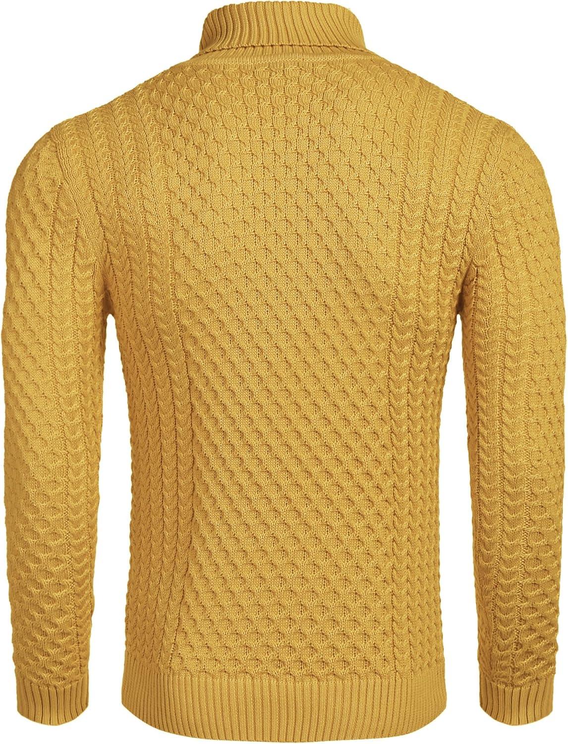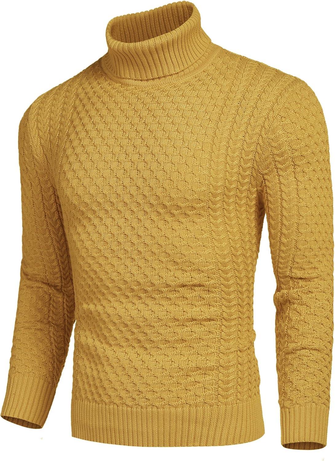 COOFANDY Men’s Slim Fit Turtleneck Sweaters Casual Cable Knitted Soft Pullover Sweaters(Yellow)
