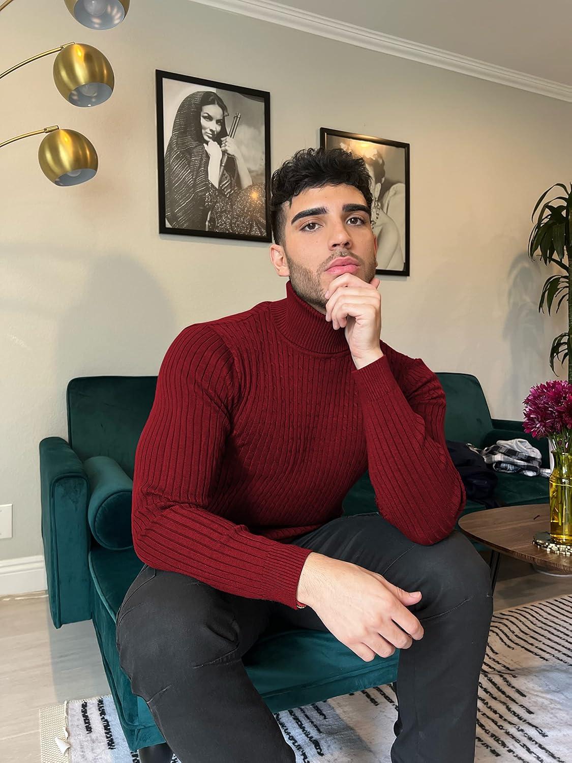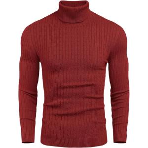 COOFANDY Men’s Slim Fit Turtleneck Sweaters Casual Cable Knitted Soft Pullover Sweaters(Red)
