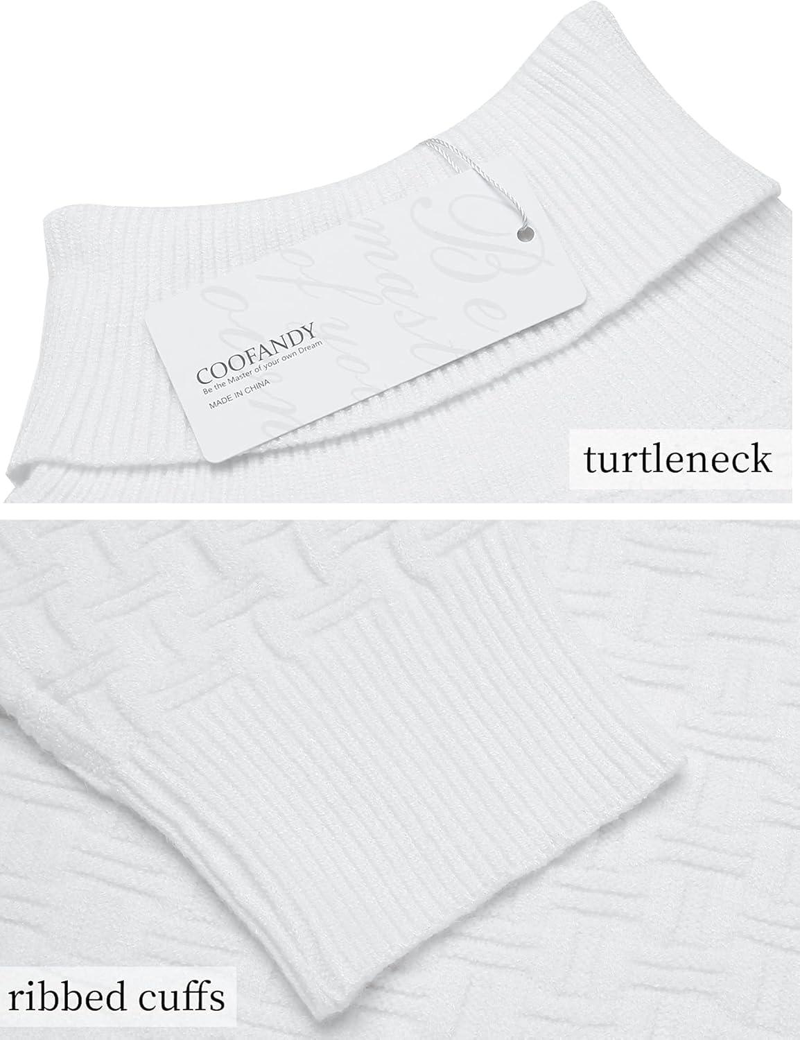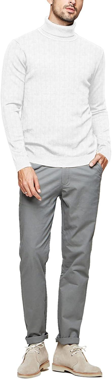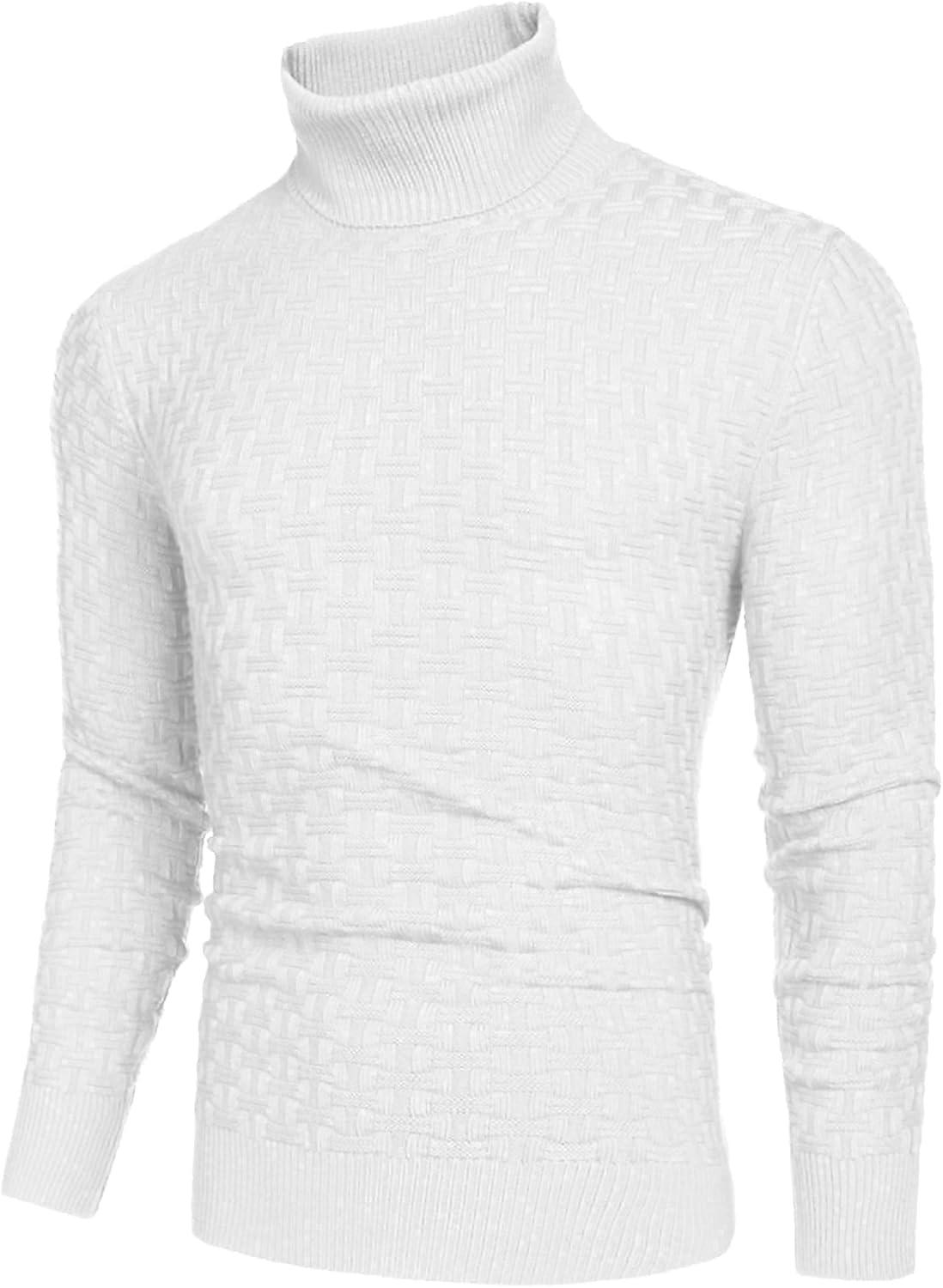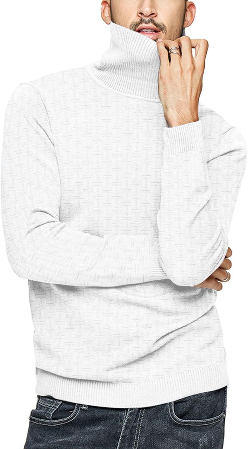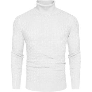 COOFANDY Men’s Slim Fit Turtleneck Sweaters Casual Cable Knitted Soft Pullover Sweaters(White)