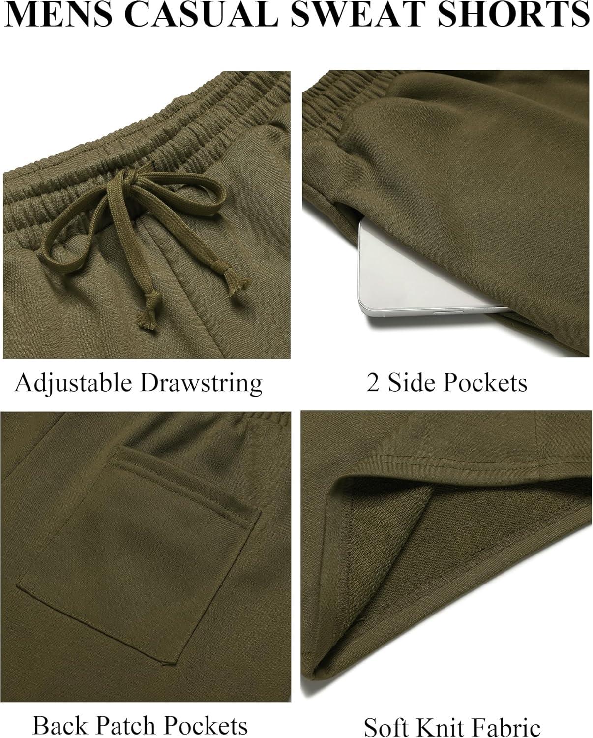 COOFANDY Men’s Sweat Shorts 7 Inch Athletic Workout Shorts 2 Pack Casual Lounge Joggers Short Pants with Pockets(2 Pack:black+army Green)