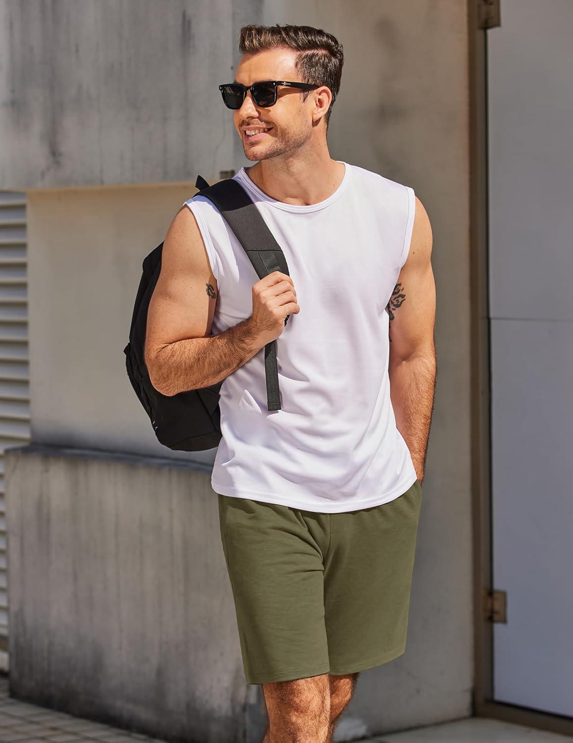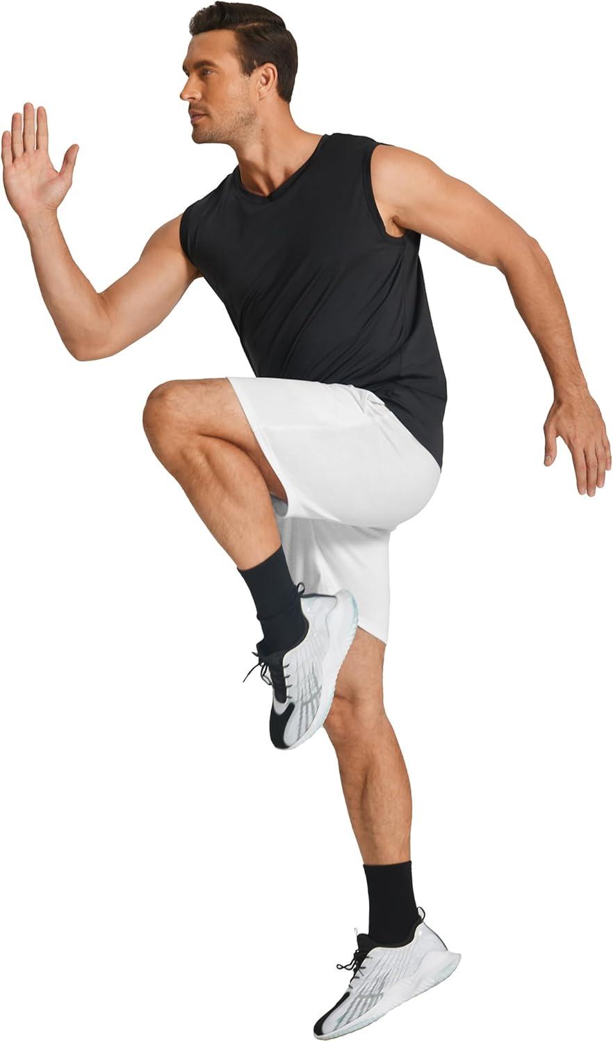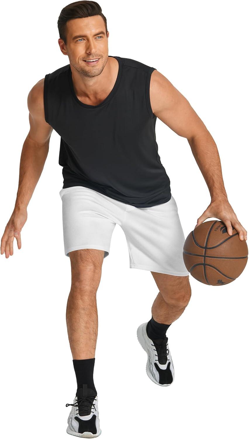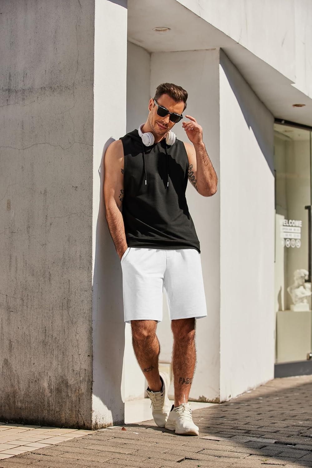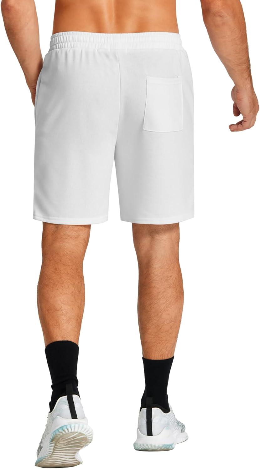 COOFANDY Men’s Sweat Shorts 7 Inch Athletic Workout Shorts 2 Pack Casual Lounge Joggers Short Pants with Pockets(White(1 Pack of 1))