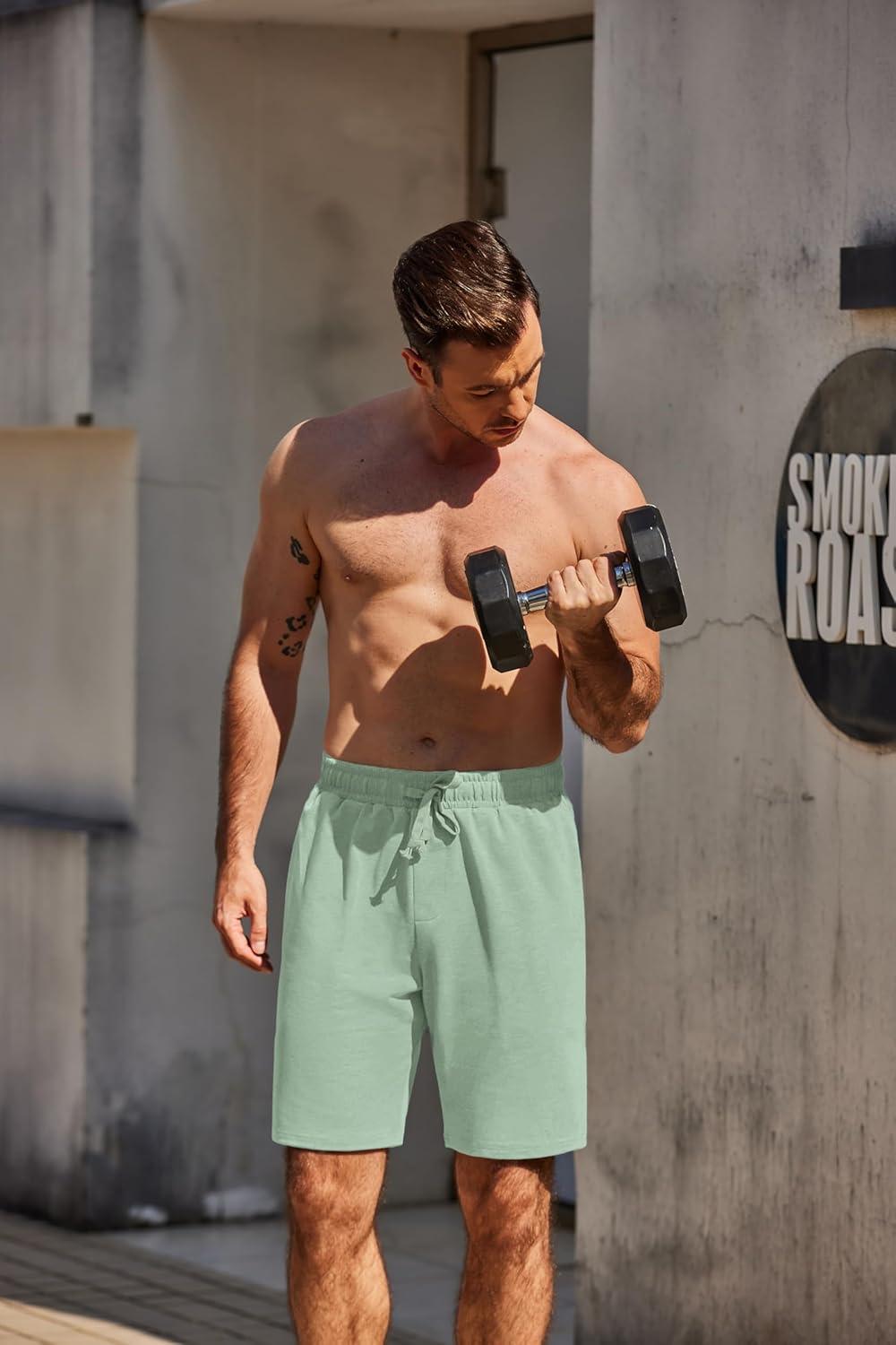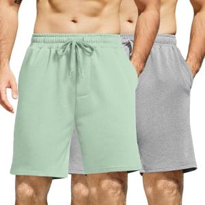 COOFANDY Men’s Sweat Shorts 7 Inch Athletic Workout Shorts 2 Pack Casual Lounge Joggers Short Pants with Pockets(2 Pack:minty Green+grey)