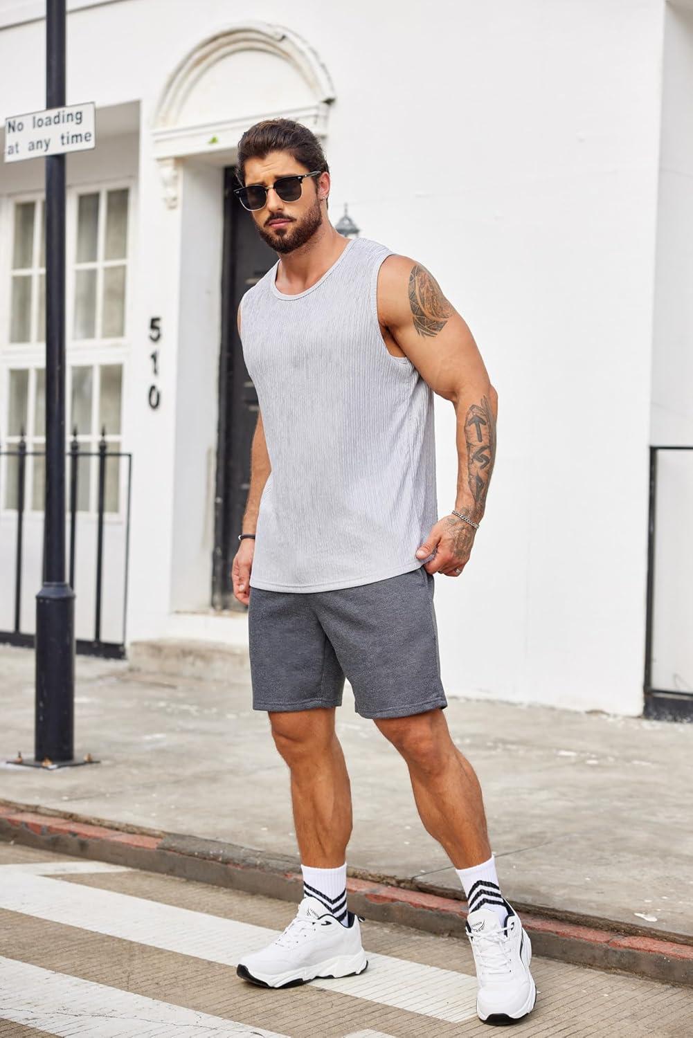 COOFANDY Men’s Sweat Shorts 7 Inch Athletic Workout Shorts 2 Pack Casual Lounge Joggers Short Pants with Pockets(Heather Grey(1 Pack of 1))