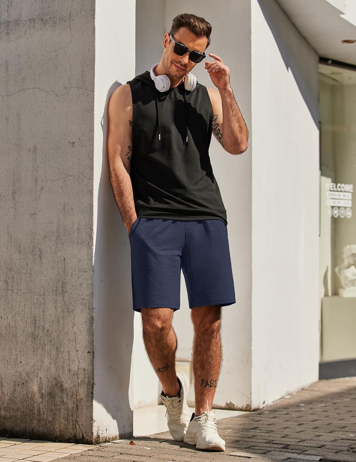 COOFANDY Men’s Sweat Shorts 7 Inch Athletic Workout Shorts 2 Pack Casual Lounge Joggers Short Pants with Pockets(2 Pack:navy Blue+dark Grey)