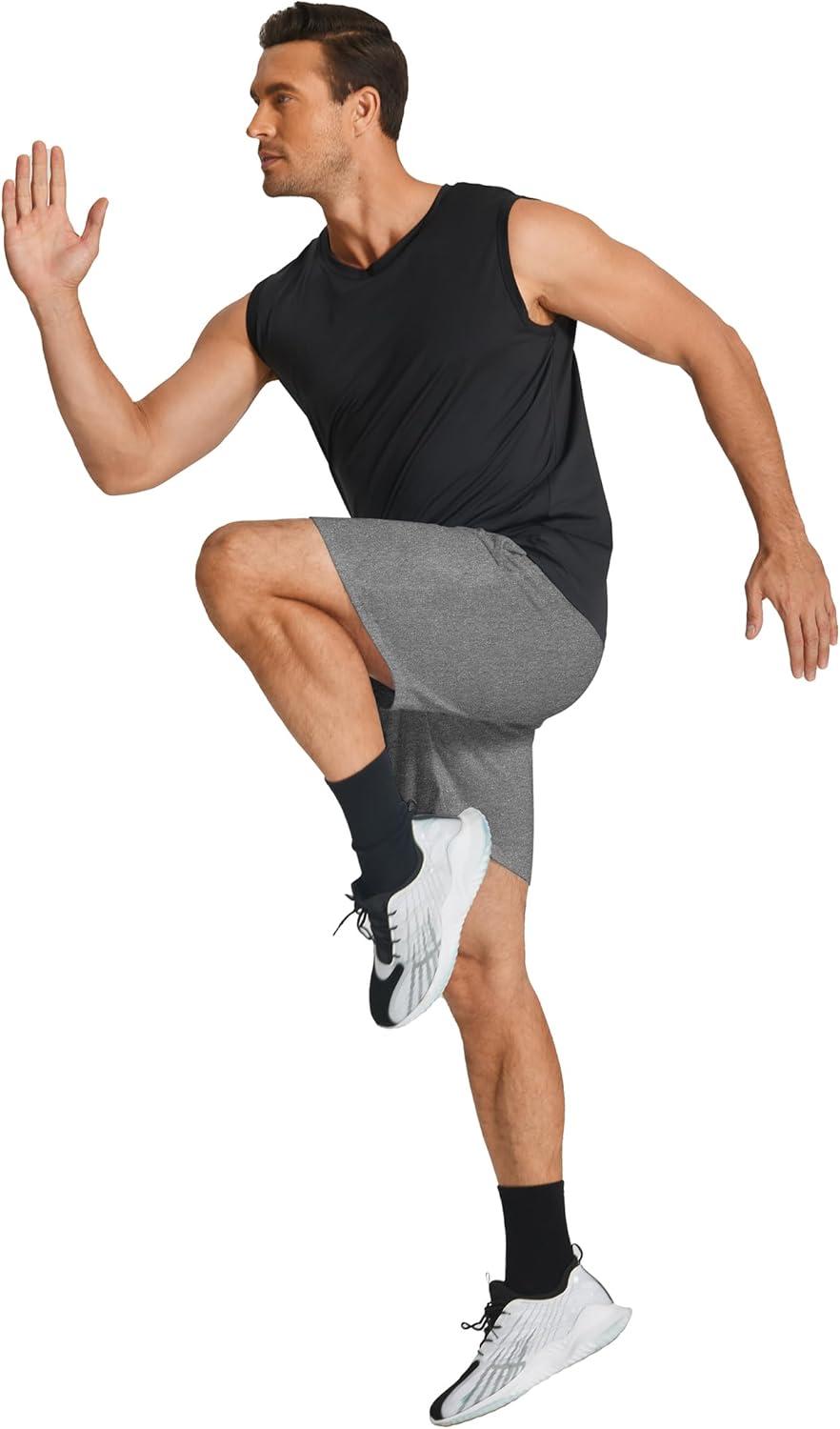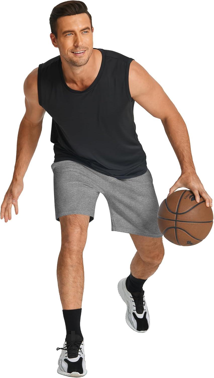 COOFANDY Men’s Sweat Shorts 7 Inch Athletic Workout Shorts 2 Pack Casual Lounge Joggers Short Pants with Pockets(2 Pack:heather Grey+black)
