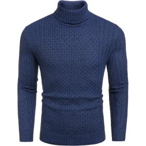 COOFANDY Men’s Slim Fit Turtleneck Sweaters Casual Cable Knitted Soft Pullover Sweaters(Sapphire)
