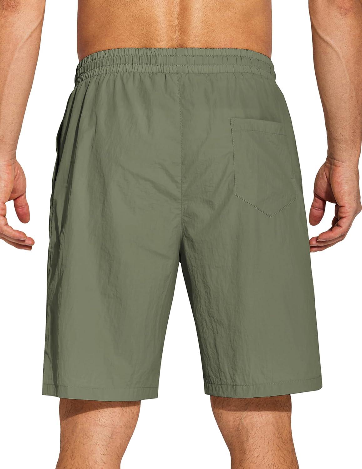 COOFANDY Men’s Summer Beach Shorts Lightweight Elastic Waist Drawstring Casual Shorts with Pocket(Deep Green)