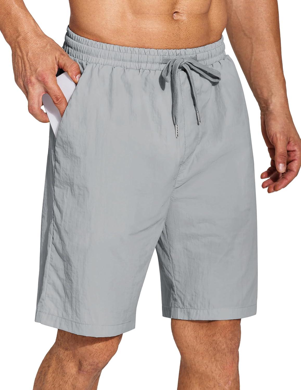 COOFANDY Men’s Summer Beach Shorts Lightweight Elastic Waist Drawstring Casual Shorts with Pocket(Light Grey)