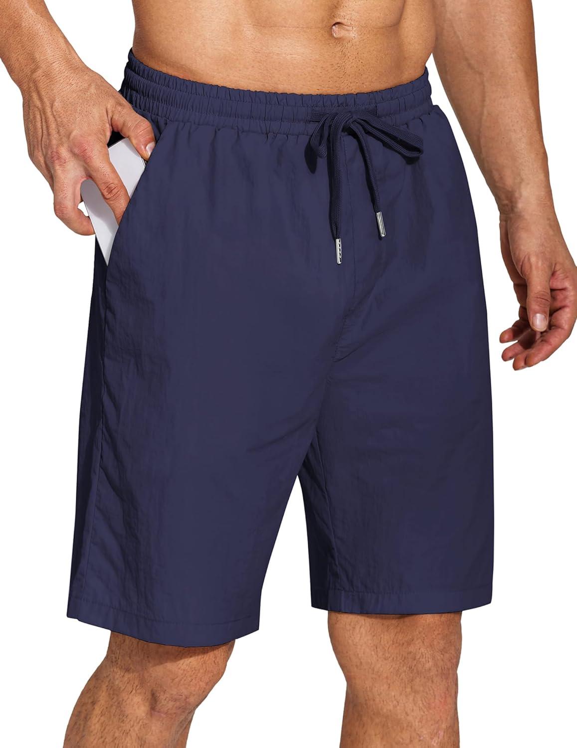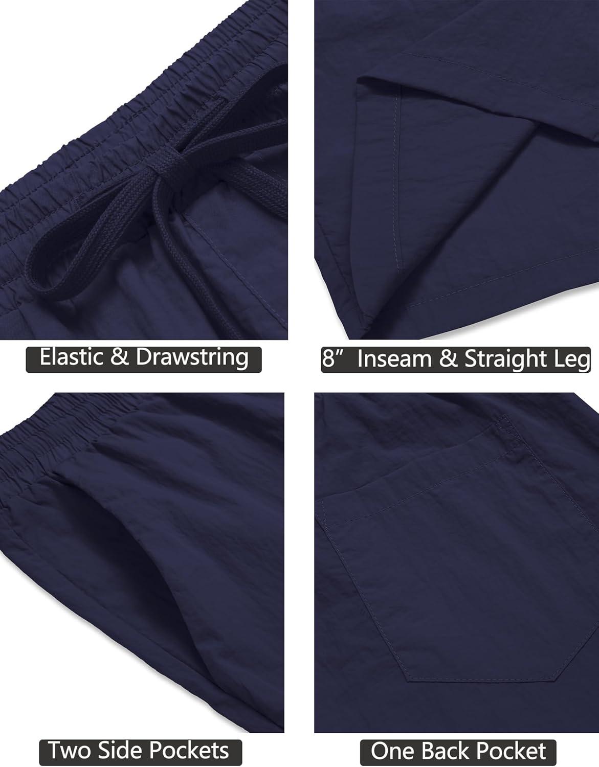 COOFANDY Men’s Summer Beach Shorts Lightweight Elastic Waist Drawstring Casual Shorts with Pocket(Navy Blue)