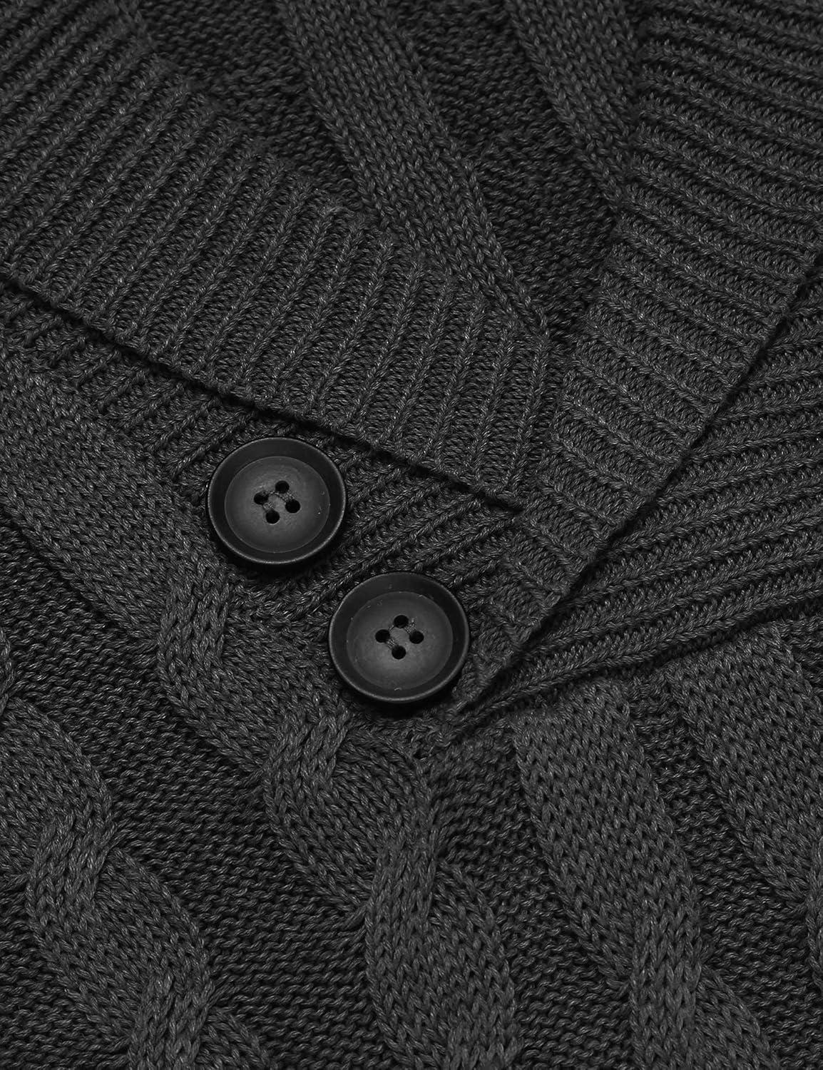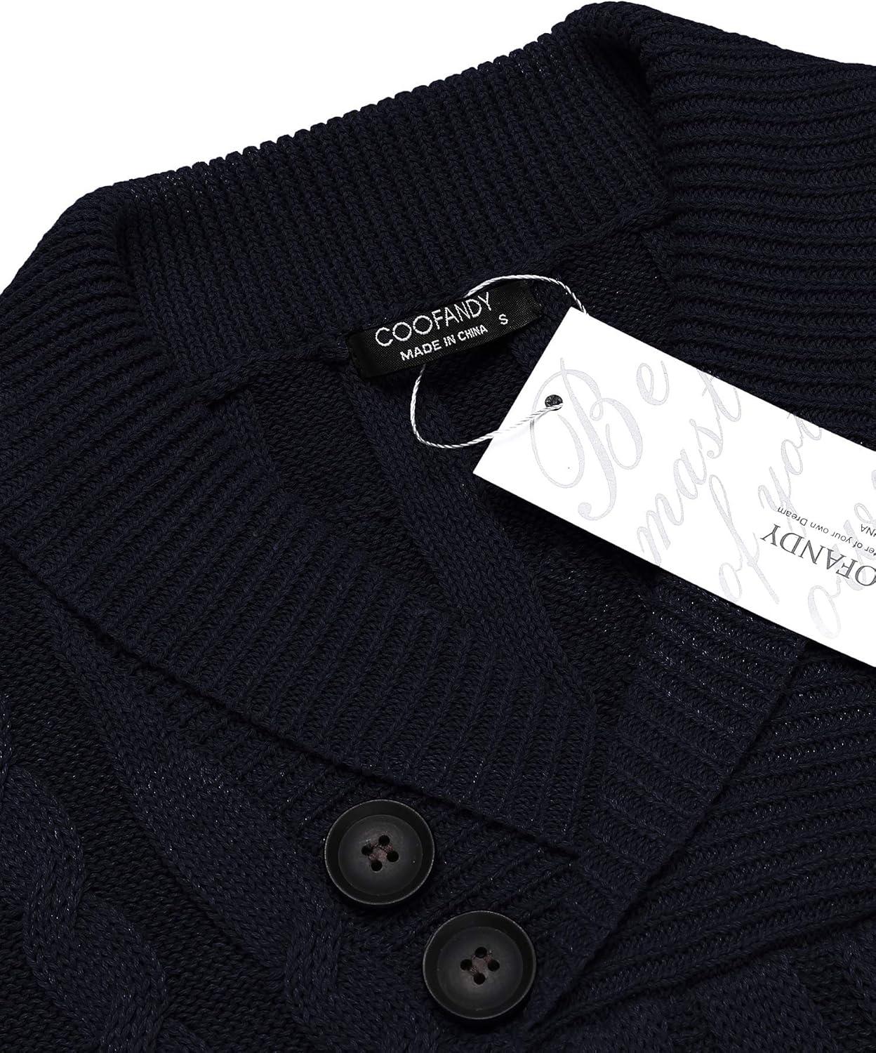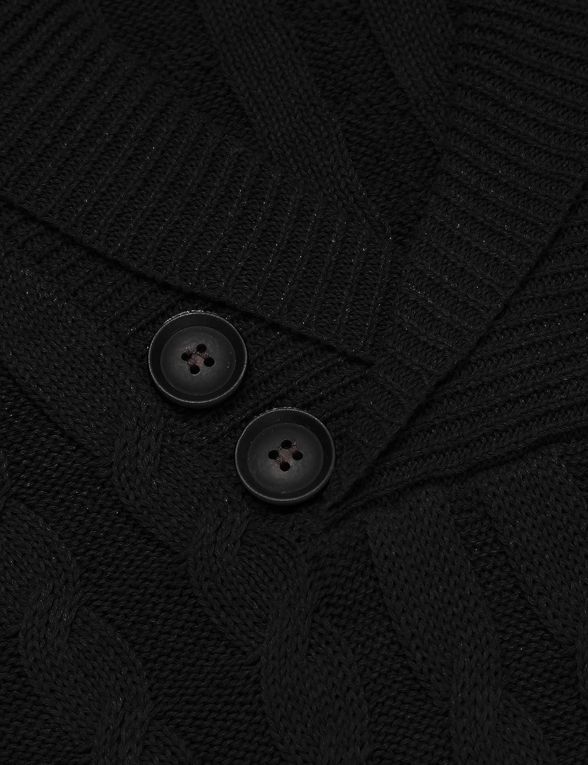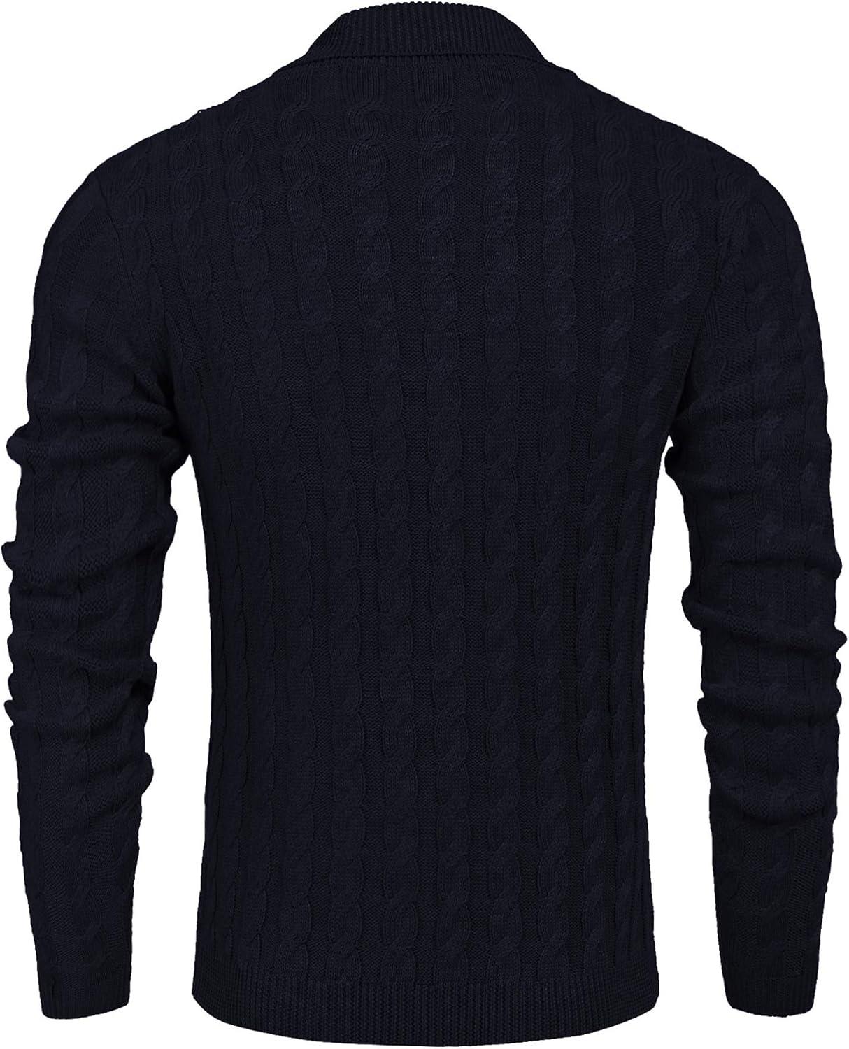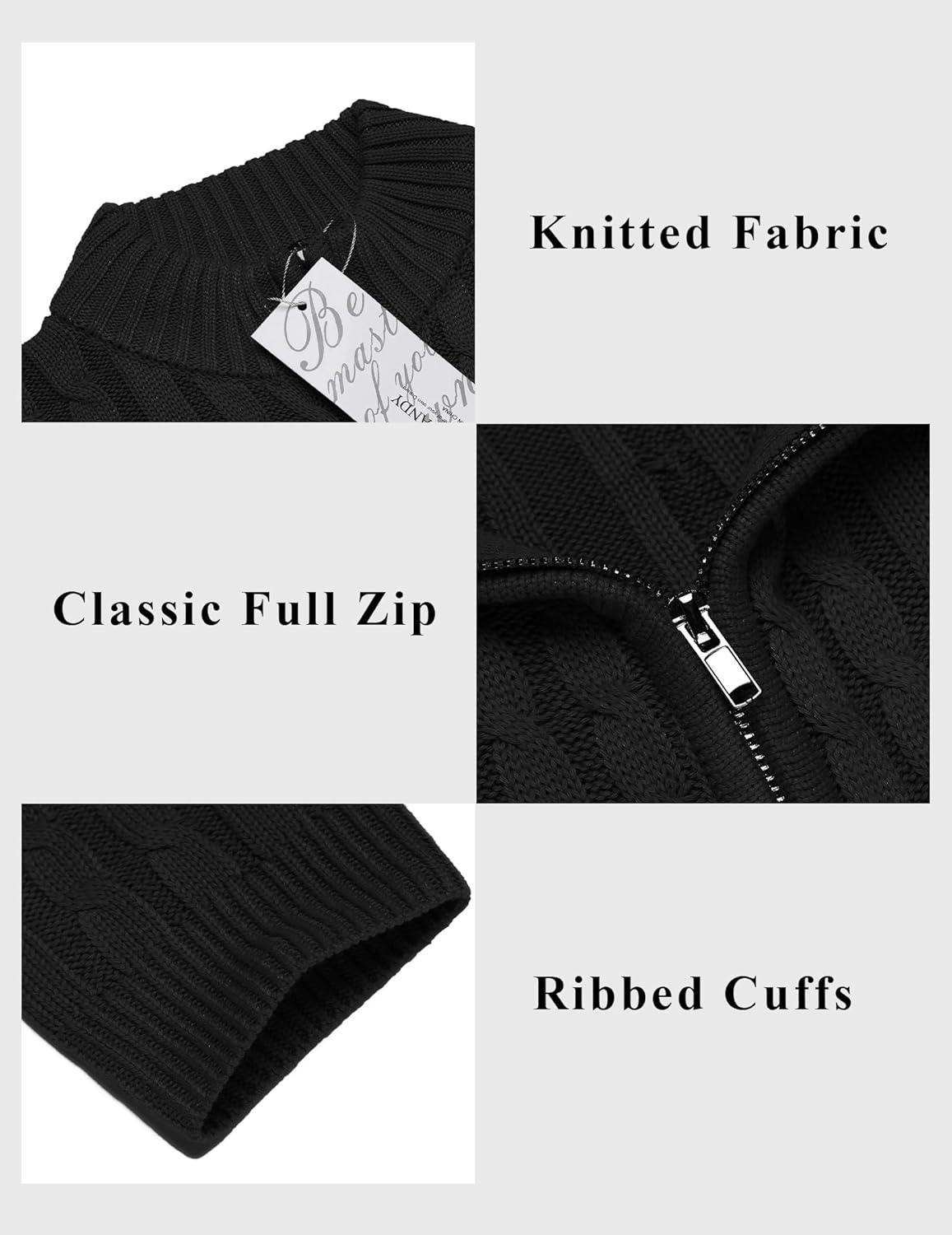 COOFANDY Men’s Full Zip Cardigan Sweater Slim Fit Cable Knitted Zip Up Sweater with Pockets(Black)
