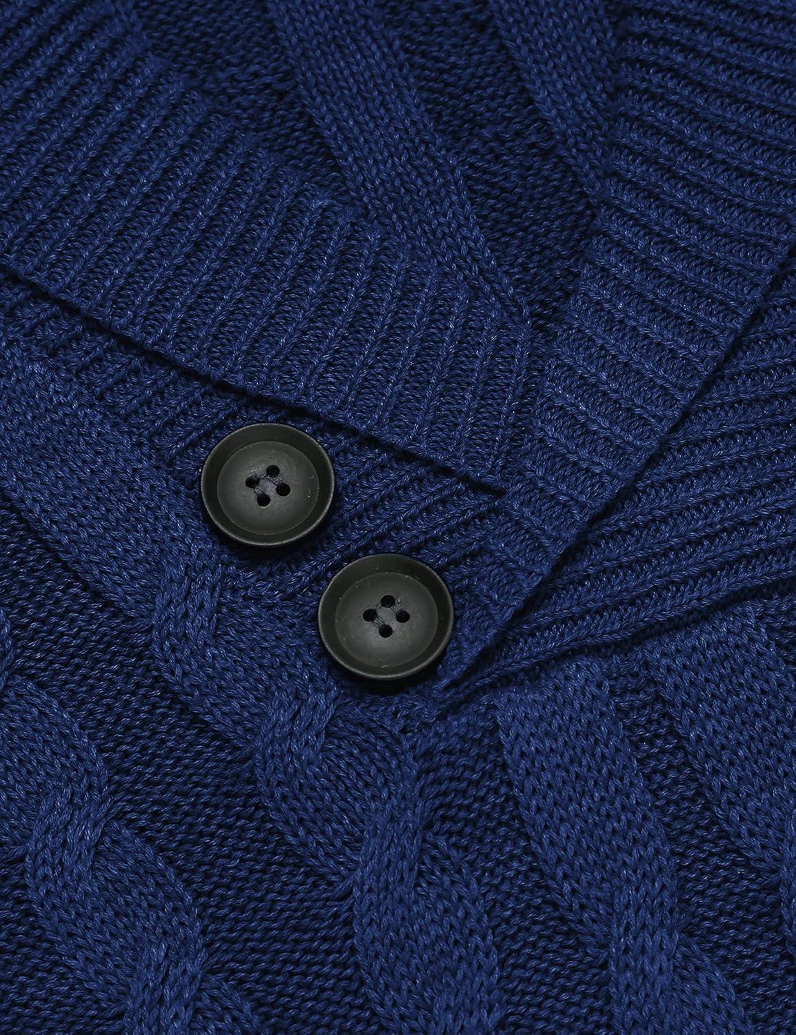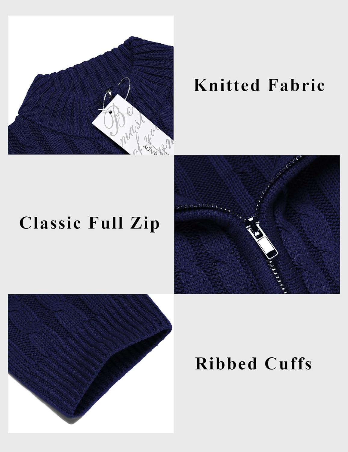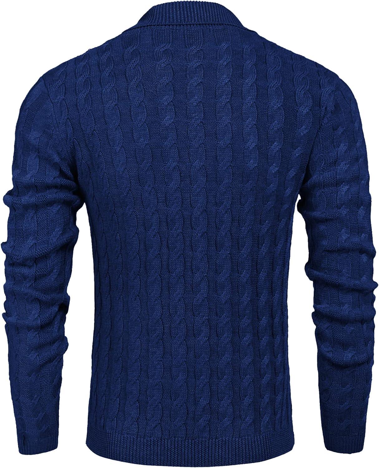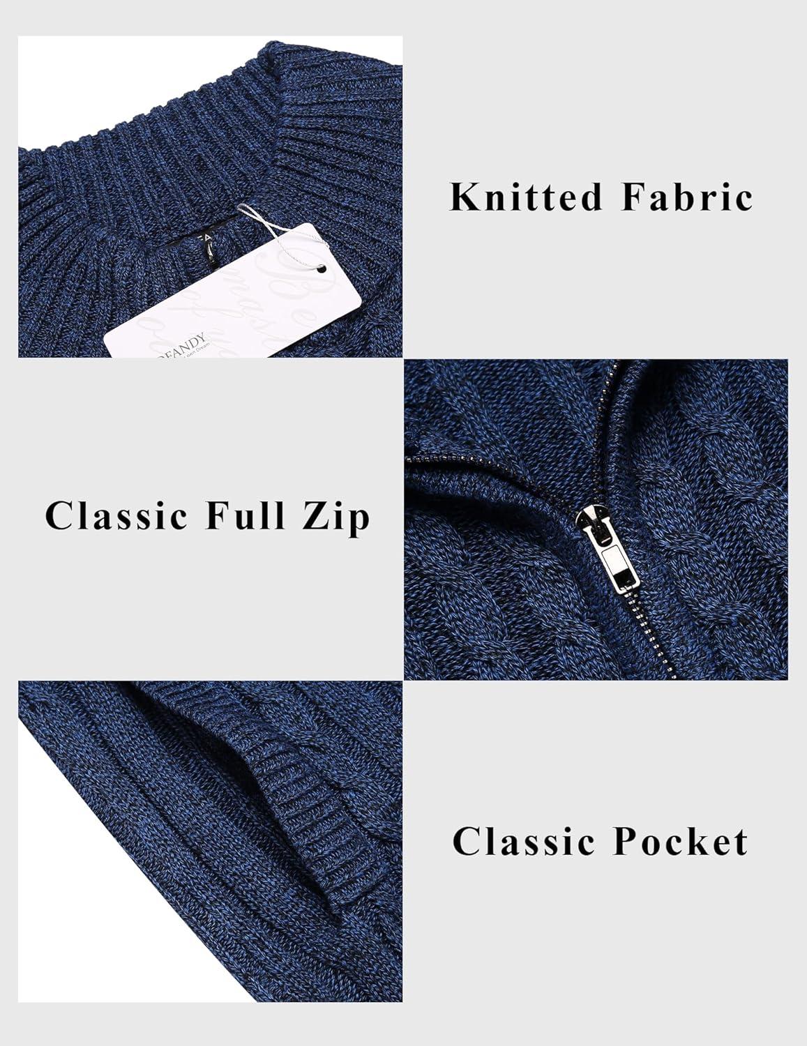 COOFANDY Men’s Full Zip Cardigan Sweater Slim Fit Cable Knitted Zip Up Sweater with Pockets(Deep Blue)