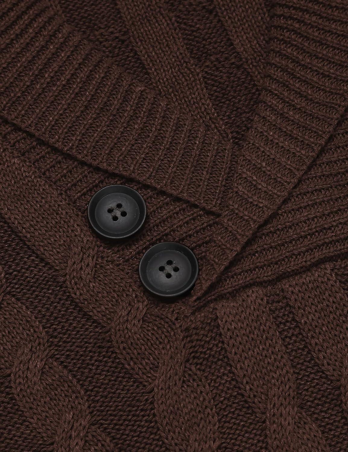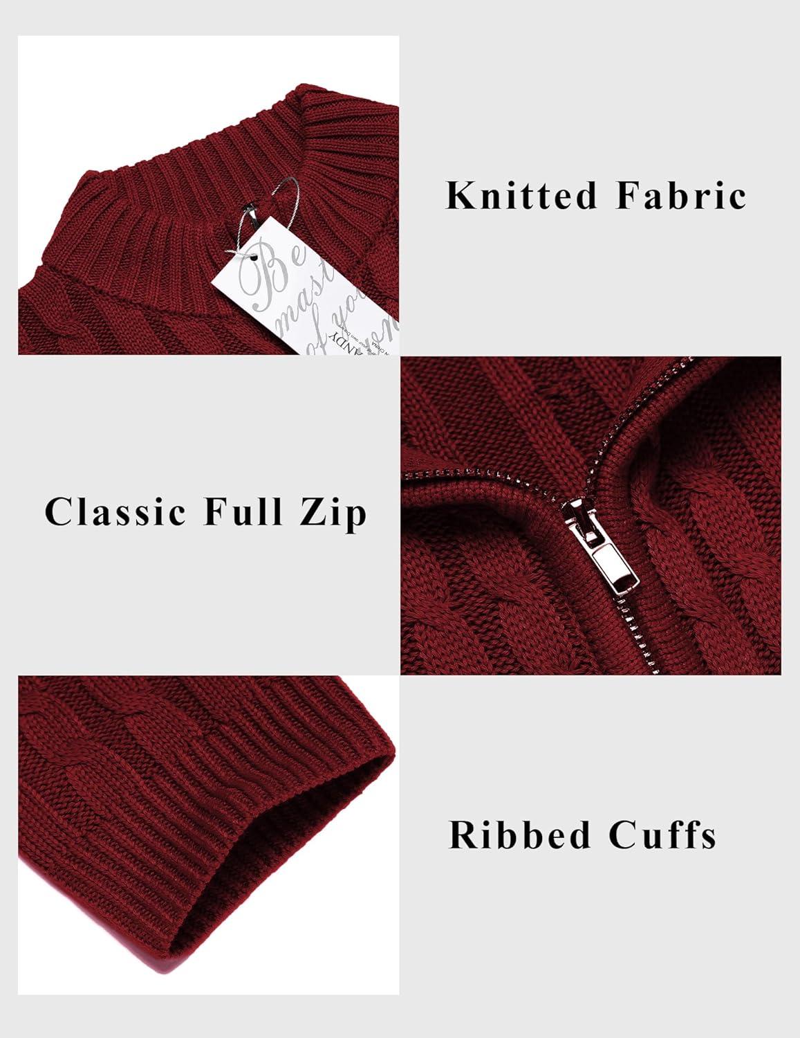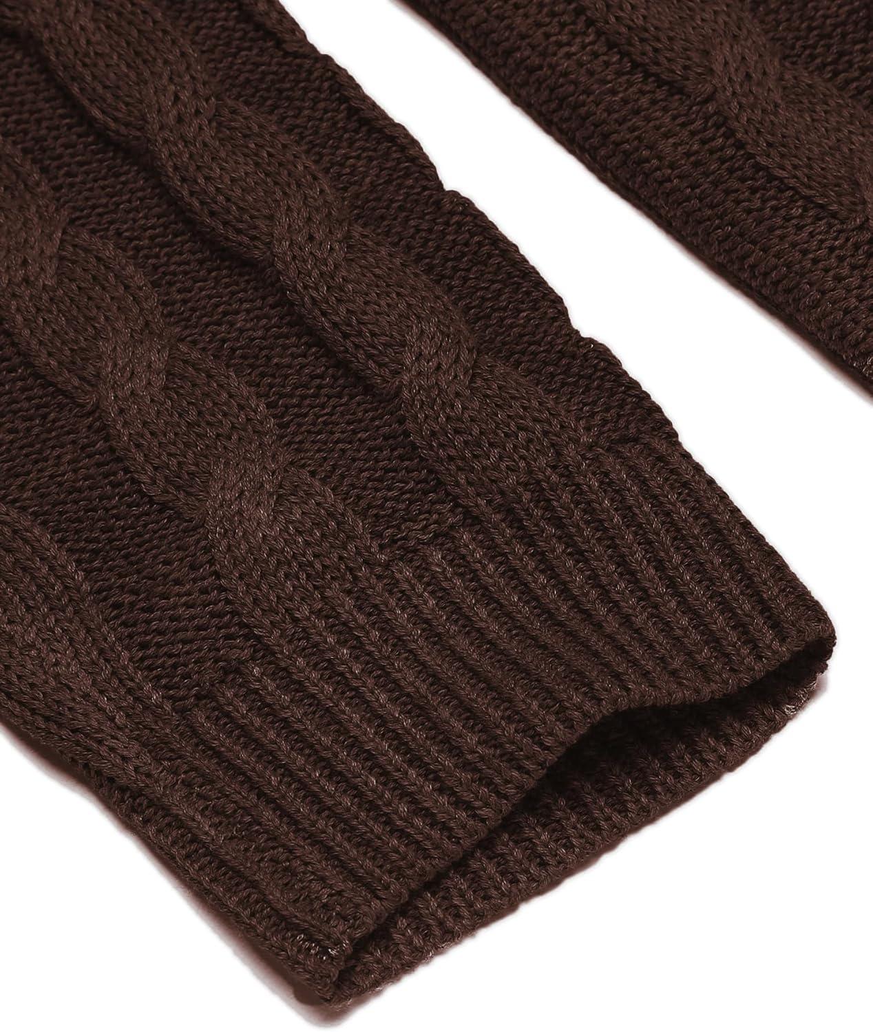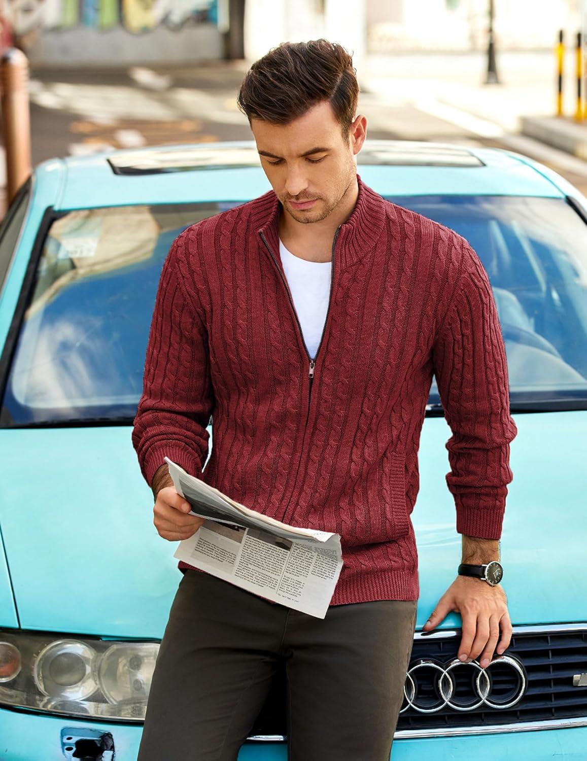 COOFANDY Men’s Full Zip Cardigan Sweater Slim Fit Cable Knitted Zip Up Sweater with Pockets(Brown)