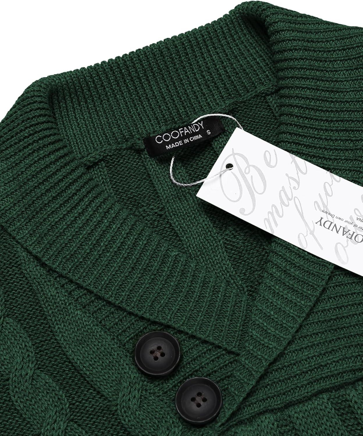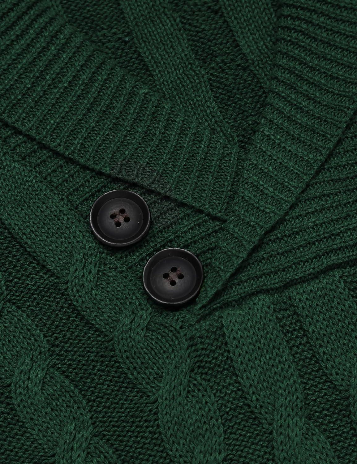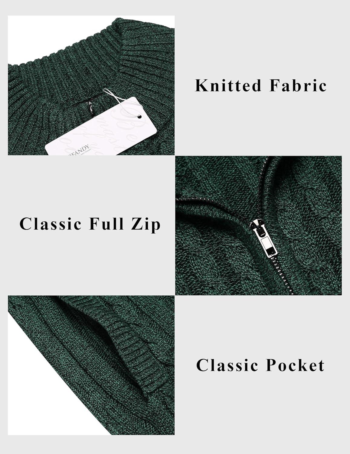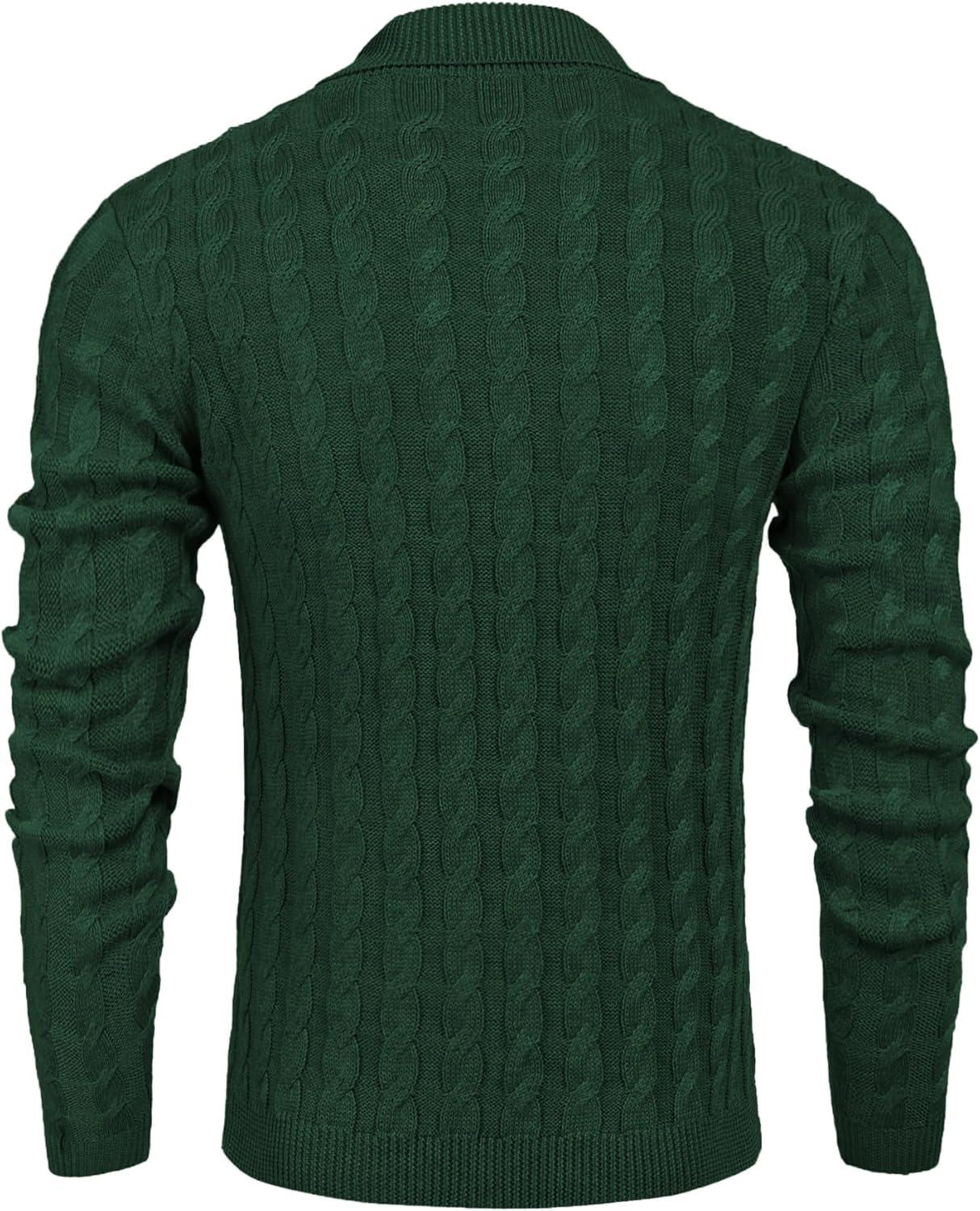 COOFANDY Men’s Full Zip Cardigan Sweater Slim Fit Cable Knitted Zip Up Sweater with Pockets(Green)