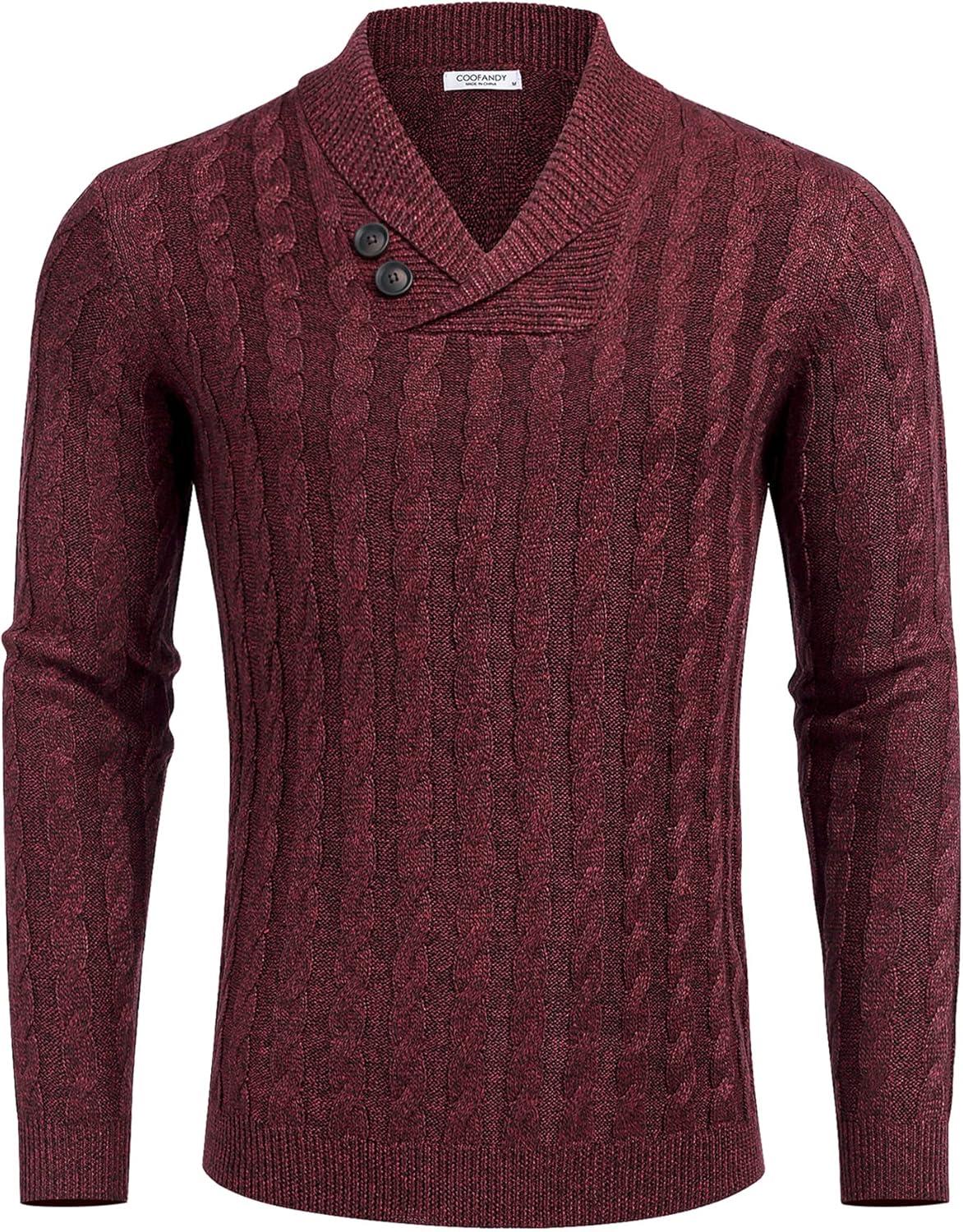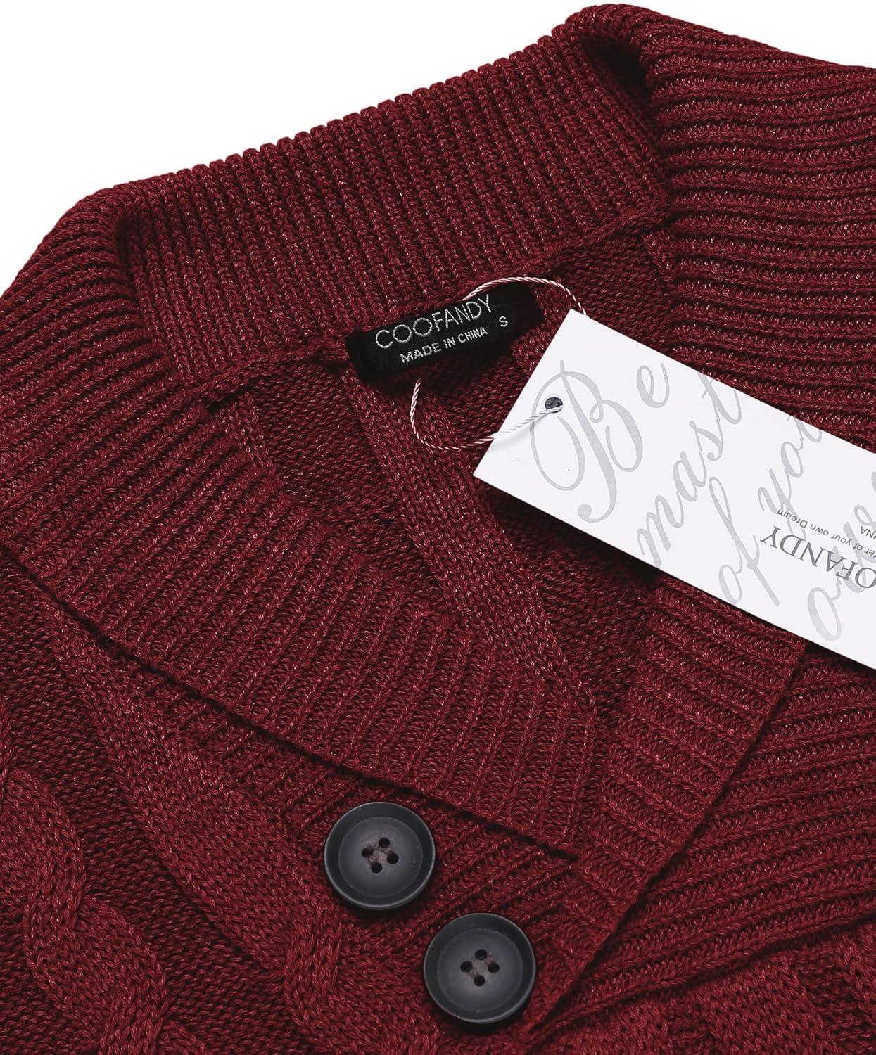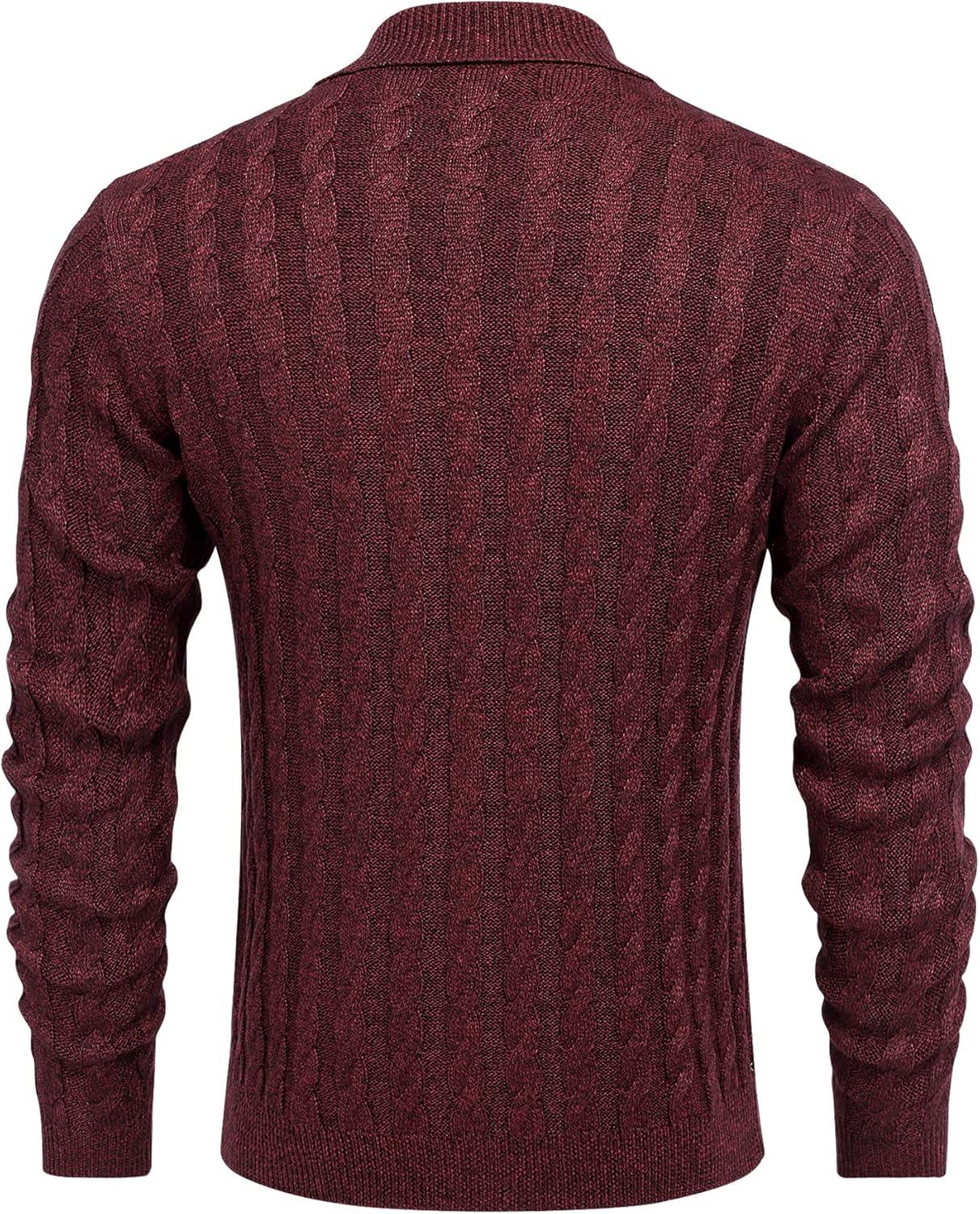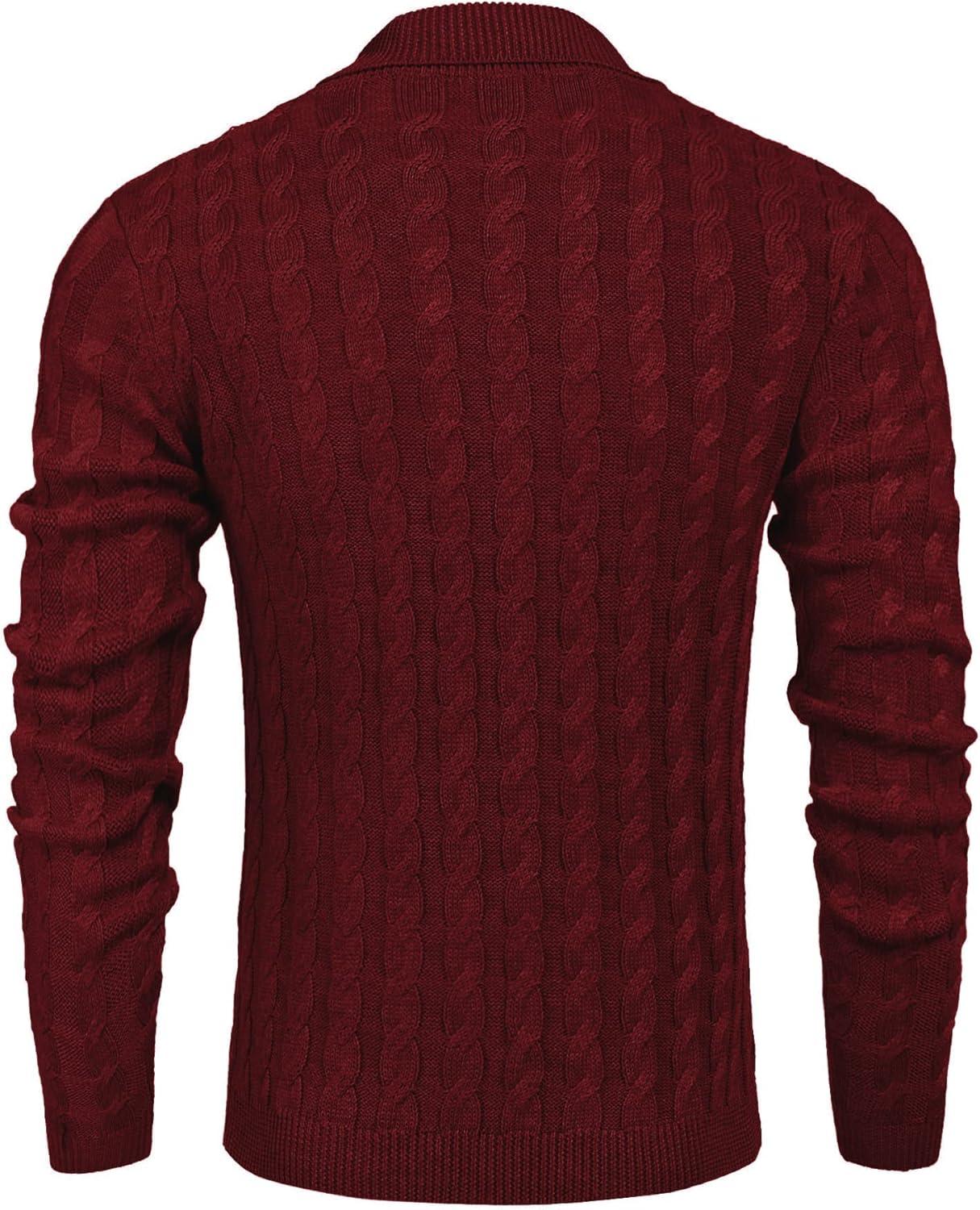 COOFANDY Mens Quarter Button Sweater Long Sleeve Stand Collar Sweaters Casual Knitted Ribbed Dress Pullover(Wine Red)