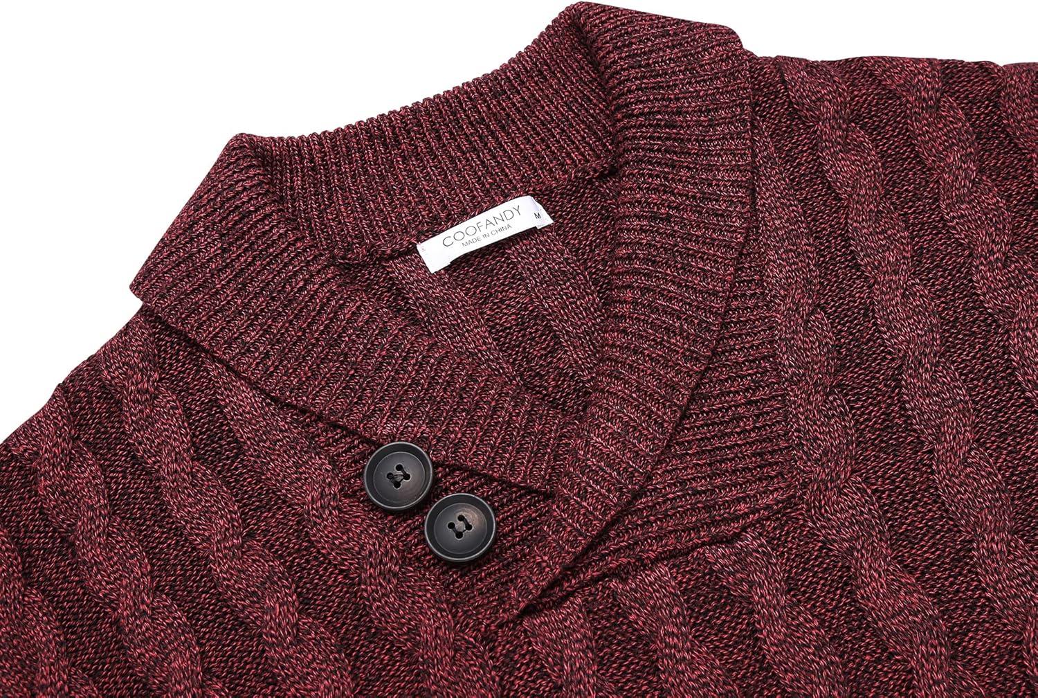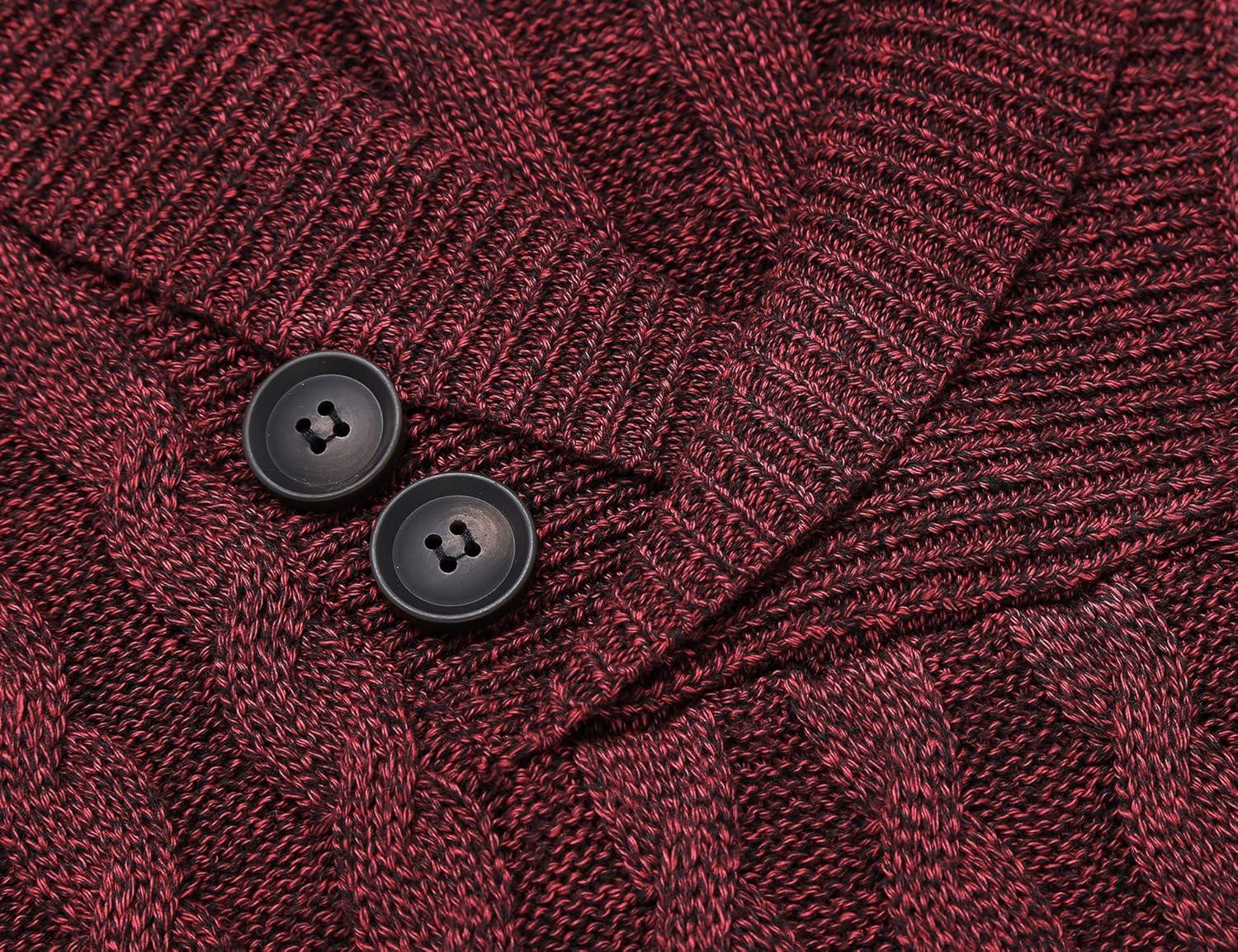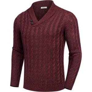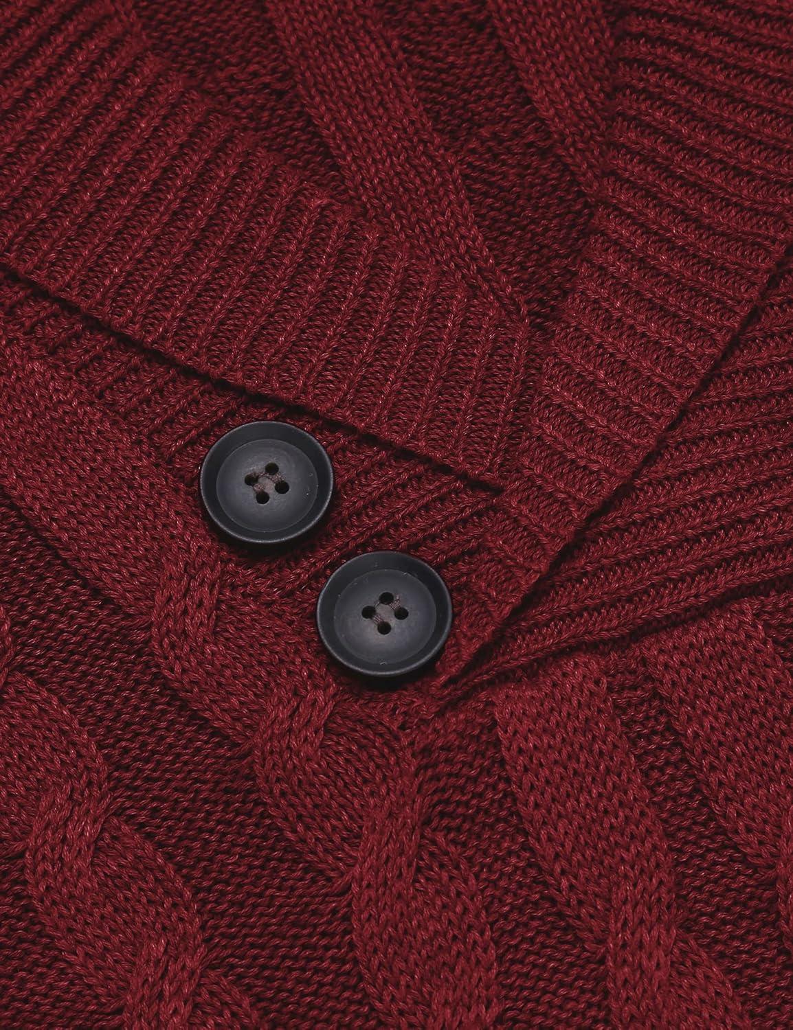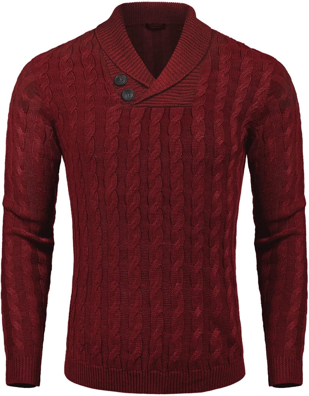 COOFANDY Mens Quarter Button Sweater Long Sleeve Stand Collar Sweaters Casual Knitted Ribbed Dress Pullover(Wine Red)