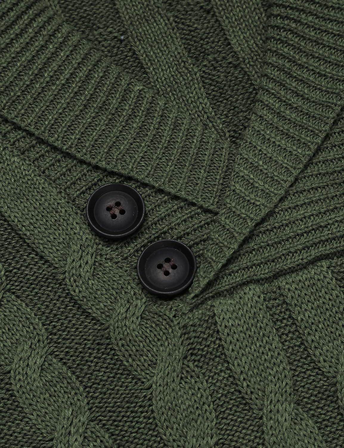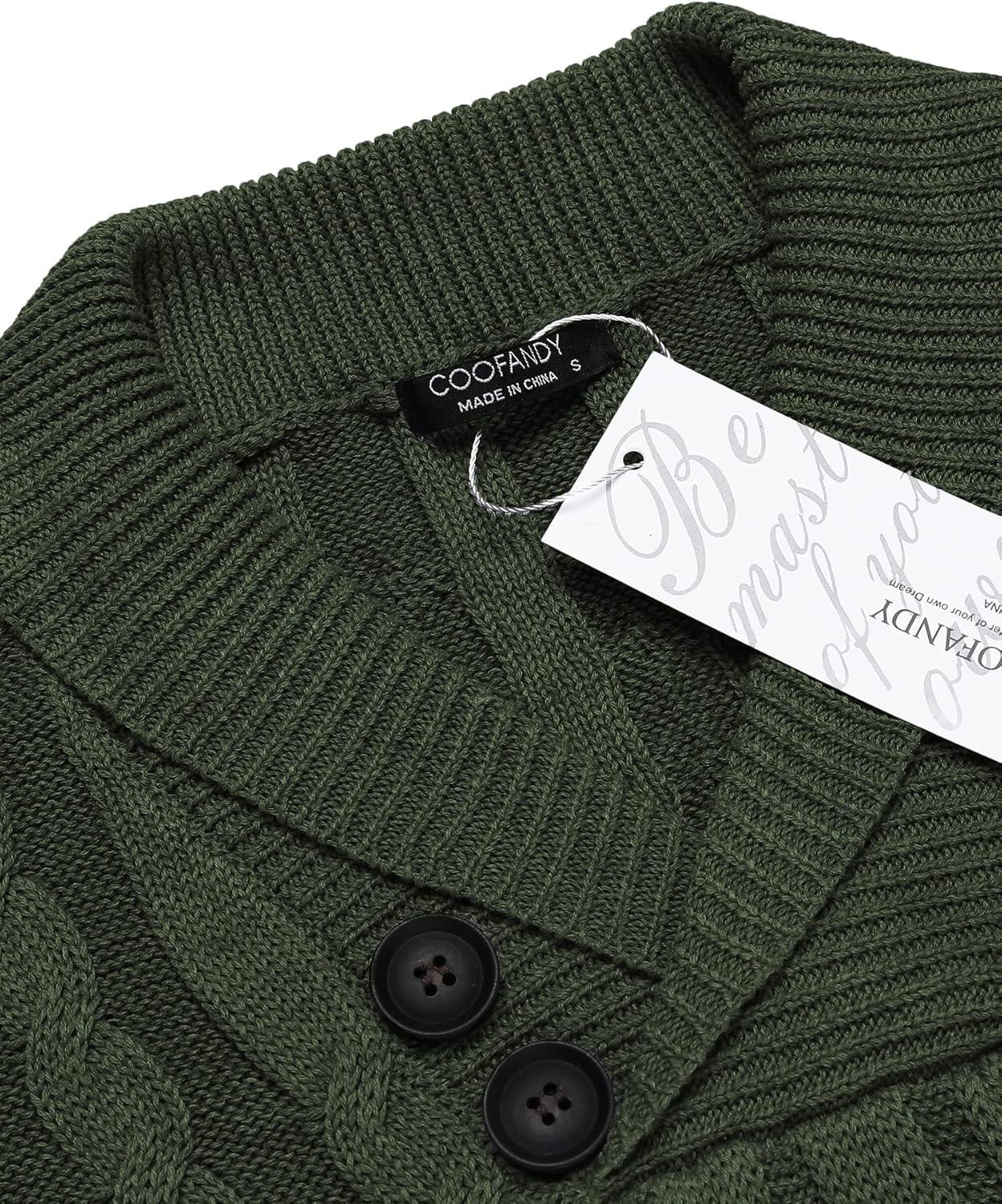 COOFANDY Men’s Full Zip Cardigan Sweater Slim Fit Cable Knitted Zip Up Sweater with Pockets(Army Green)