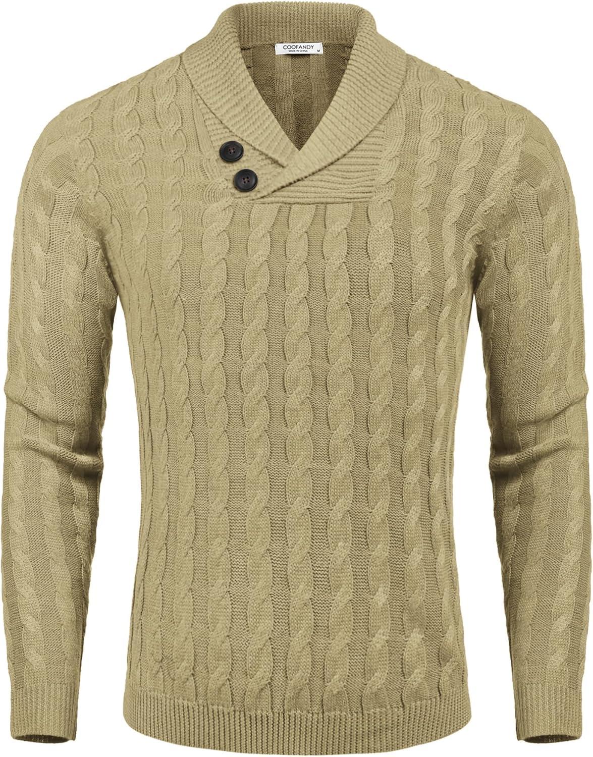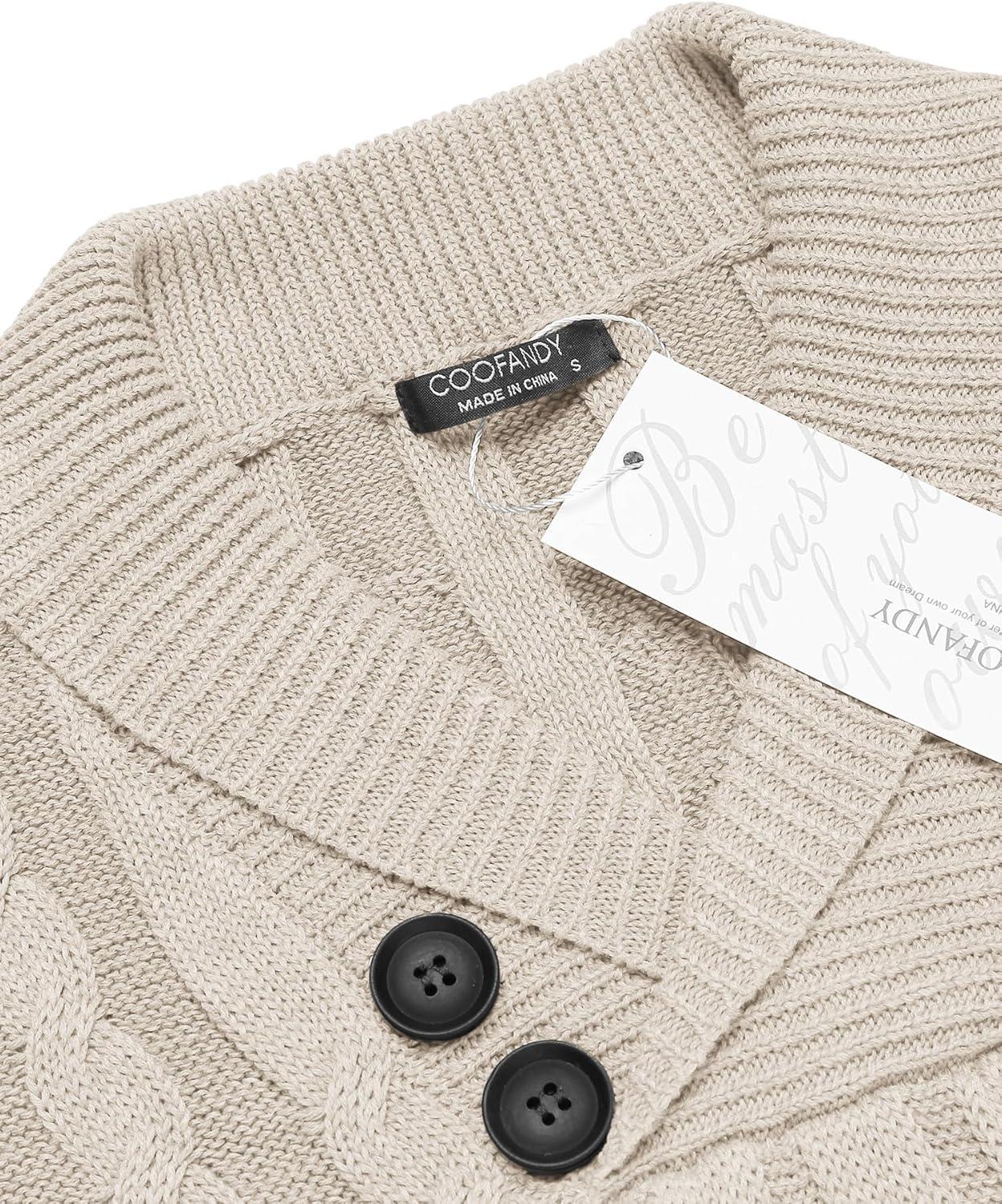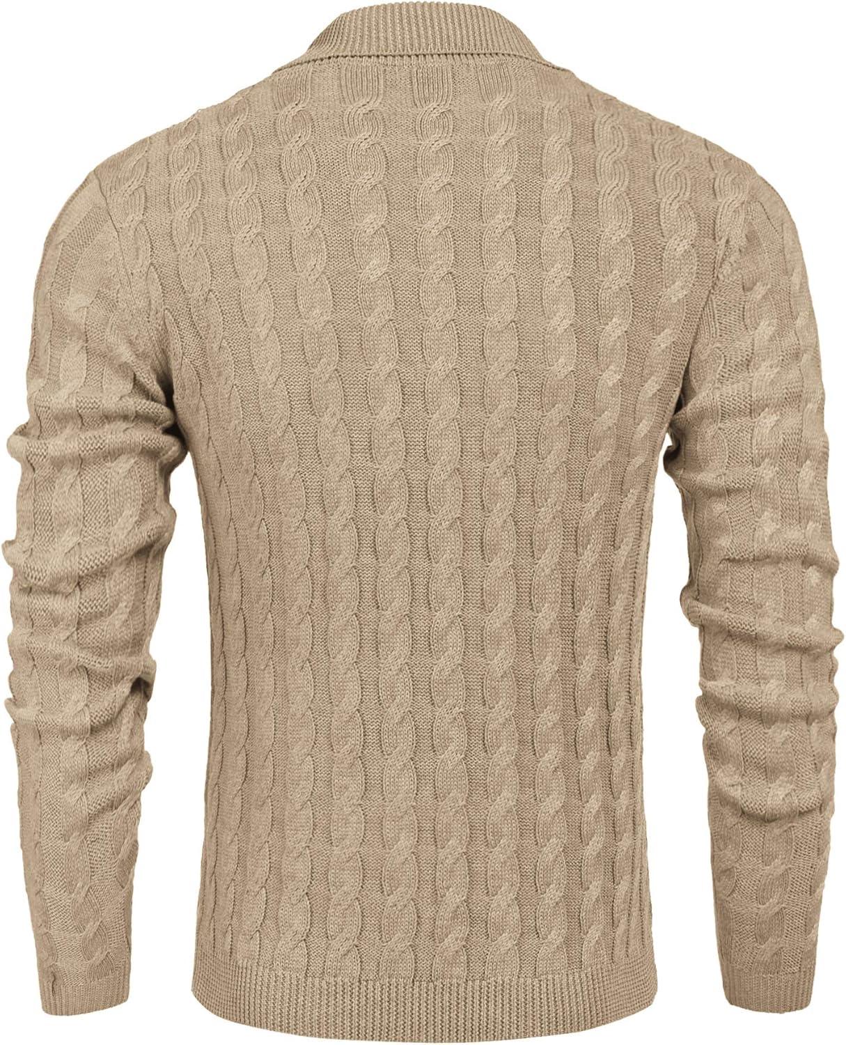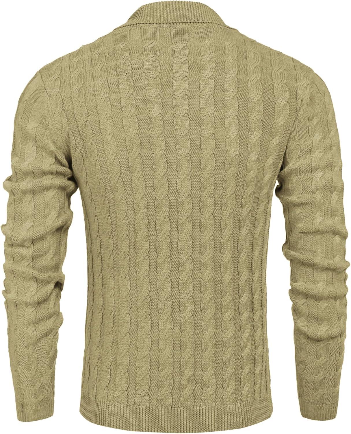 COOFANDY Mens Quarter Button Sweater Long Sleeve Stand Collar Sweaters Casual Knitted Ribbed Dress Pullover(Beige)