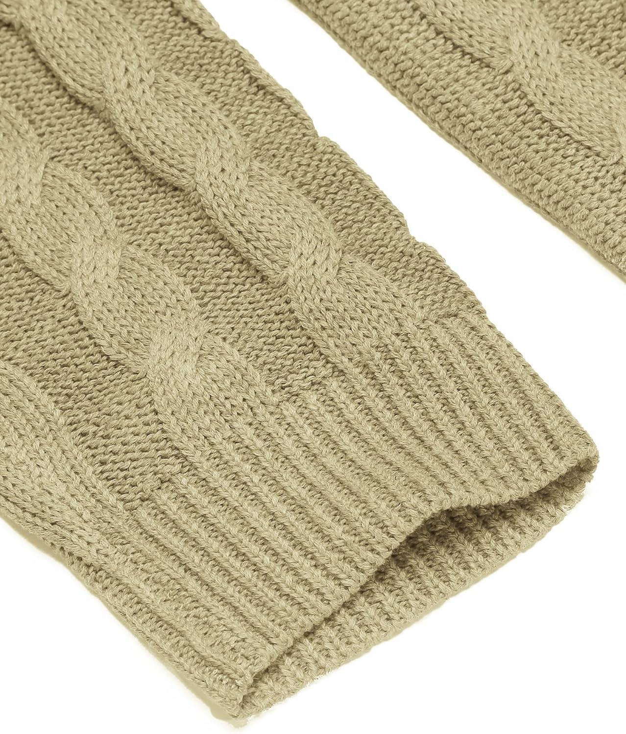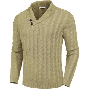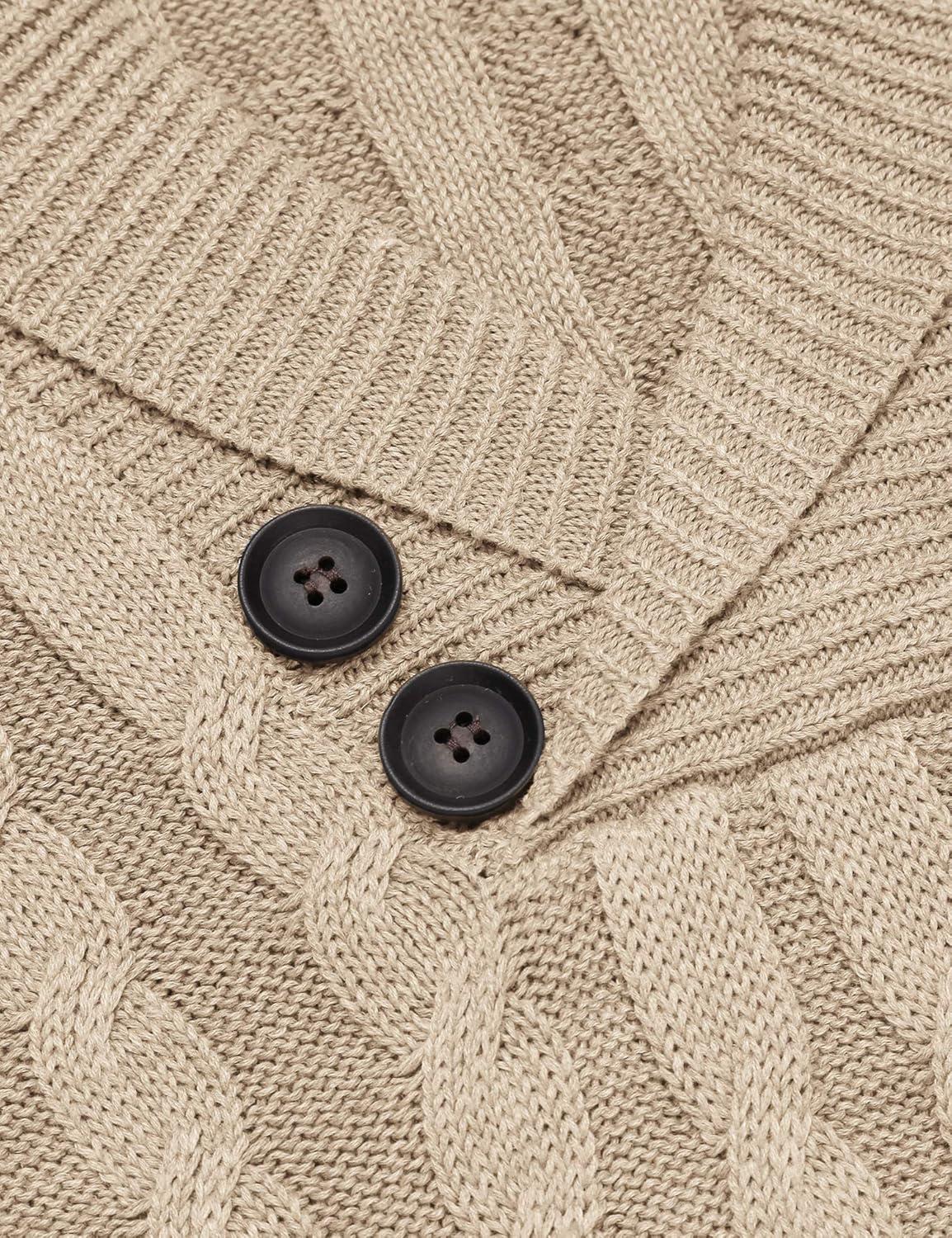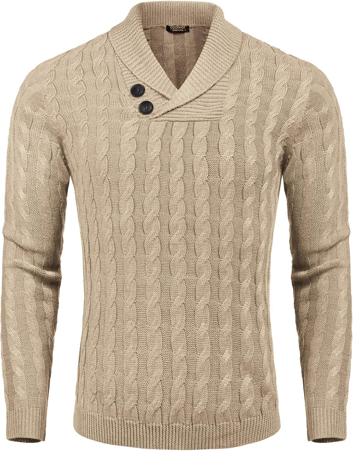 COOFANDY Mens Quarter Button Sweater Long Sleeve Stand Collar Sweaters Casual Knitted Ribbed Dress Pullover(Beige)