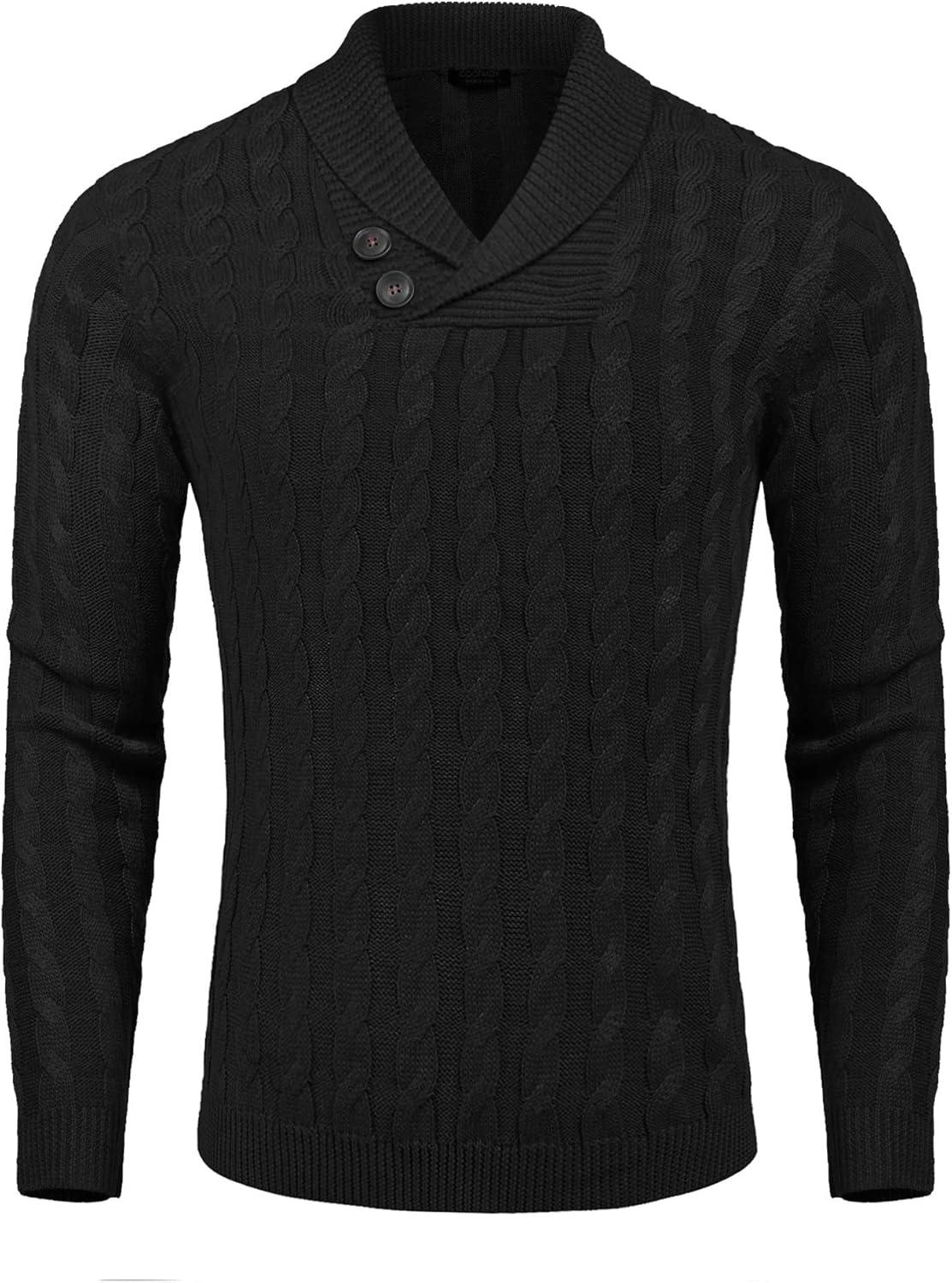 COOFANDY Mens Quarter Button Sweater Long Sleeve Stand Collar Sweaters Casual Knitted Ribbed Dress Pullover(A-black)