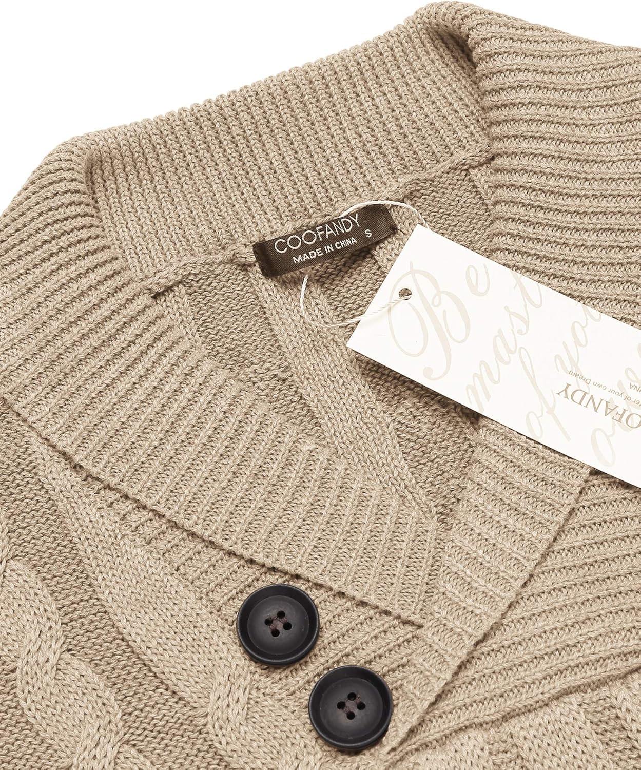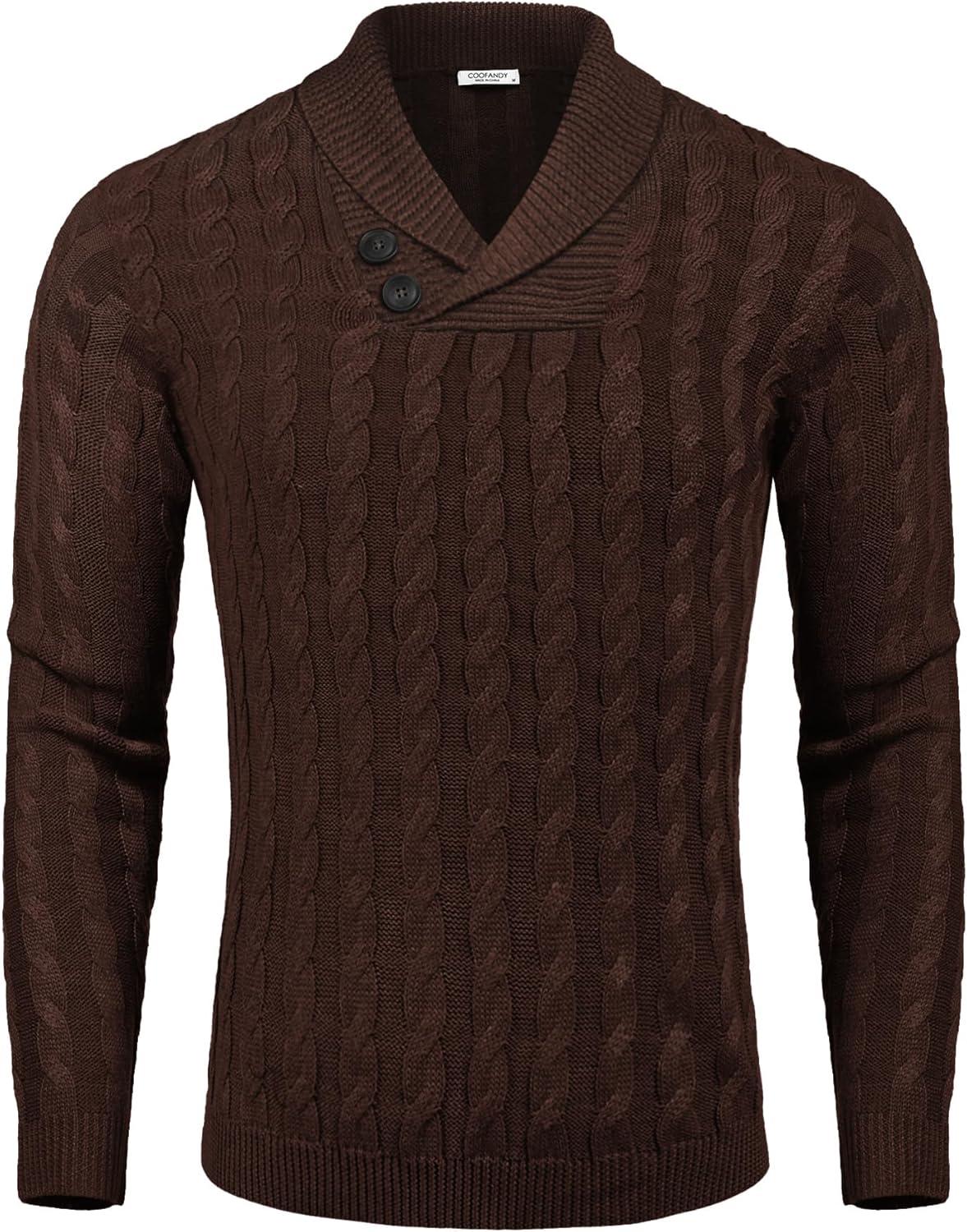 COOFANDY Mens Quarter Button Sweater Long Sleeve Stand Collar Sweaters Casual Knitted Ribbed Dress Pullover(Brown)