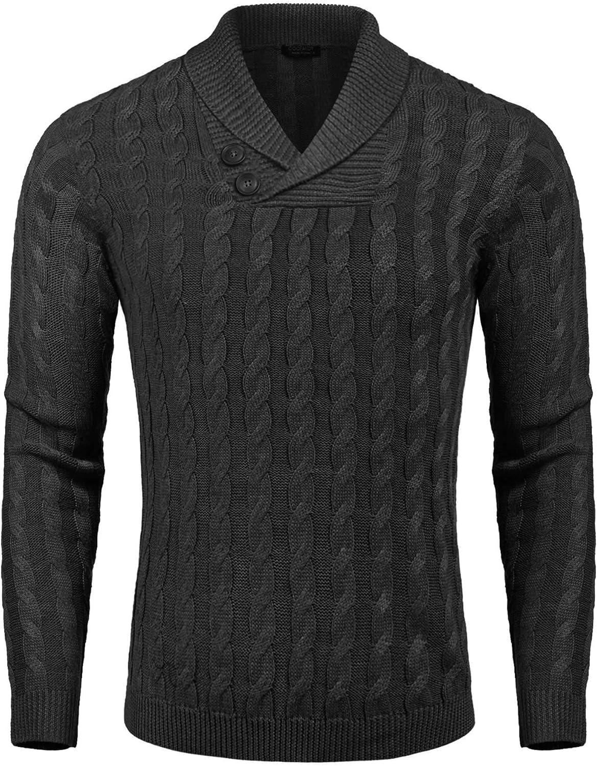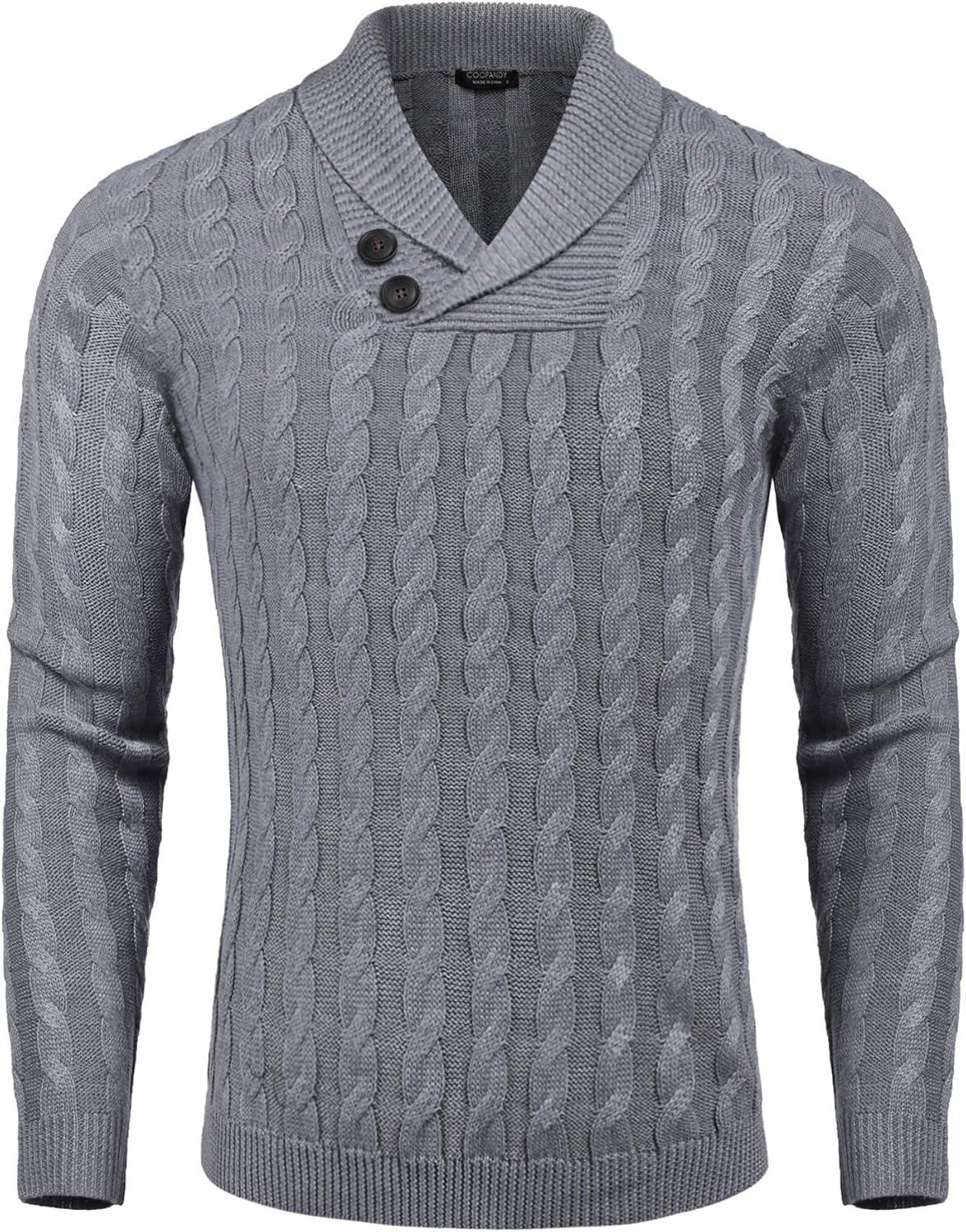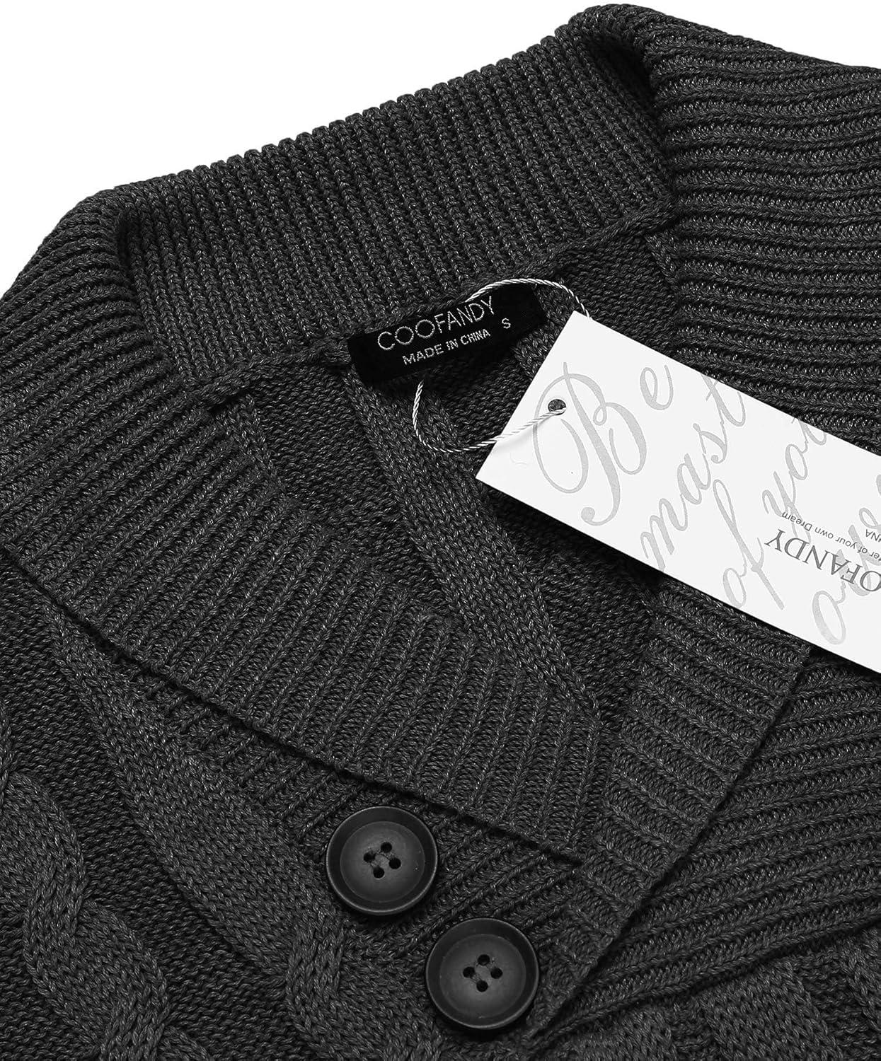 COOFANDY Mens Quarter Button Sweater Long Sleeve Stand Collar Sweaters Casual Knitted Ribbed Dress Pullover(Dark Grey)