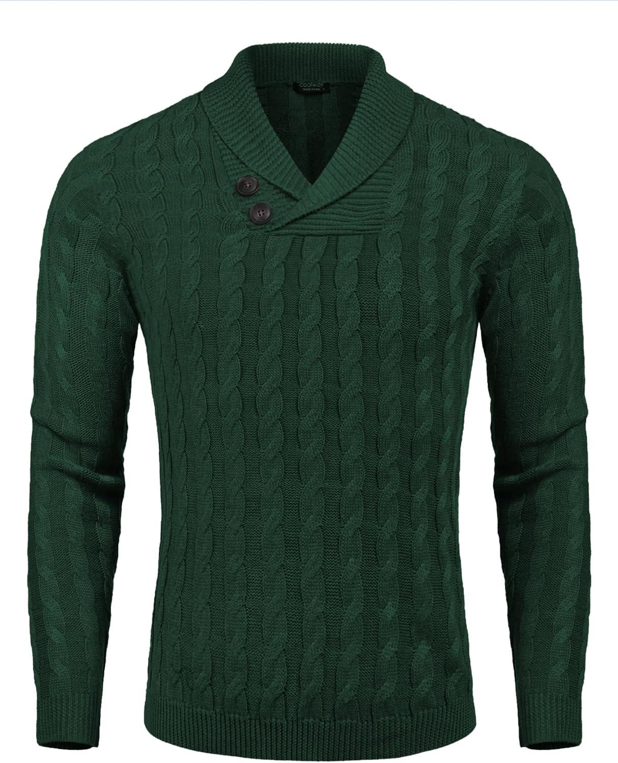 COOFANDY Mens Quarter Button Sweater Long Sleeve Stand Collar Sweaters Casual Knitted Ribbed Dress Pullover(Army Green)