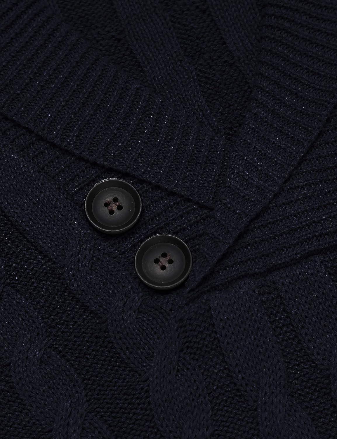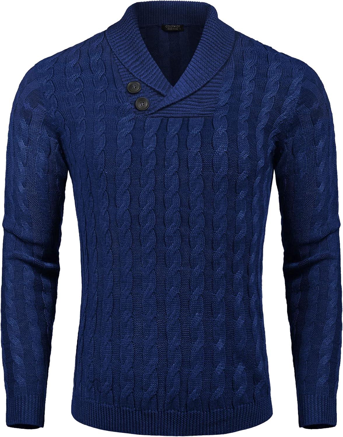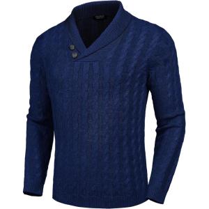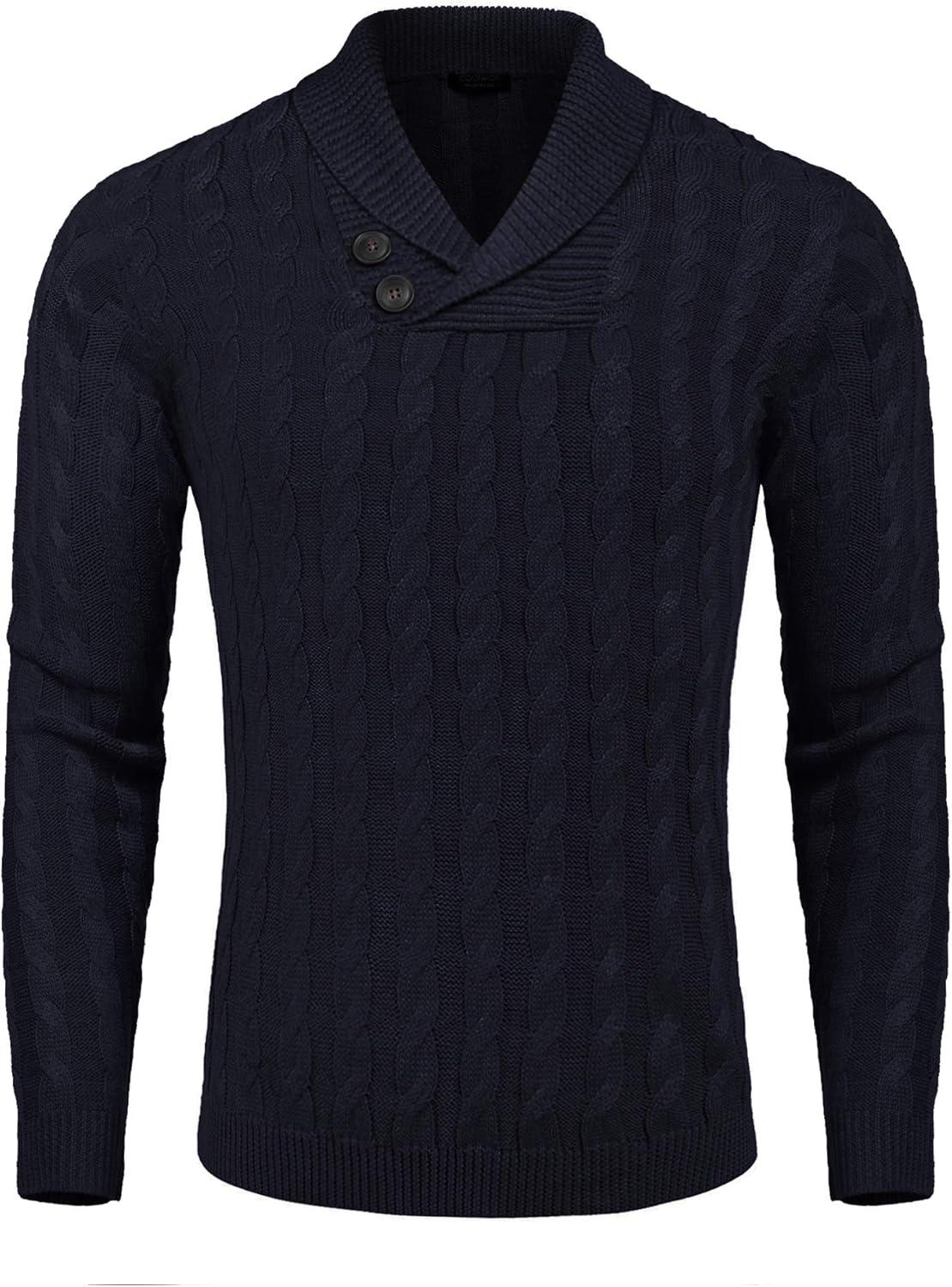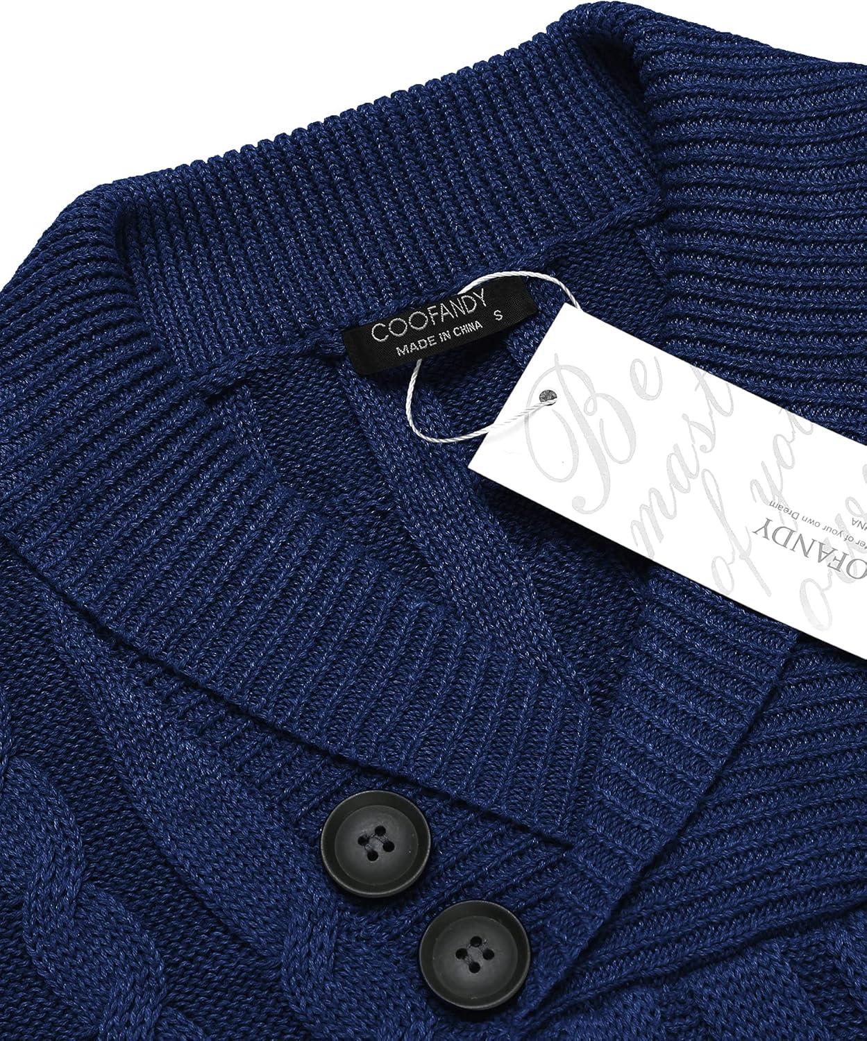 COOFANDY Mens Quarter Button Sweater Long Sleeve Stand Collar Sweaters Casual Knitted Ribbed Dress Pullover(Navy Blue)