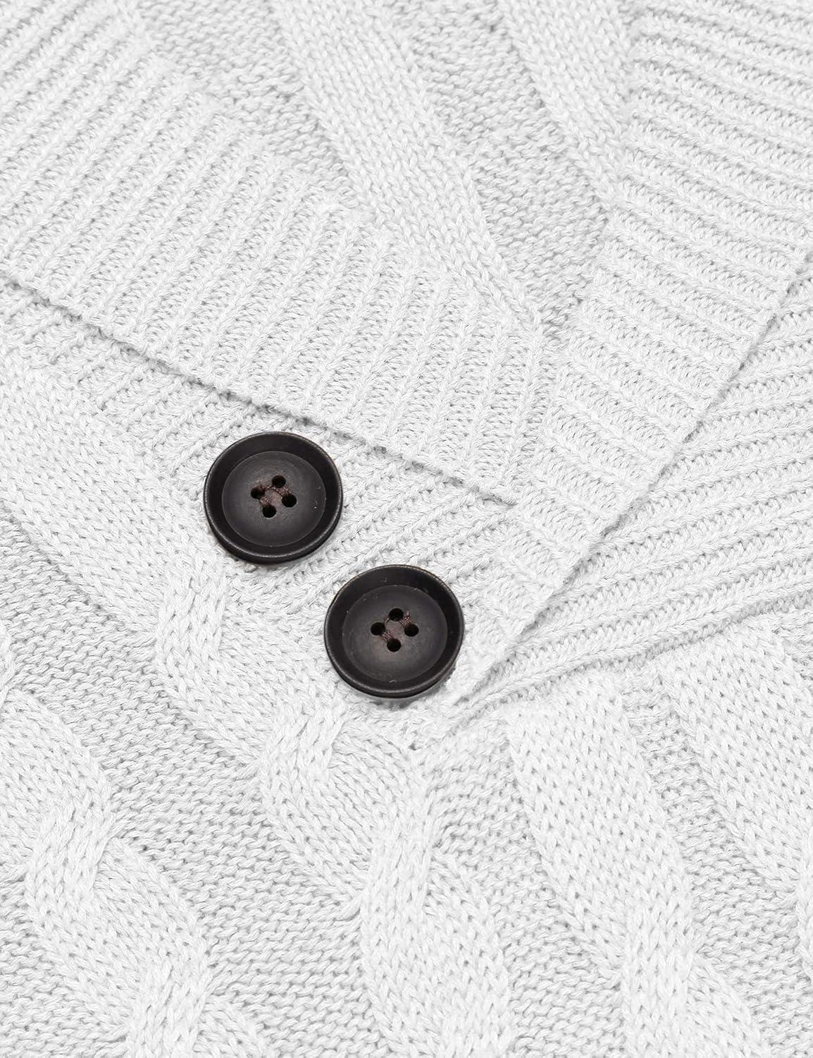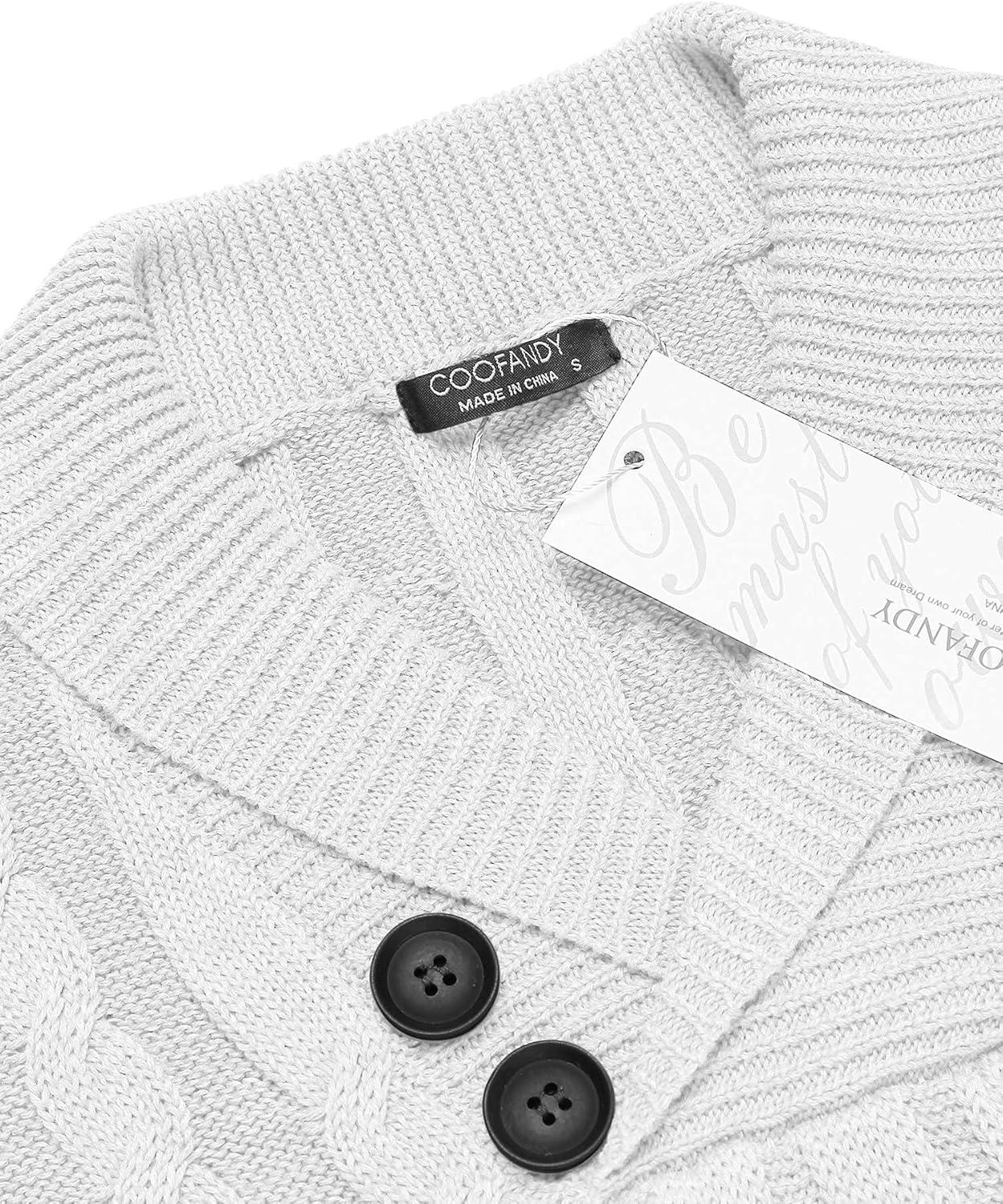 COOFANDY Mens Quarter Button Sweater Long Sleeve Stand Collar Sweaters Casual Knitted Ribbed Dress Pullover(Light Grey)