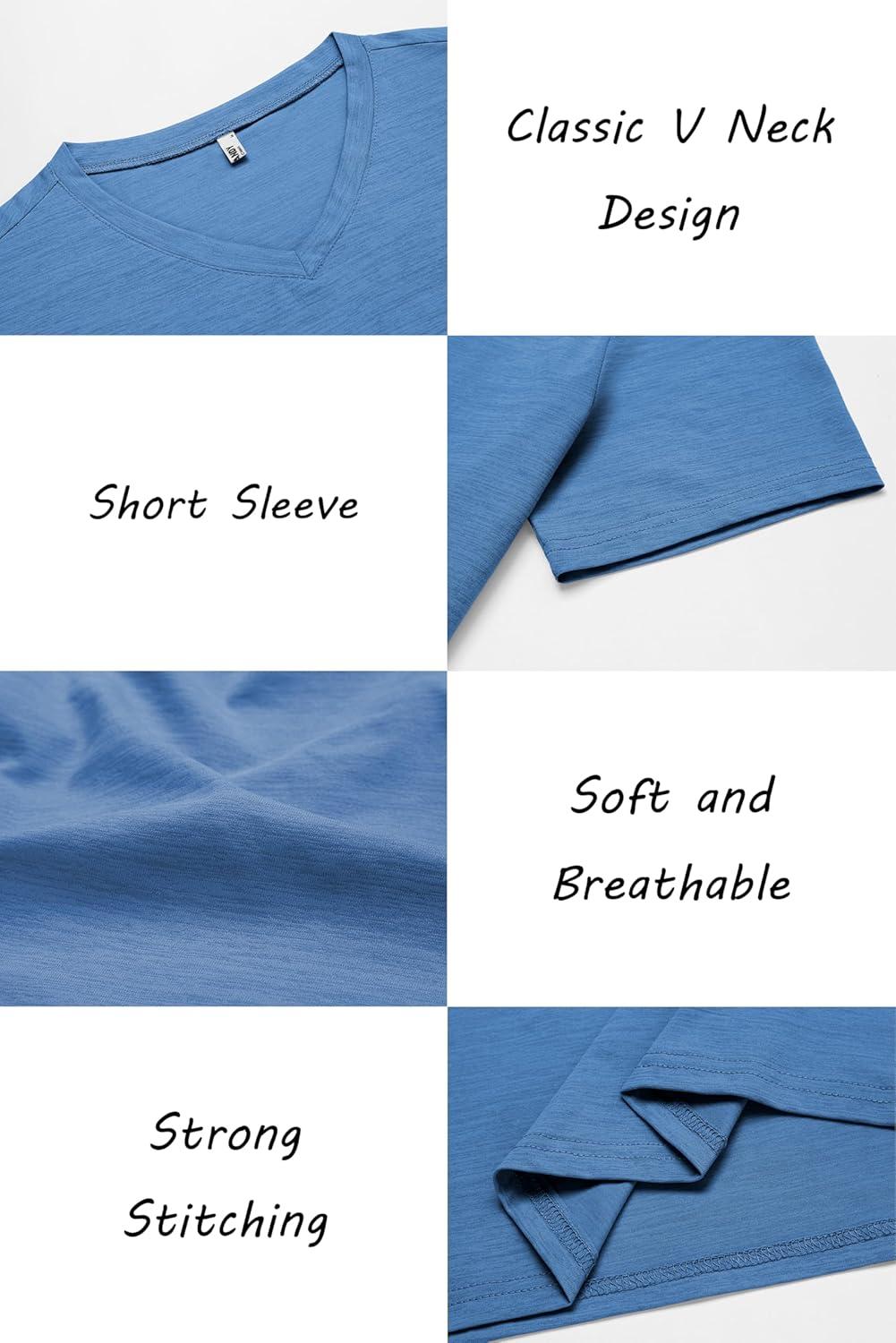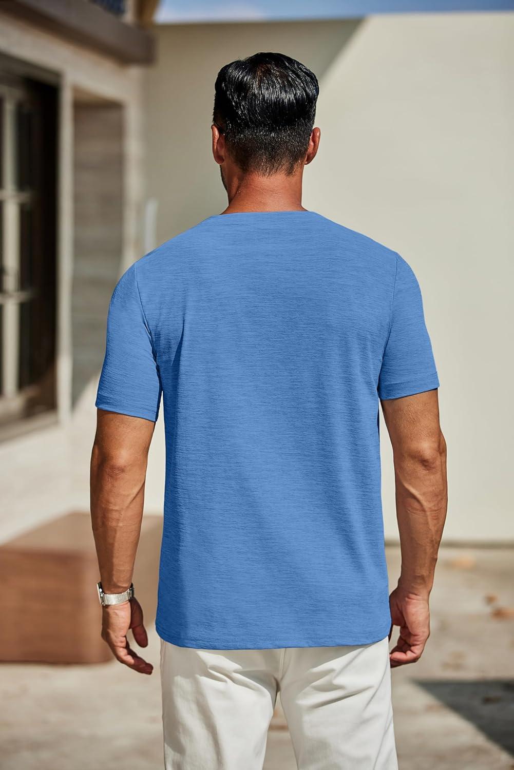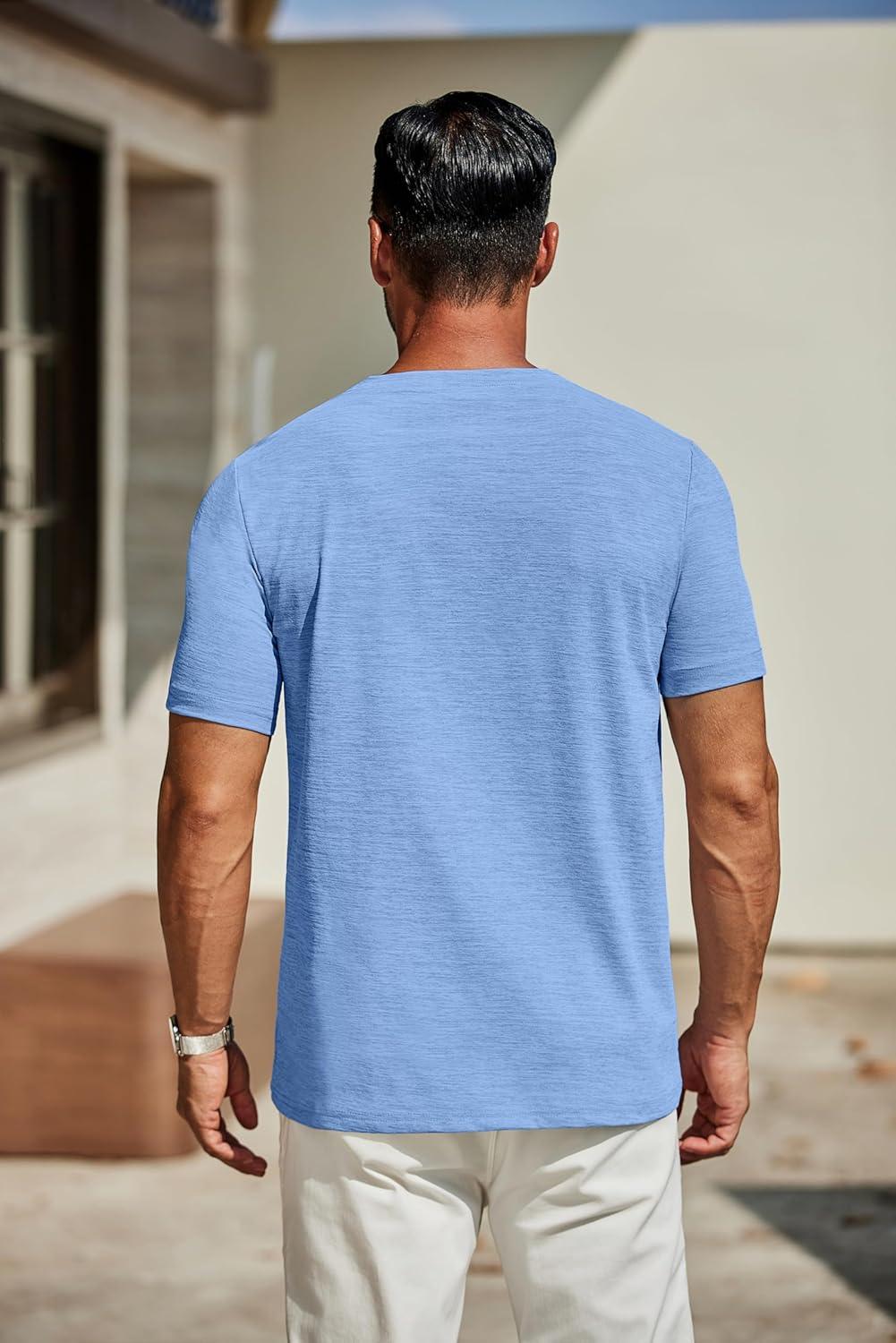 COOFANDY Men’s Casual Henley Shirt Short Sleeve Band Collar Linen Shirt Summer Beach Hippie T-Shirts(A-flecking Blue)