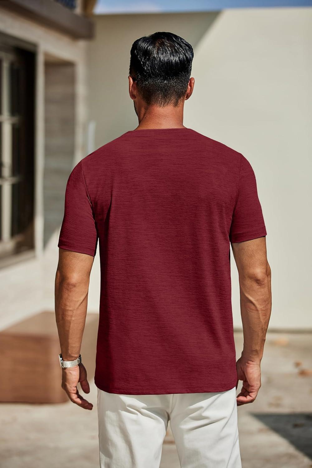 COOFANDY Mens Henley Shirts Long Sleeve Lightweight Buttons T-Shirts Casual Basic Pullover Top(Wine Red)