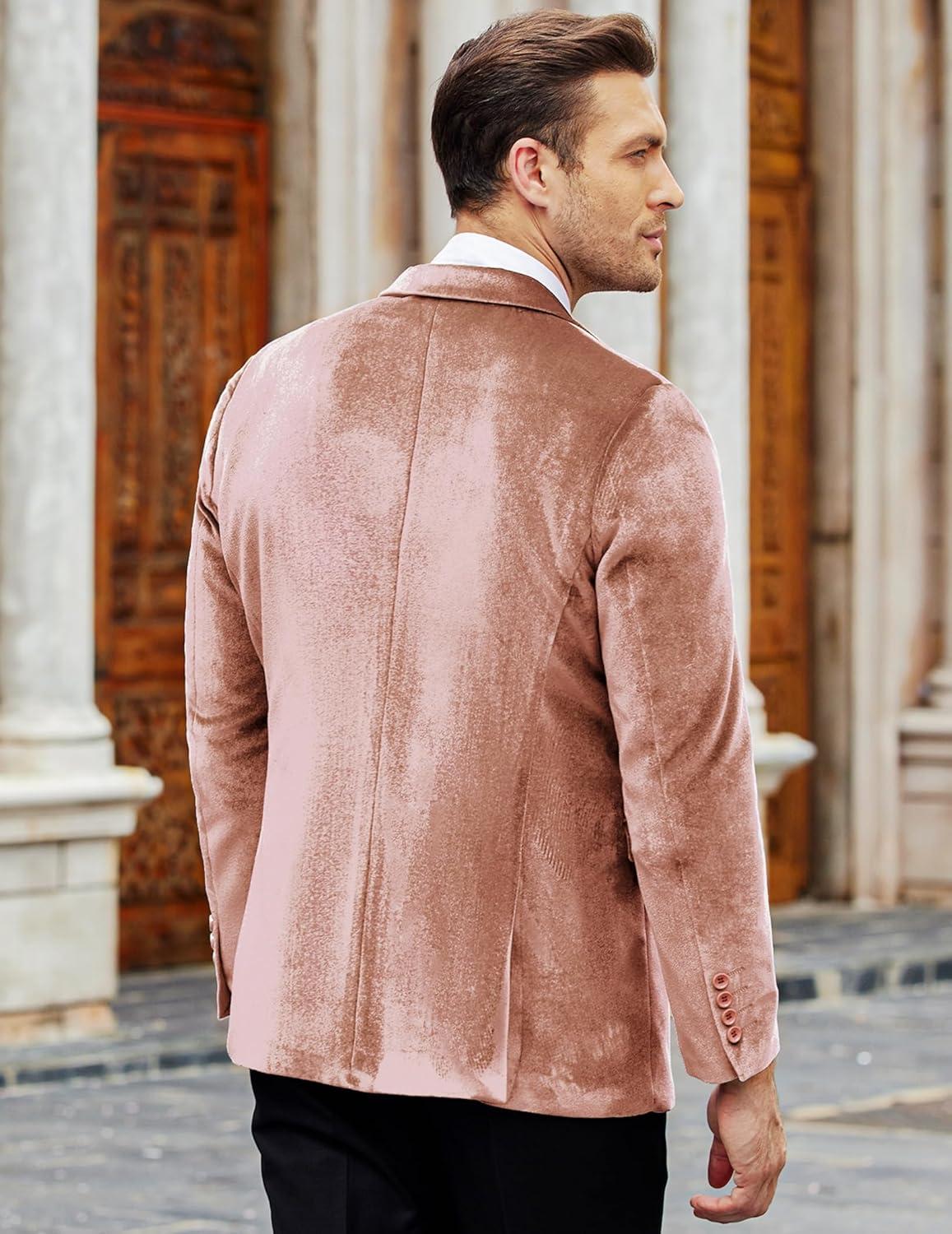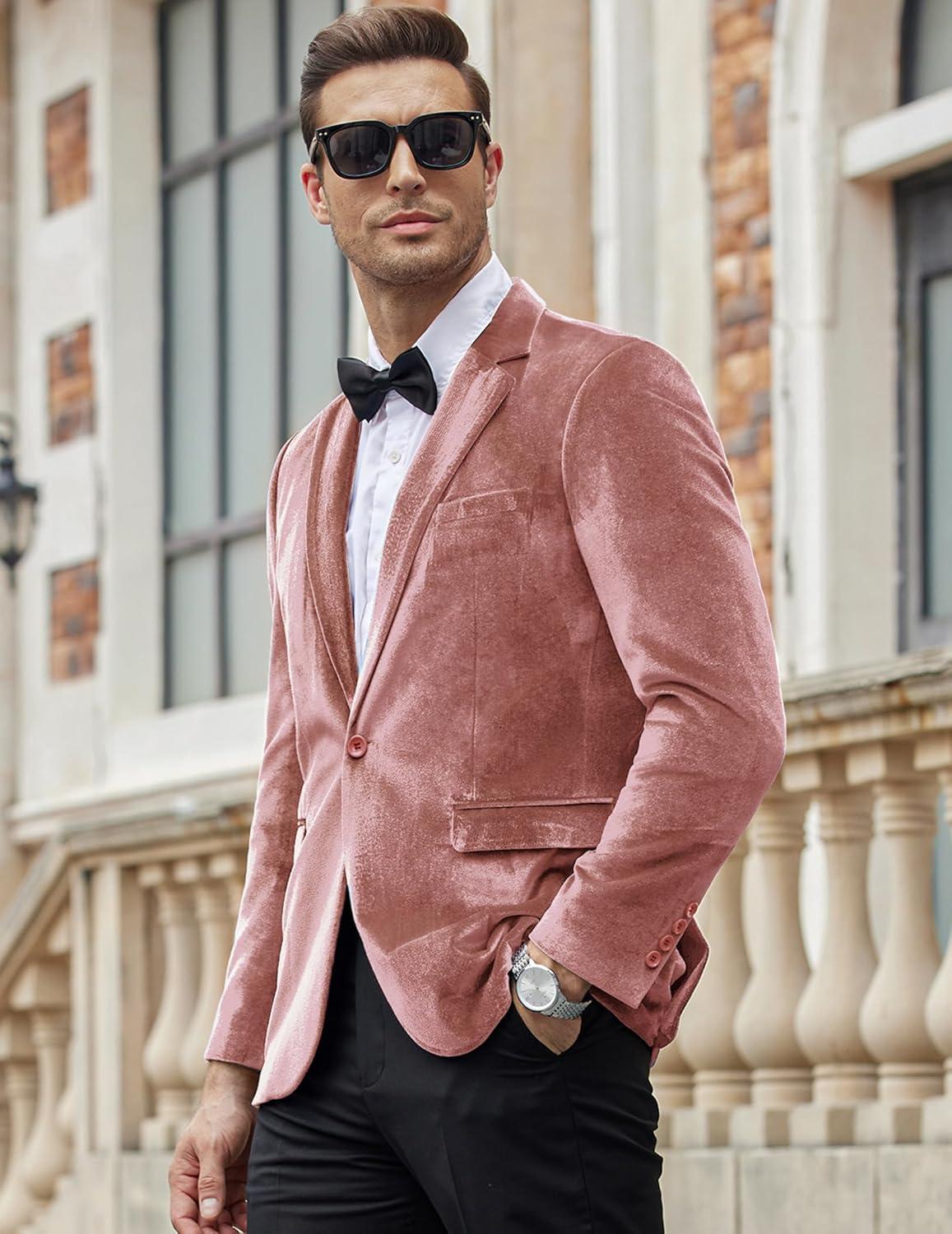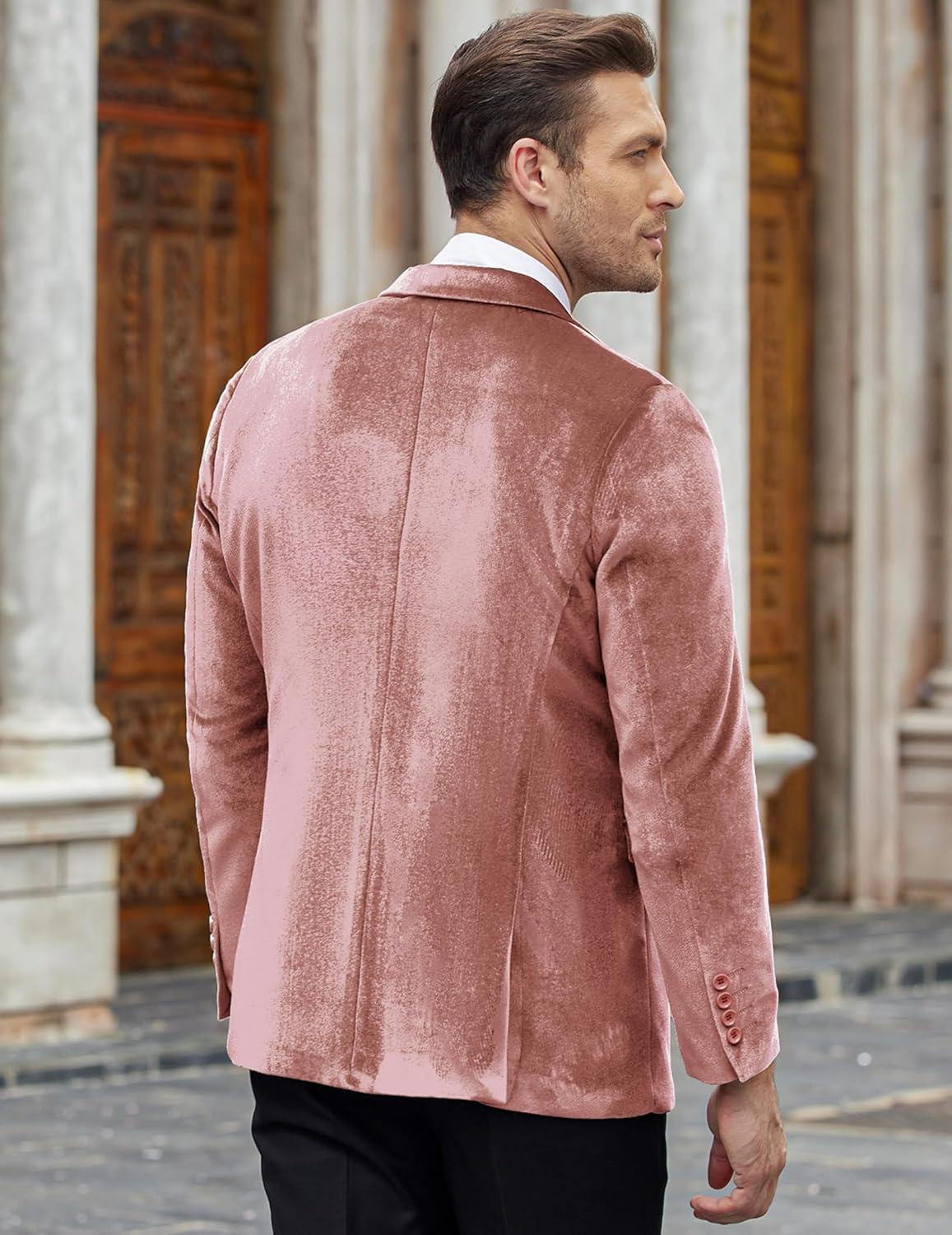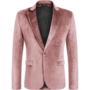 COOFANDY Men’s Velvet Blazer Notched Lapel Velour Suit Jacket One Button Tuxedo Jackets for Wedding Prom Party Dinner(Pink)