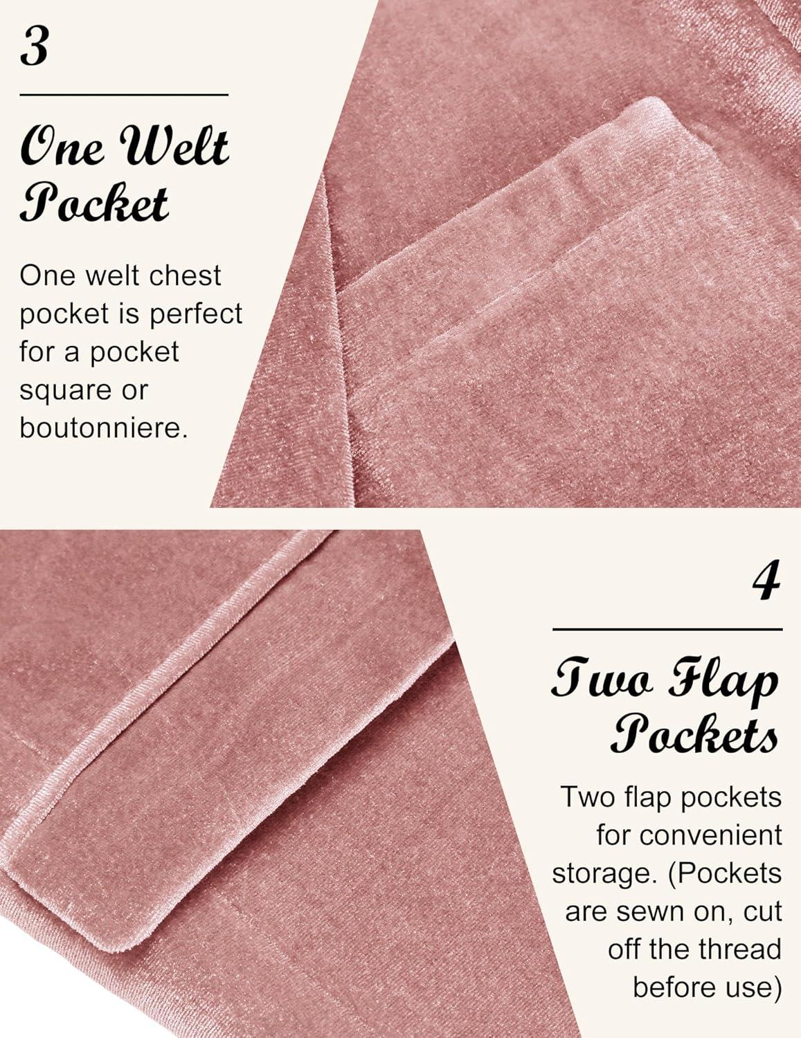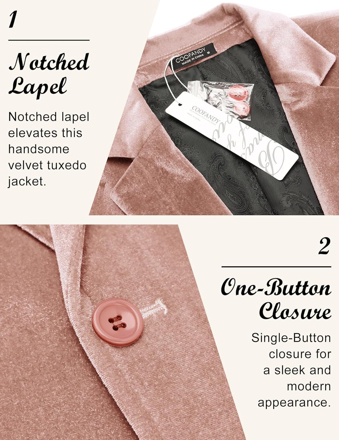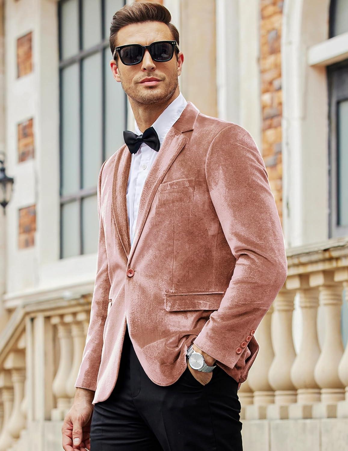 COOFANDY Men’s Velvet Blazer Notched Lapel Velour Suit Jacket One Button Tuxedo Jackets for Wedding Prom Party Dinner(Pink)