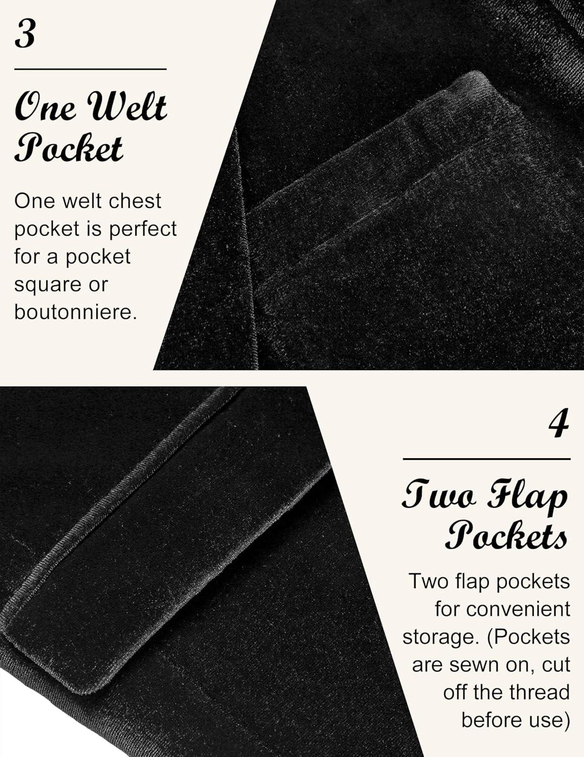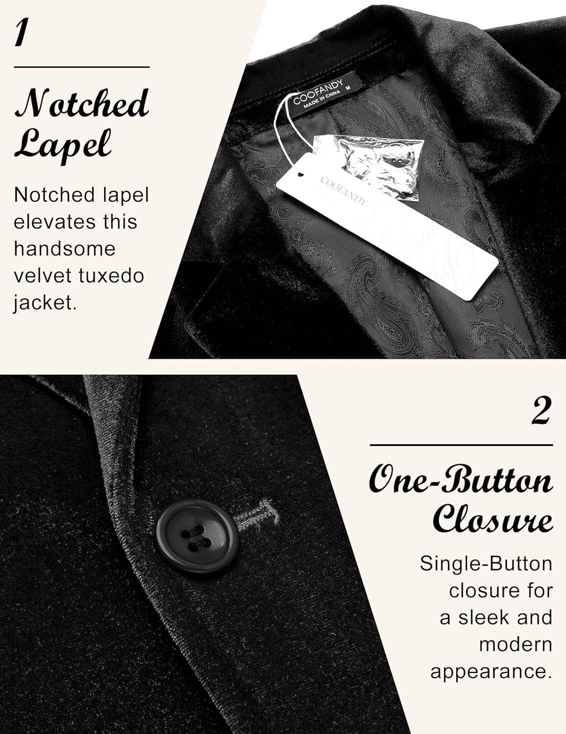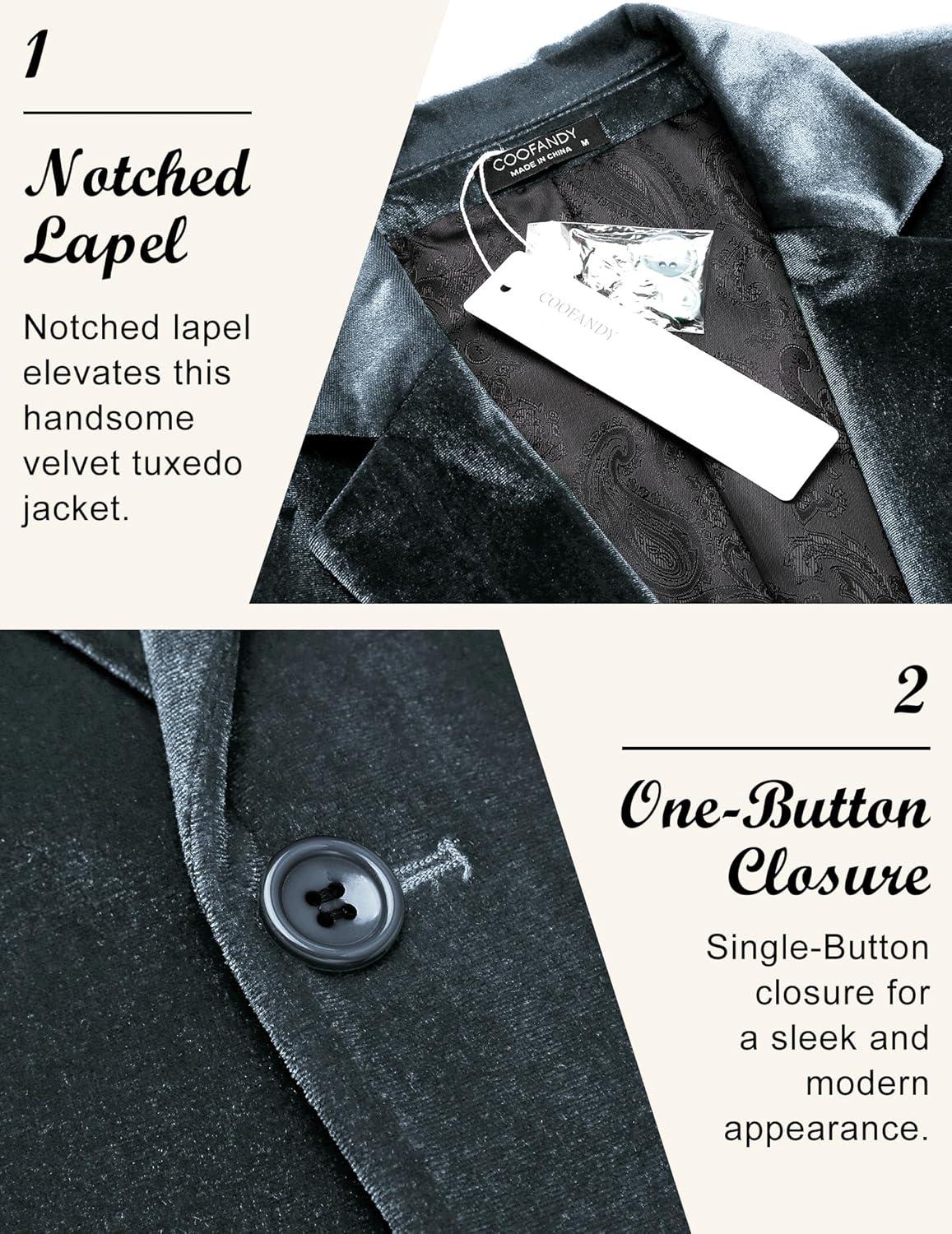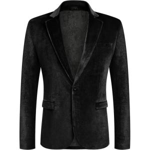 COOFANDY Men’s Velvet Blazer Notched Lapel Velour Suit Jacket One Button Tuxedo Jackets for Wedding Prom Party Dinner(Black)