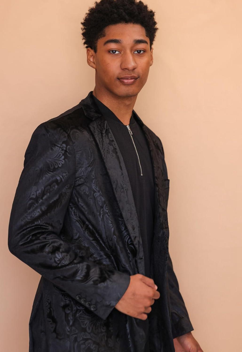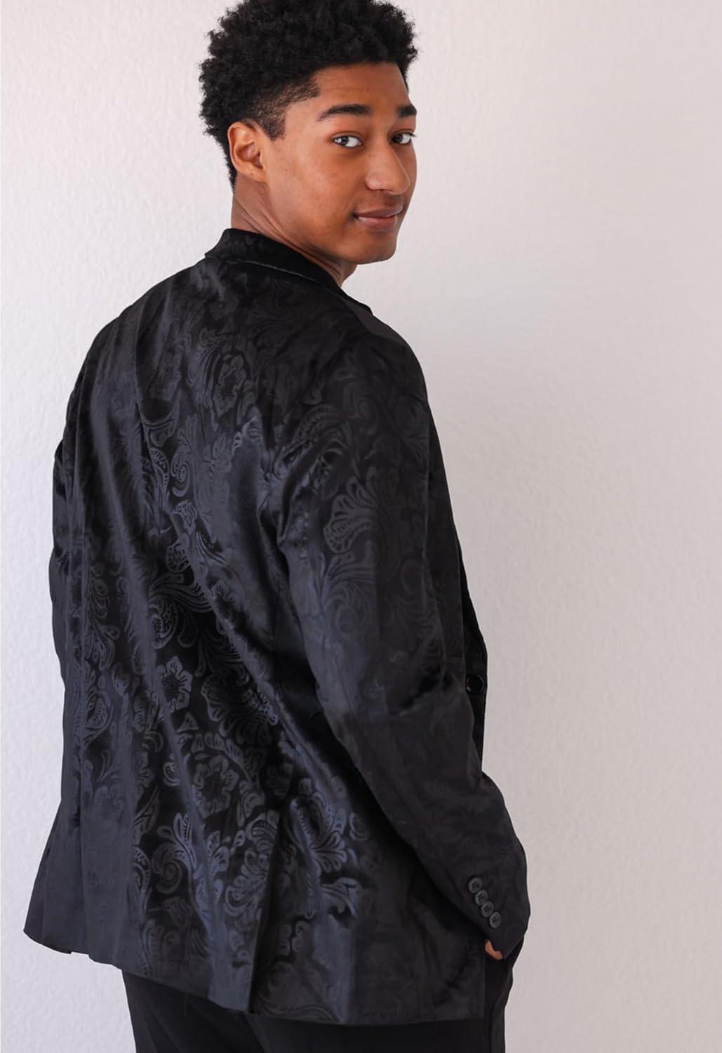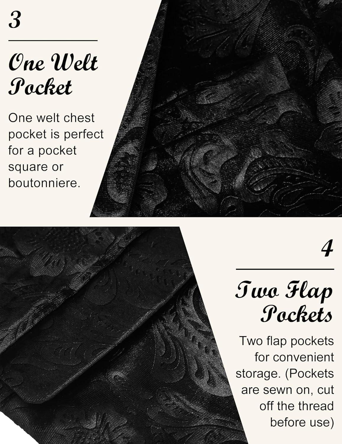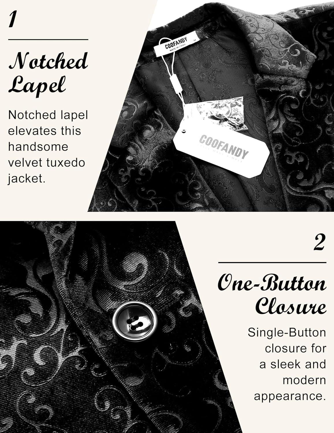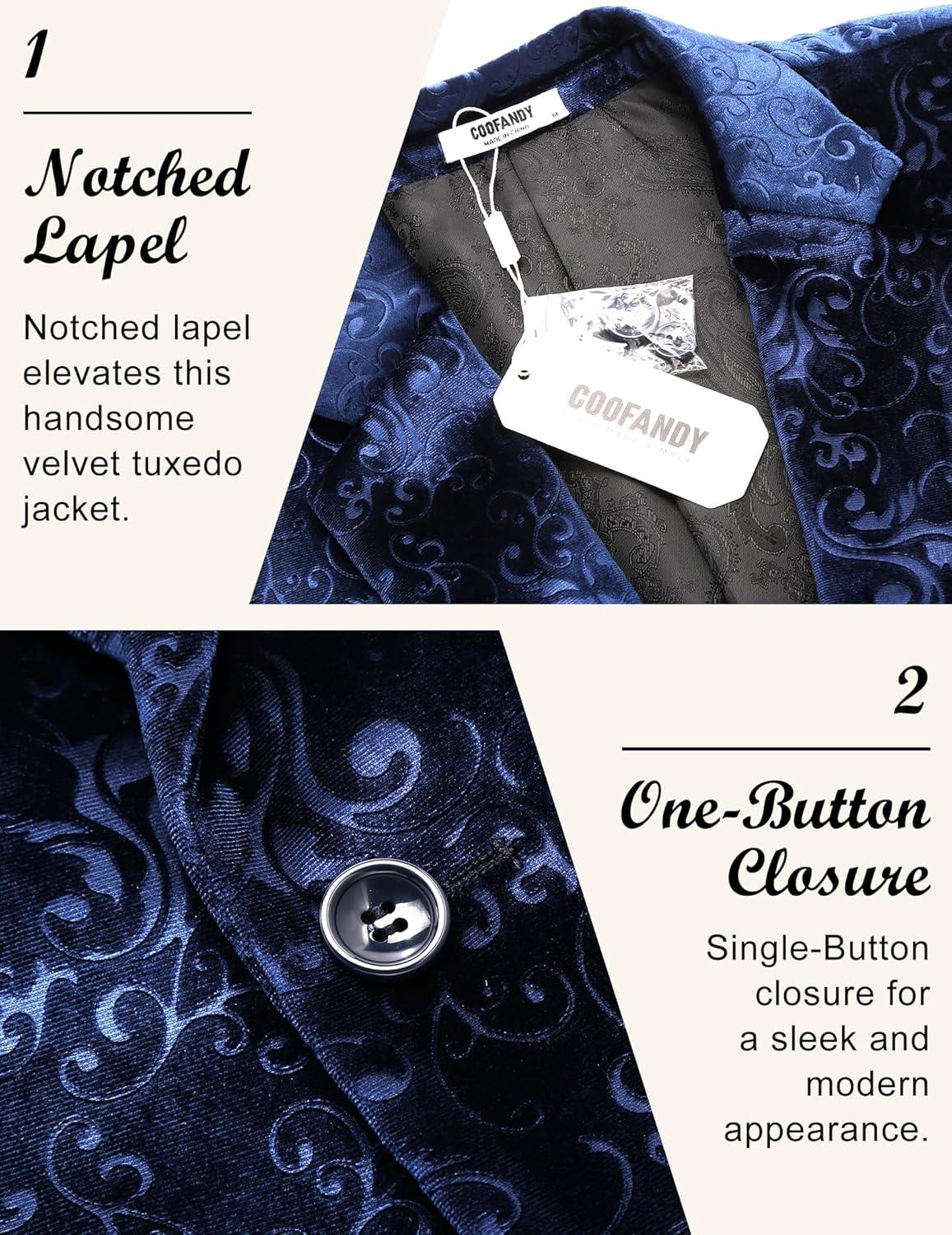 COOFANDY Men’s Velvet Blazer Notched Lapel Velour Suit Jacket One Button Tuxedo Jackets for Wedding Prom Party Dinner(Black Paisley)