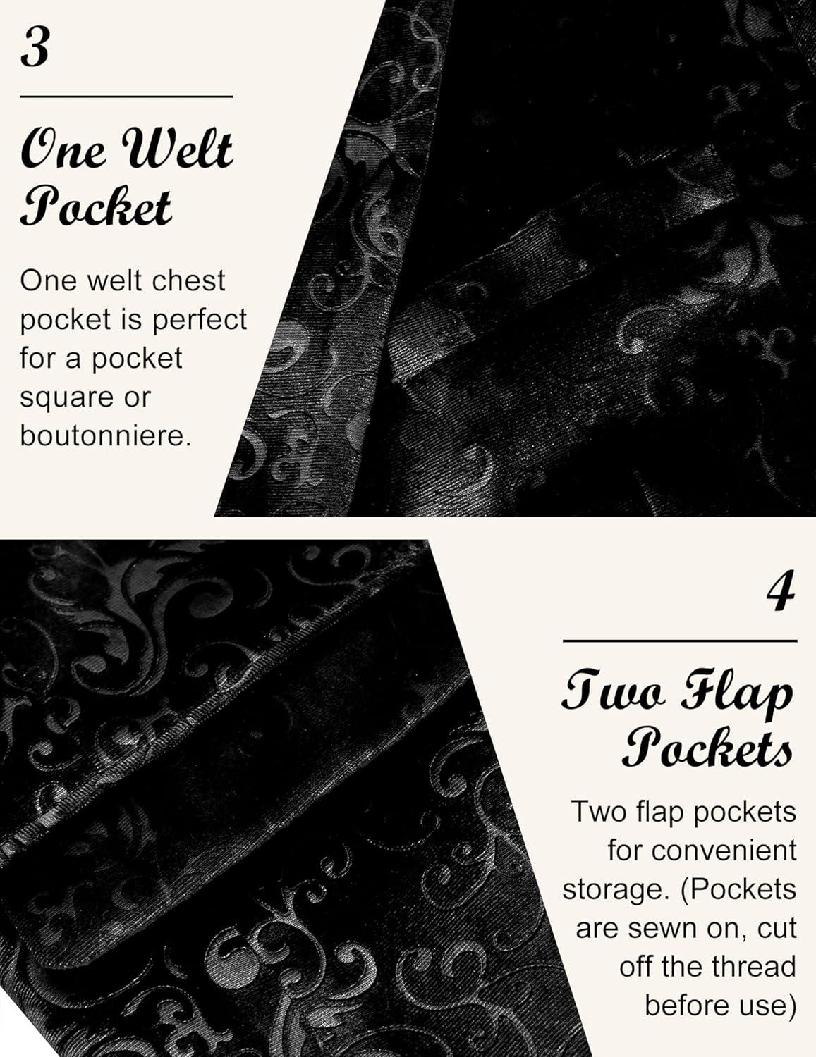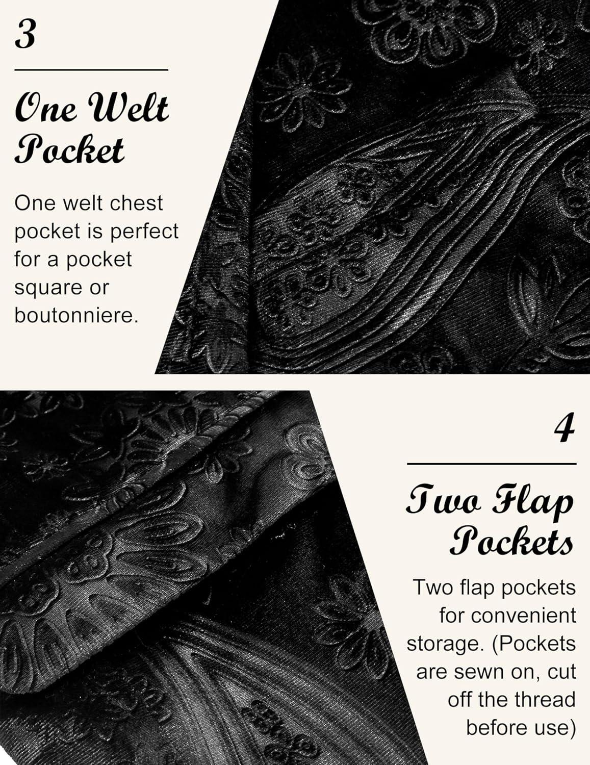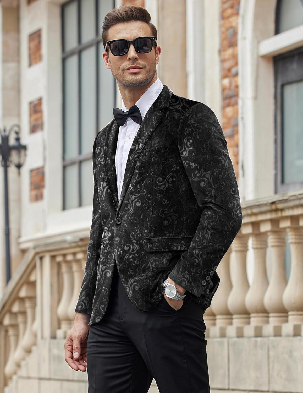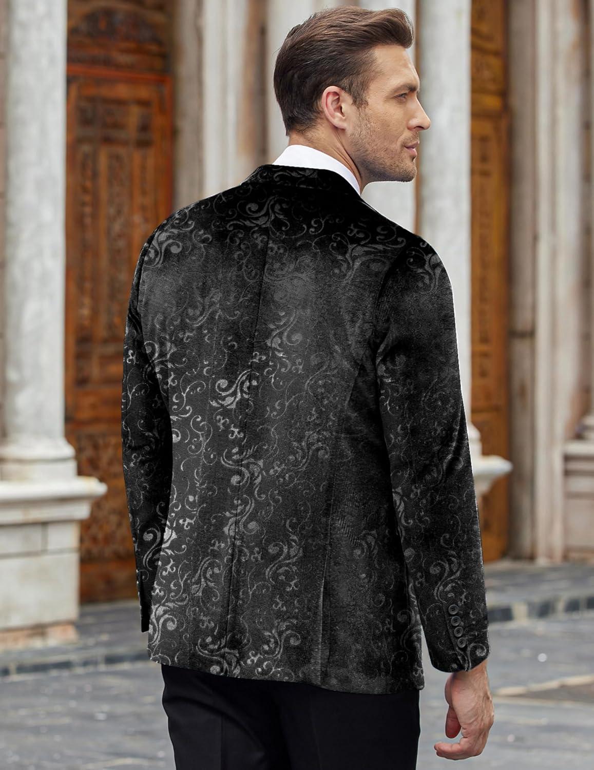 COOFANDY Men’s Velvet Blazer Notched Lapel Velour Suit Jacket One Button Tuxedo Jackets for Wedding Prom Party Dinner(Black Retro Floral)