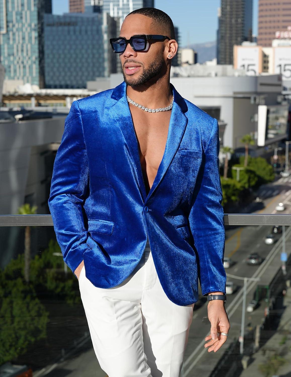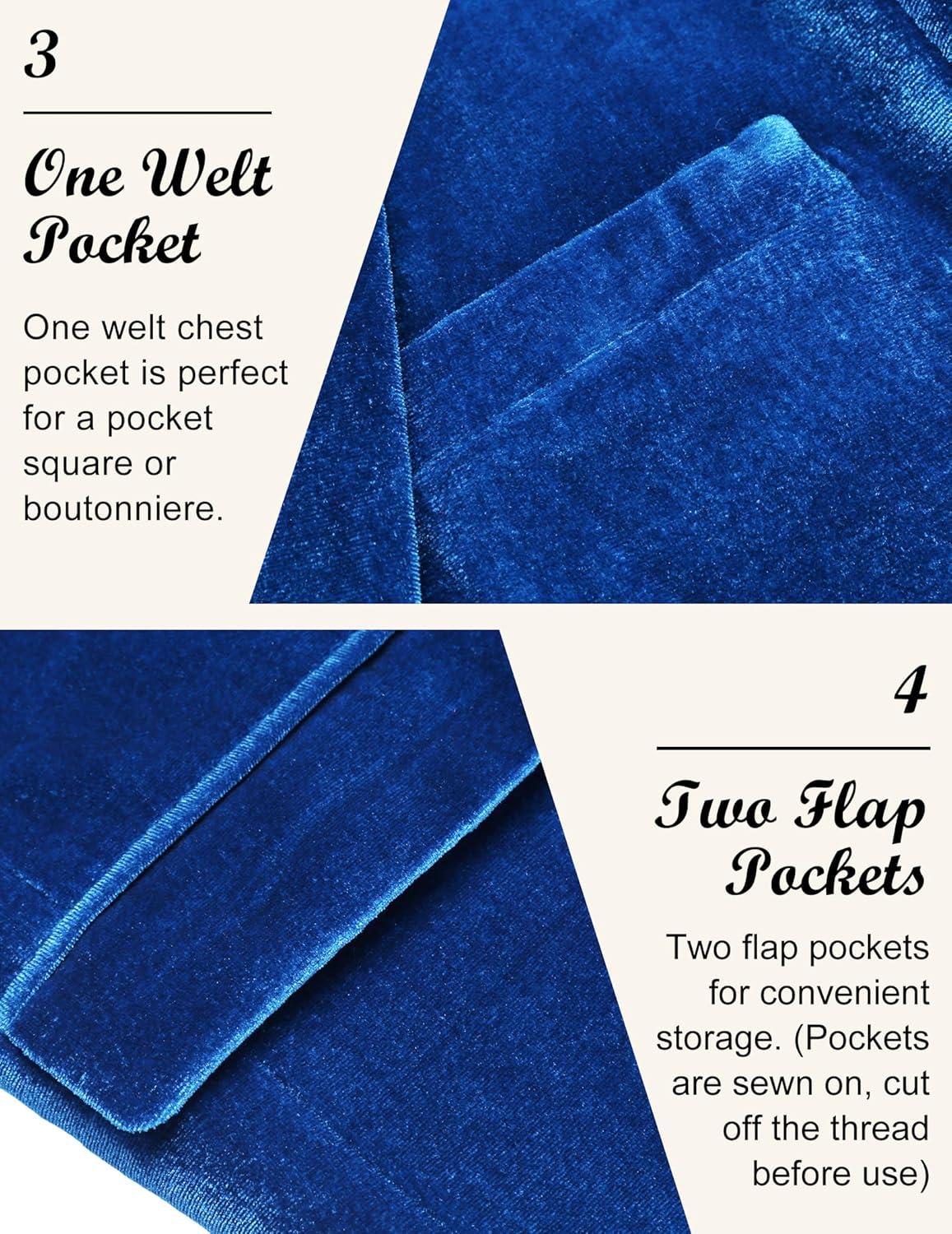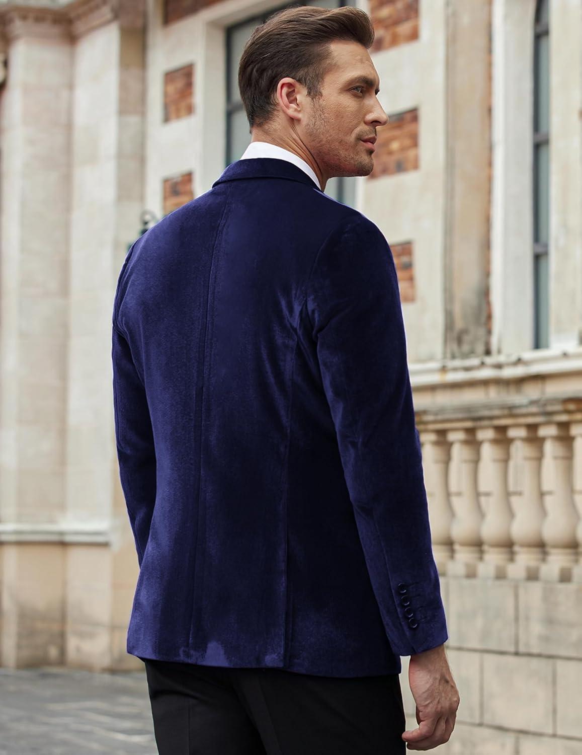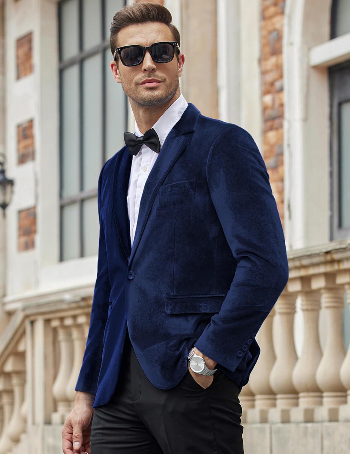 COOFANDY Men’s Velvet Blazer Notched Lapel Velour Suit Jacket One Button Tuxedo Jackets for Wedding Prom Party Dinner(Blue)