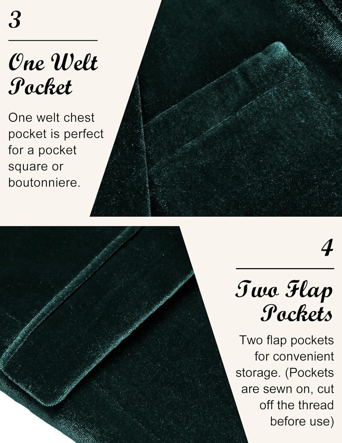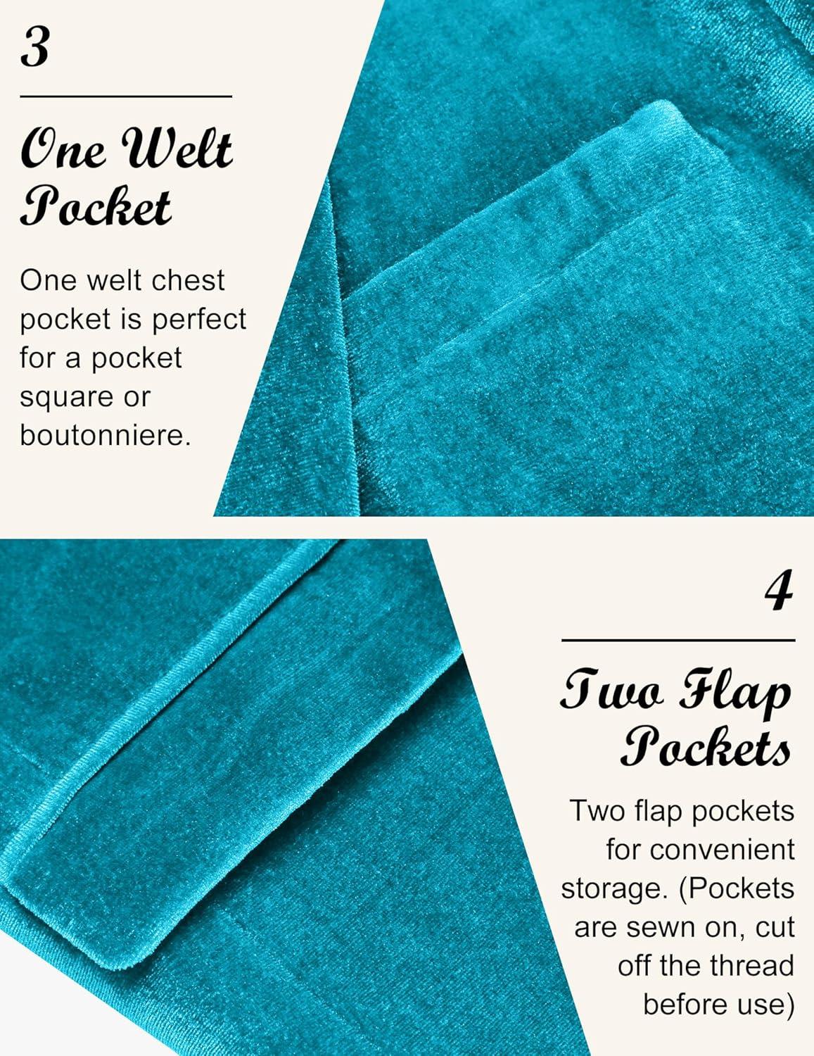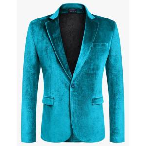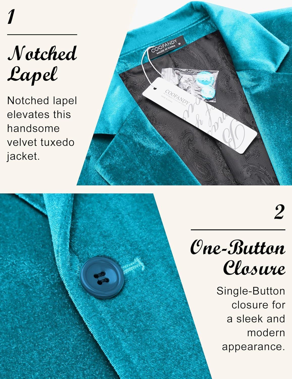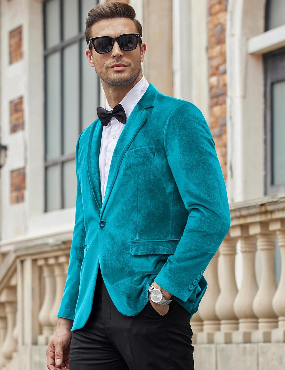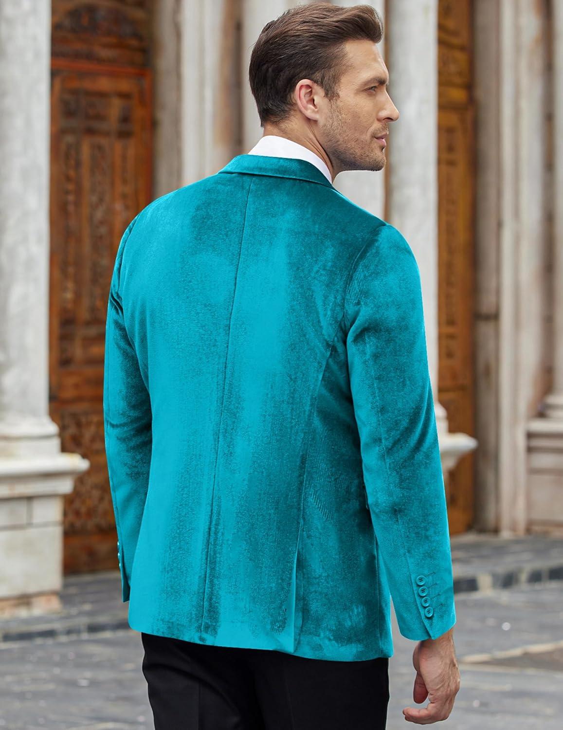 COOFANDY Men’s Velvet Blazer Notched Lapel Velour Suit Jacket One Button Tuxedo Jackets for Wedding Prom Party Dinner(Blue Green)