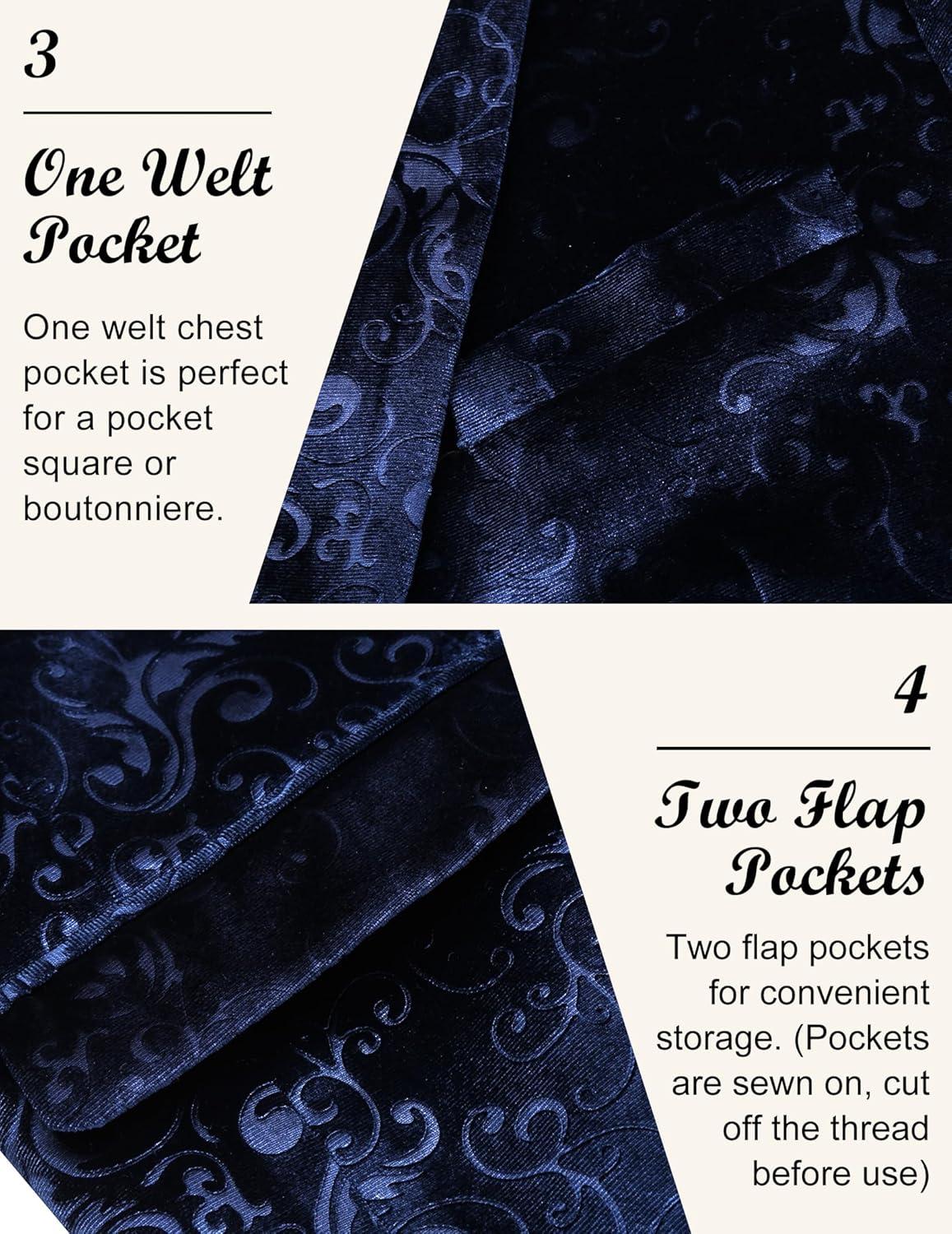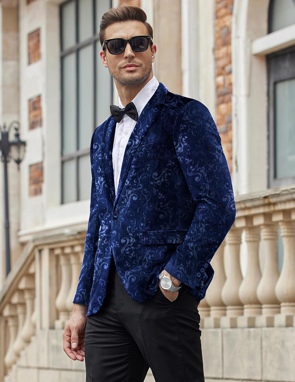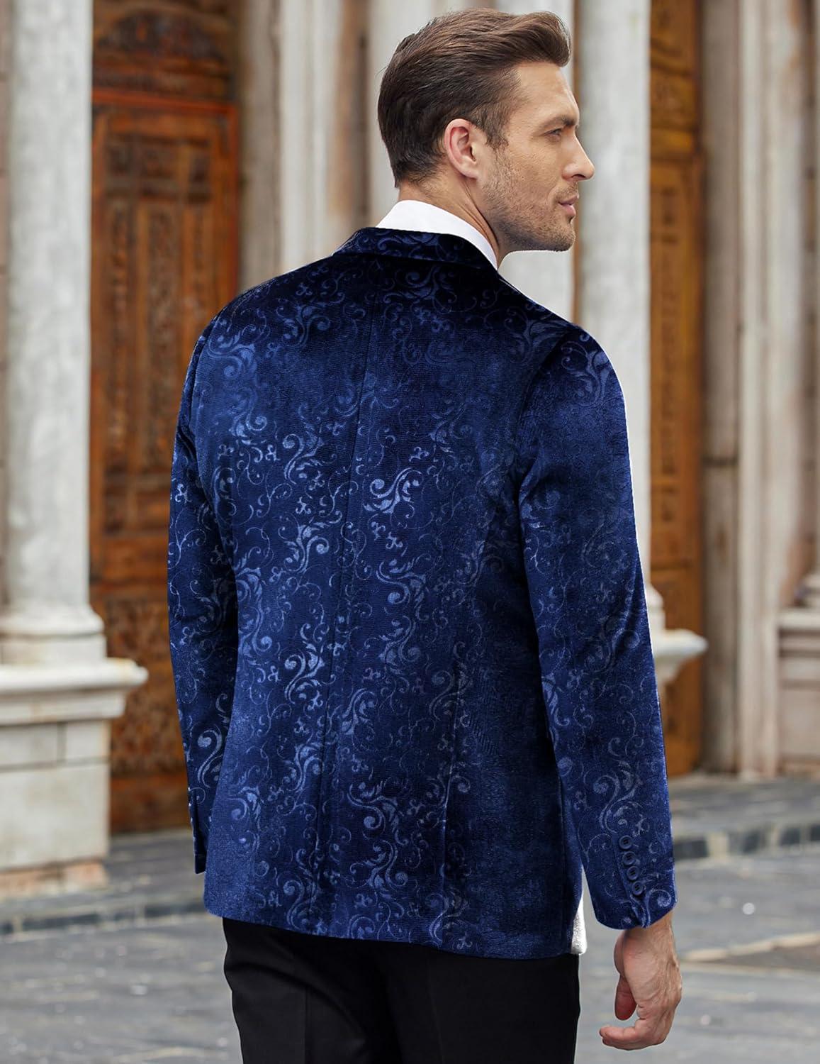 COOFANDY Men’s Velvet Blazer Notched Lapel Velour Suit Jacket One Button Tuxedo Jackets for Wedding Prom Party Dinner(Blue Retro Floral)