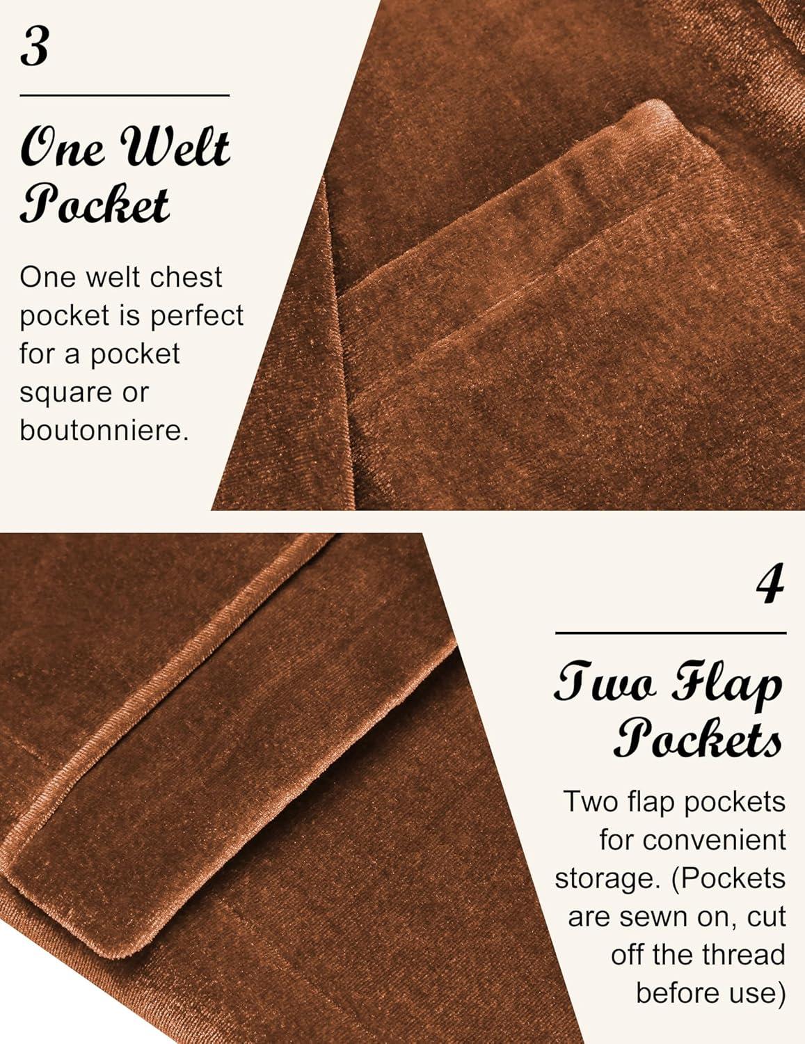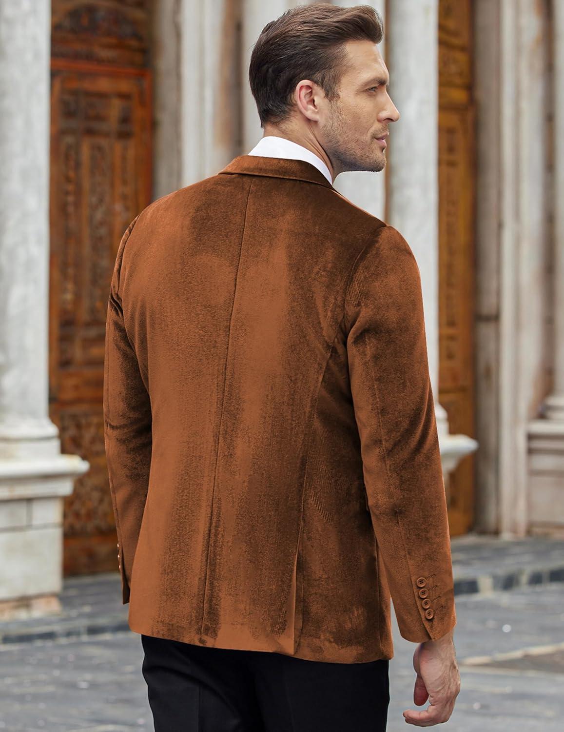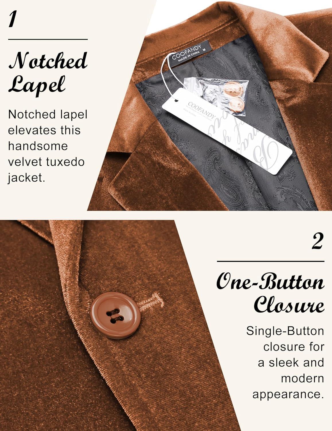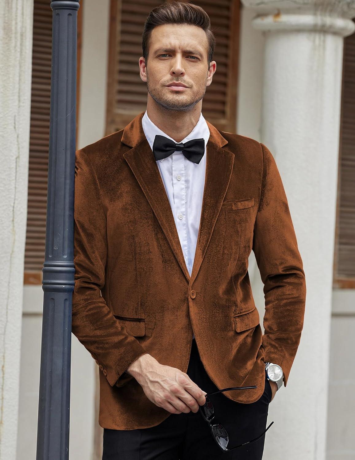 COOFANDY Men’s Velvet Blazer Notched Lapel Velour Suit Jacket One Button Tuxedo Jackets for Wedding Prom Party Dinner(Brown)