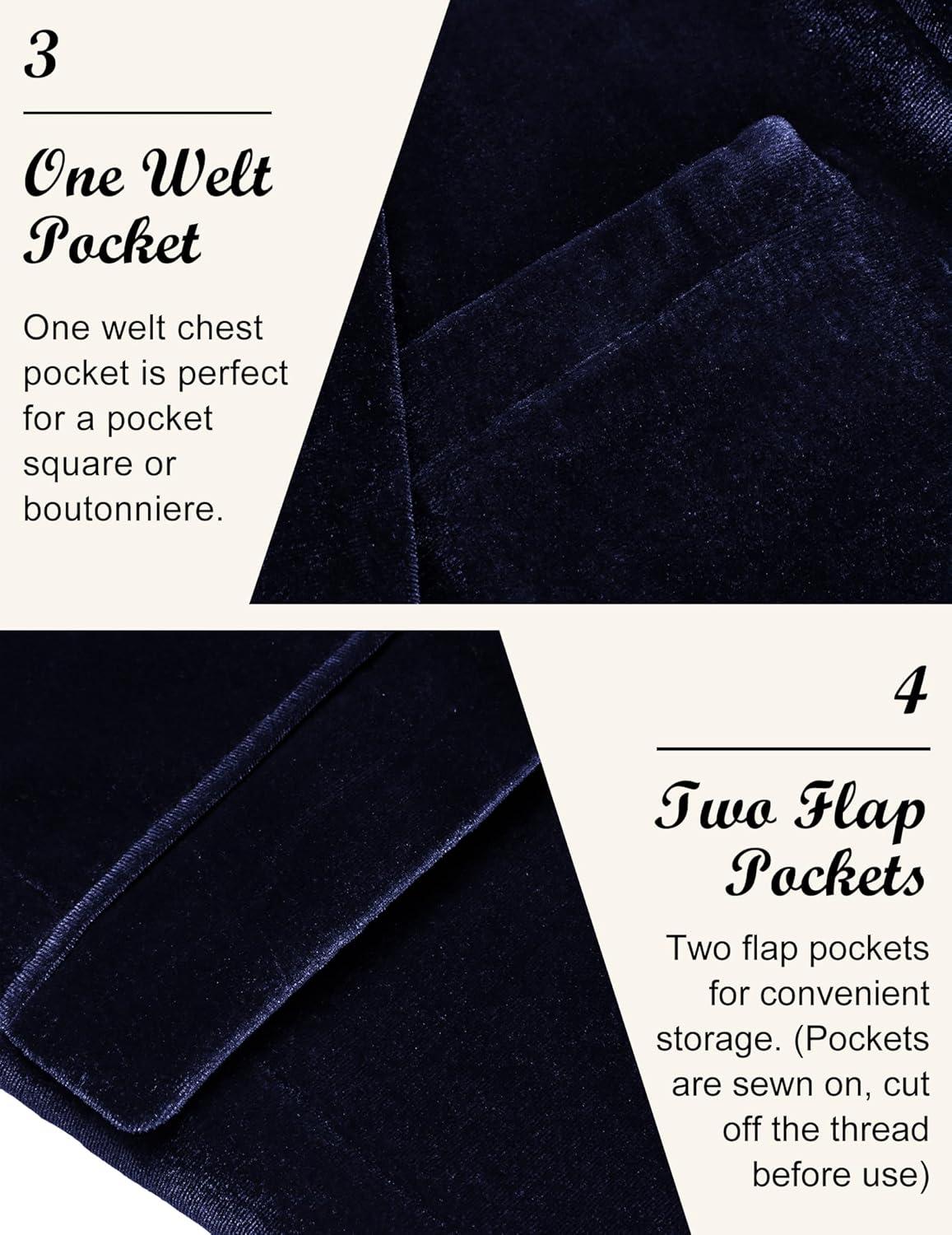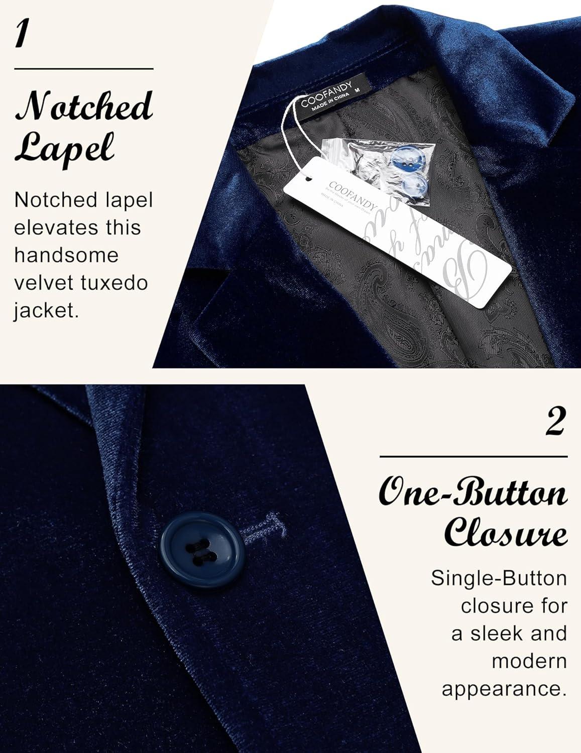 COOFANDY Men’s Velvet Blazer Notched Lapel Velour Suit Jacket One Button Tuxedo Jackets for Wedding Prom Party Dinner(Dark Blue)