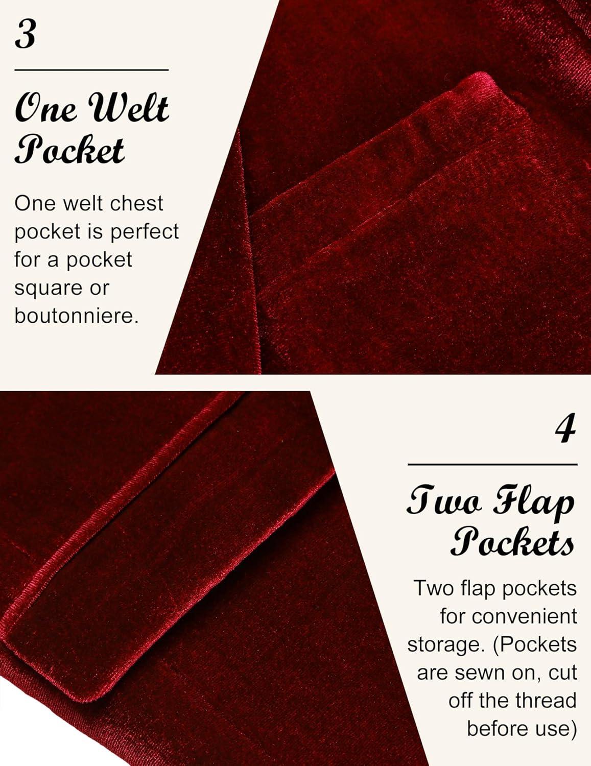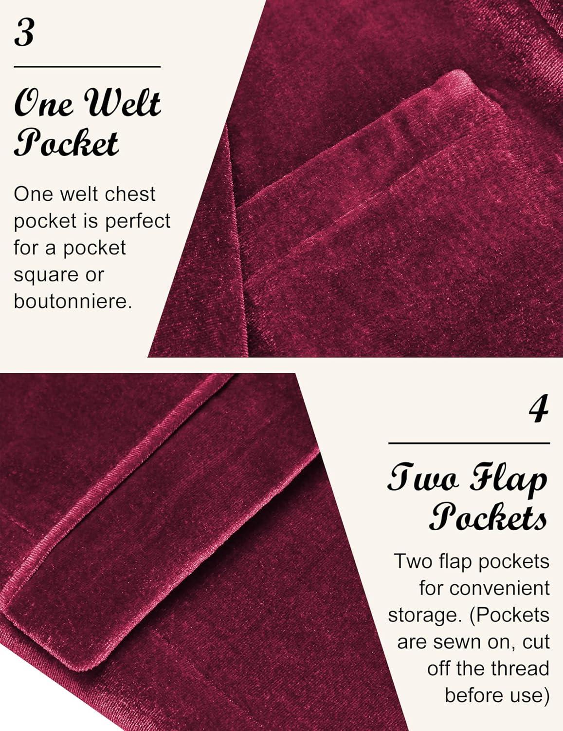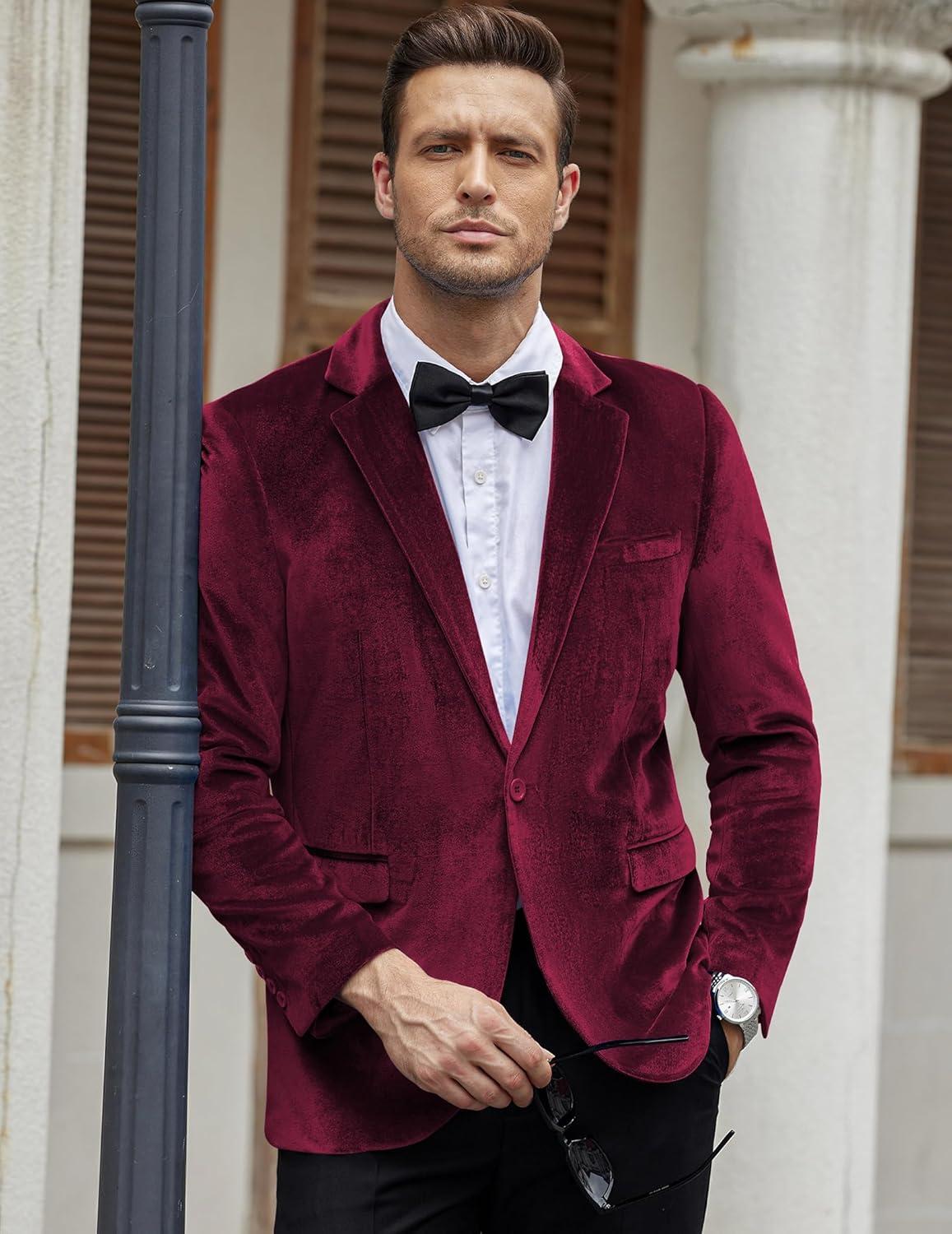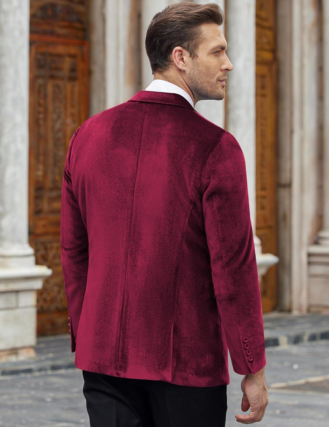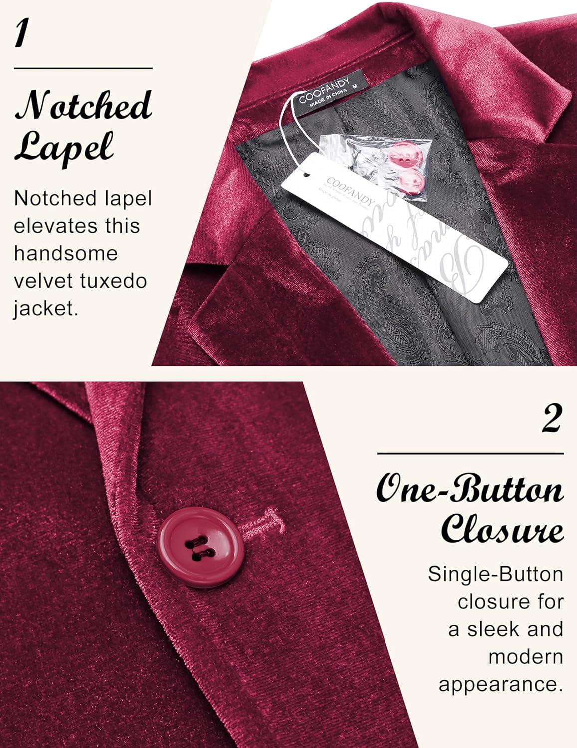 COOFANDY Men’s Velvet Blazer Notched Lapel Velour Suit Jacket One Button Tuxedo Jackets for Wedding Prom Party Dinner(Dark Red)