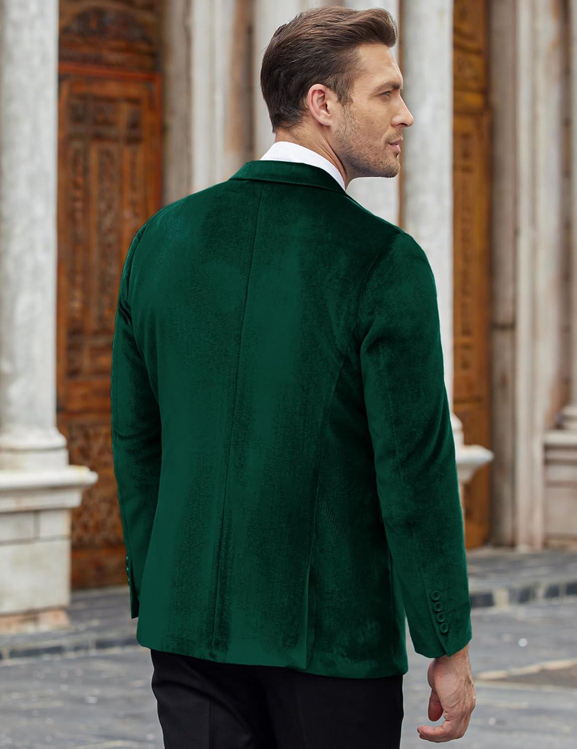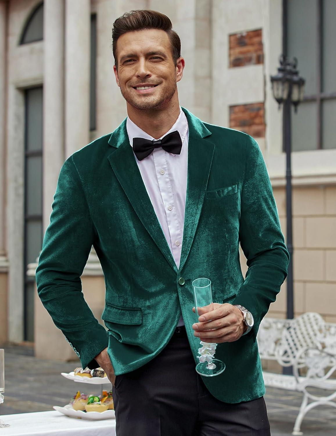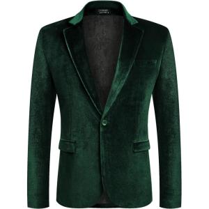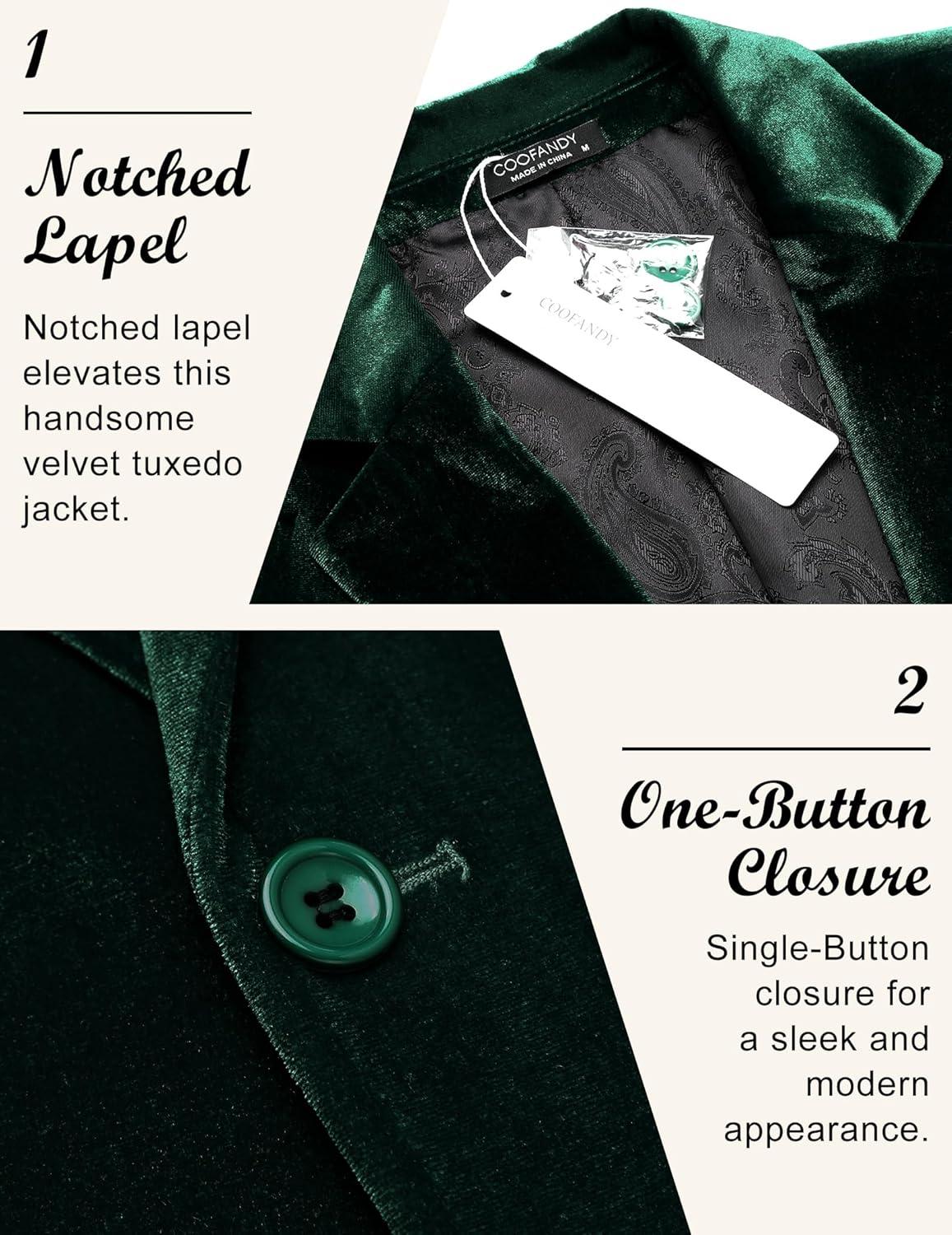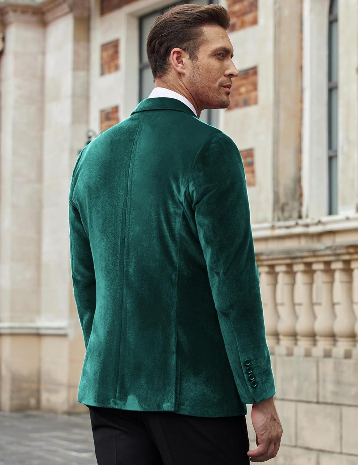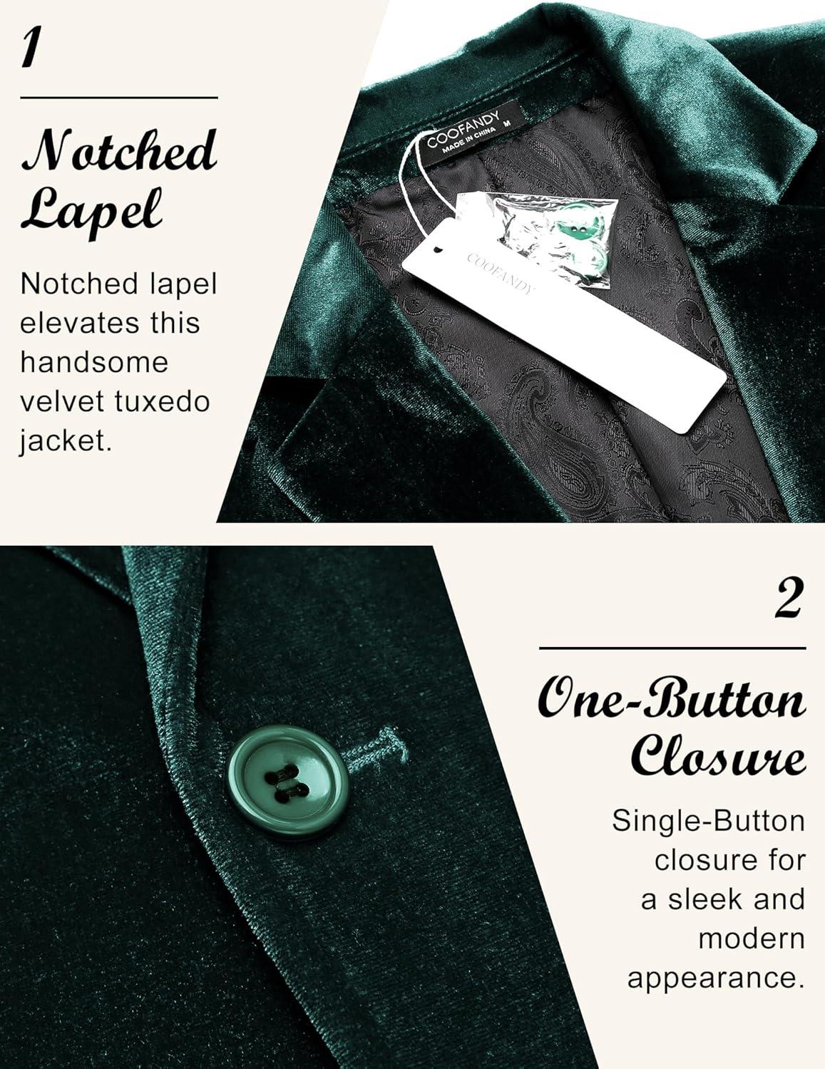 COOFANDY Men’s Velvet Blazer Notched Lapel Velour Suit Jacket One Button Tuxedo Jackets for Wedding Prom Party Dinner(Green)