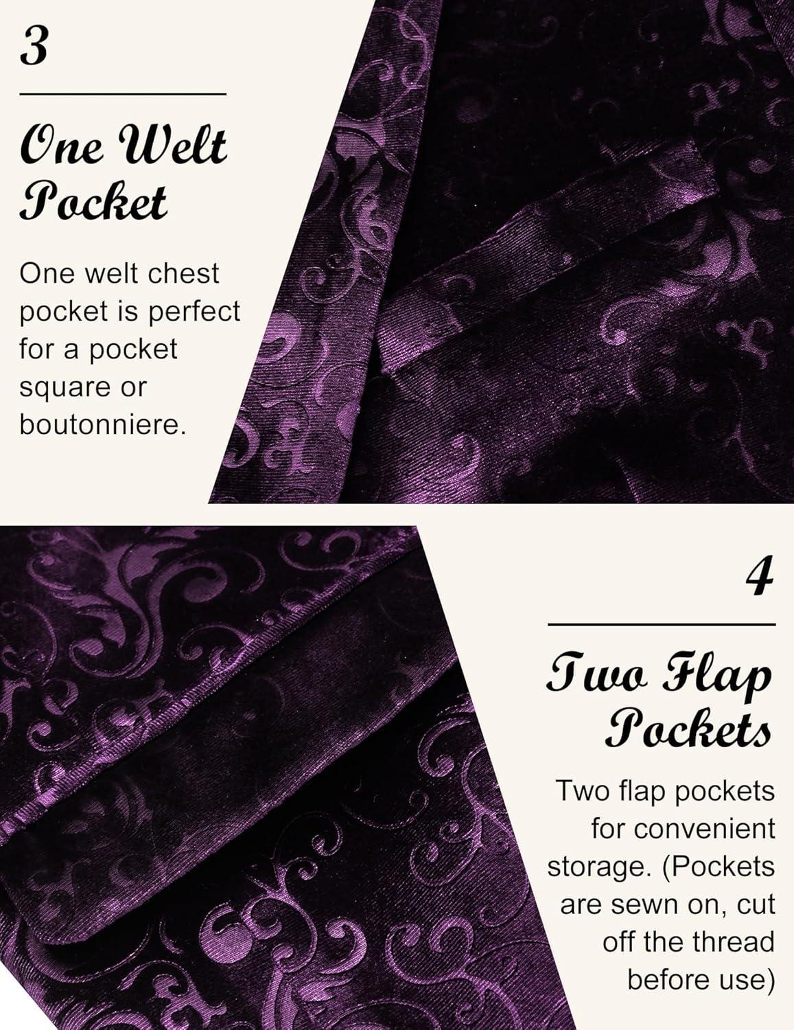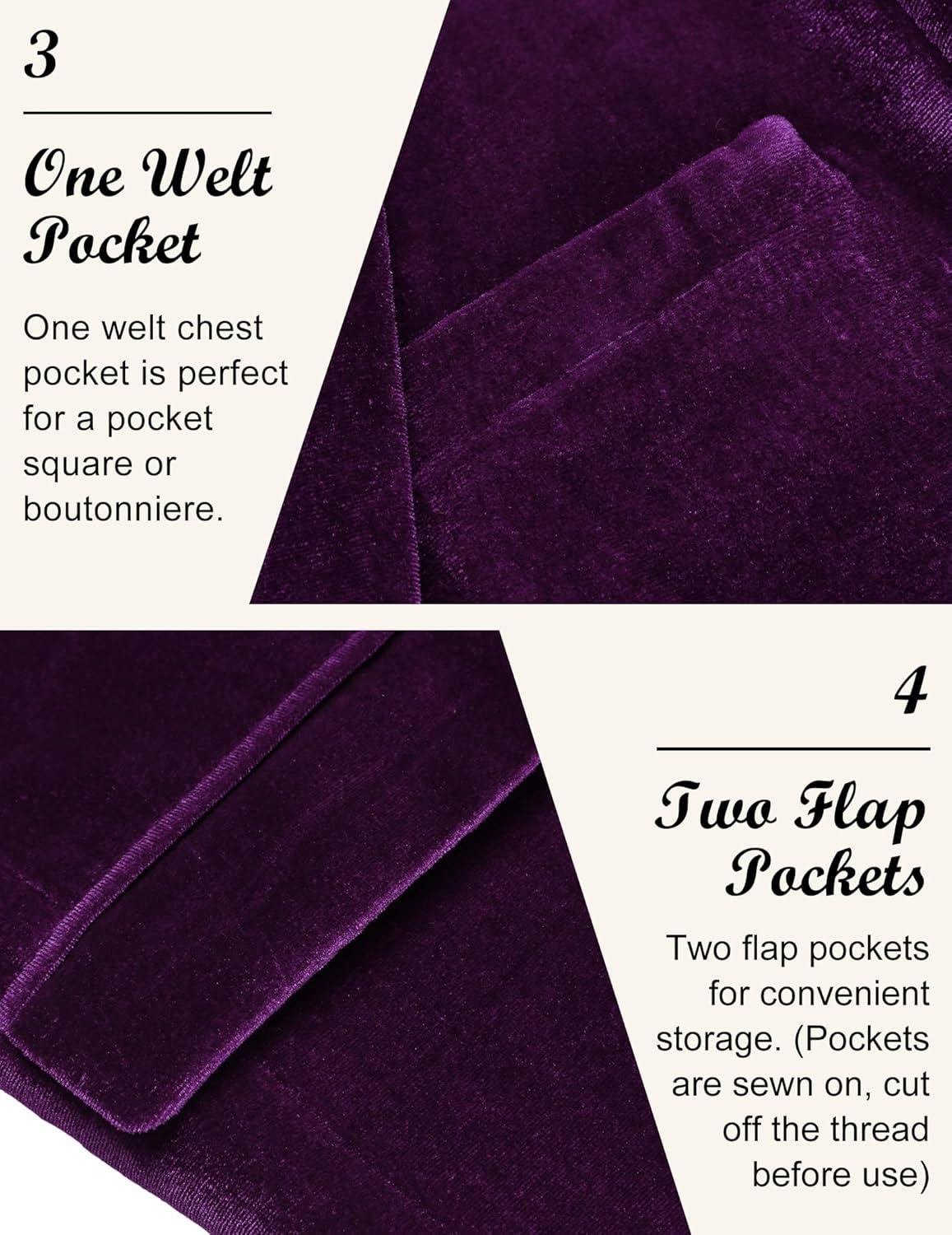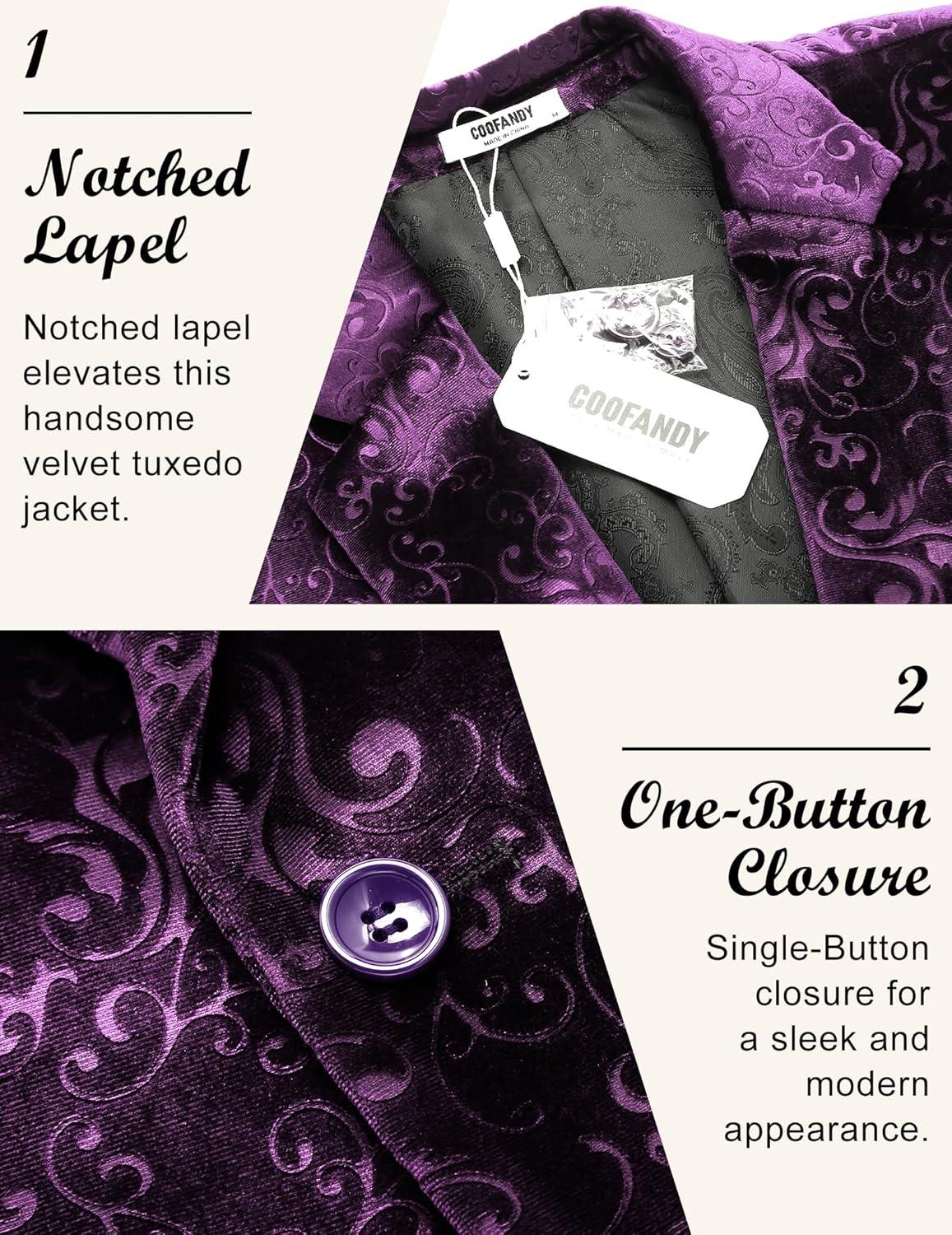 COOFANDY Men’s Velvet Blazer Notched Lapel Velour Suit Jacket One Button Tuxedo Jackets for Wedding Prom Party Dinner(Purple)
